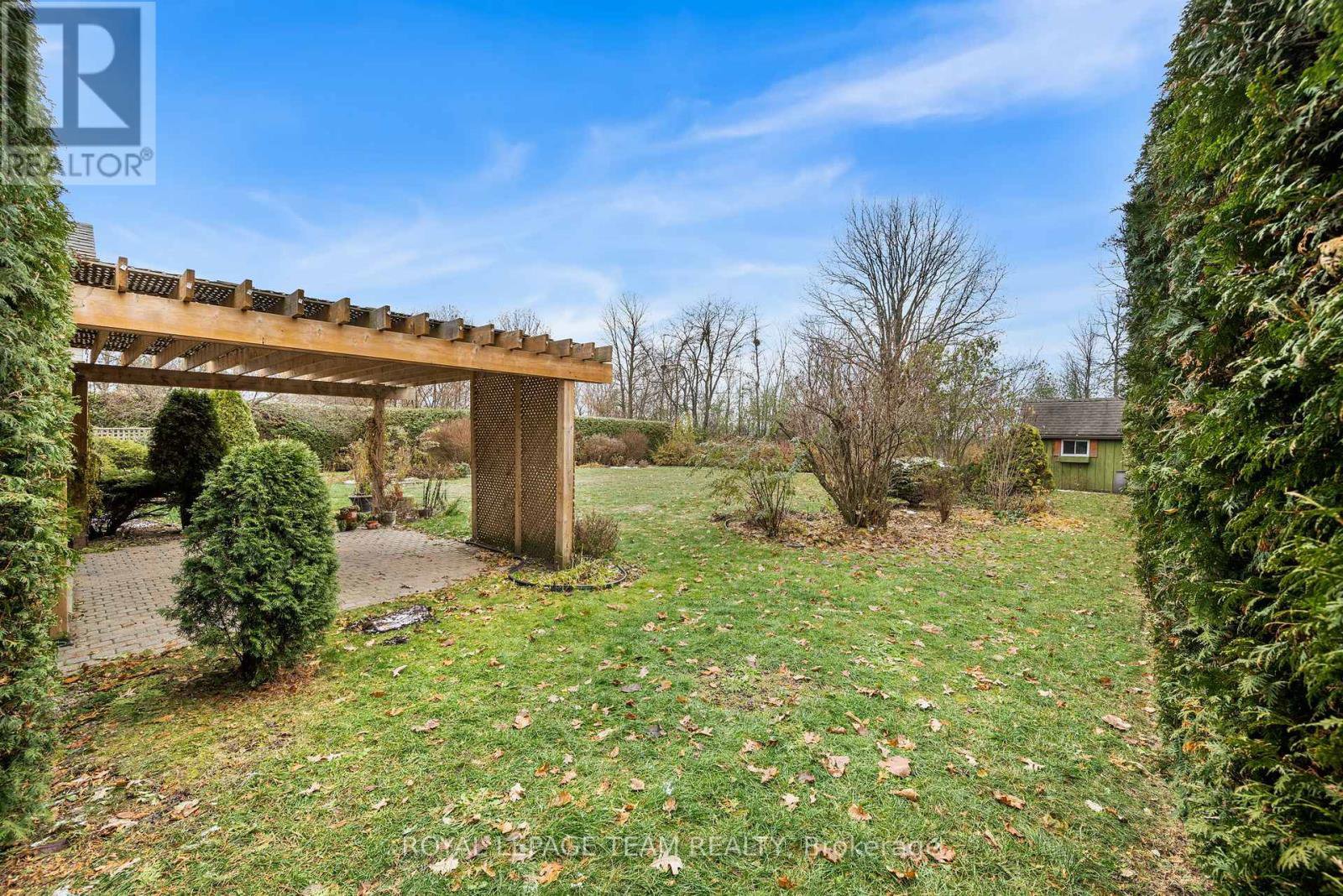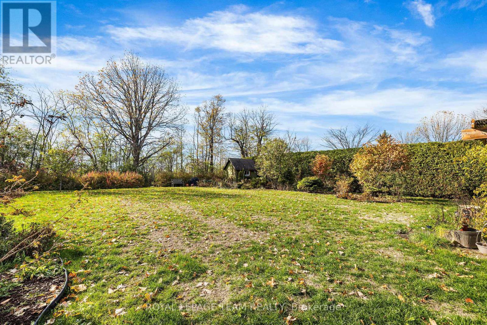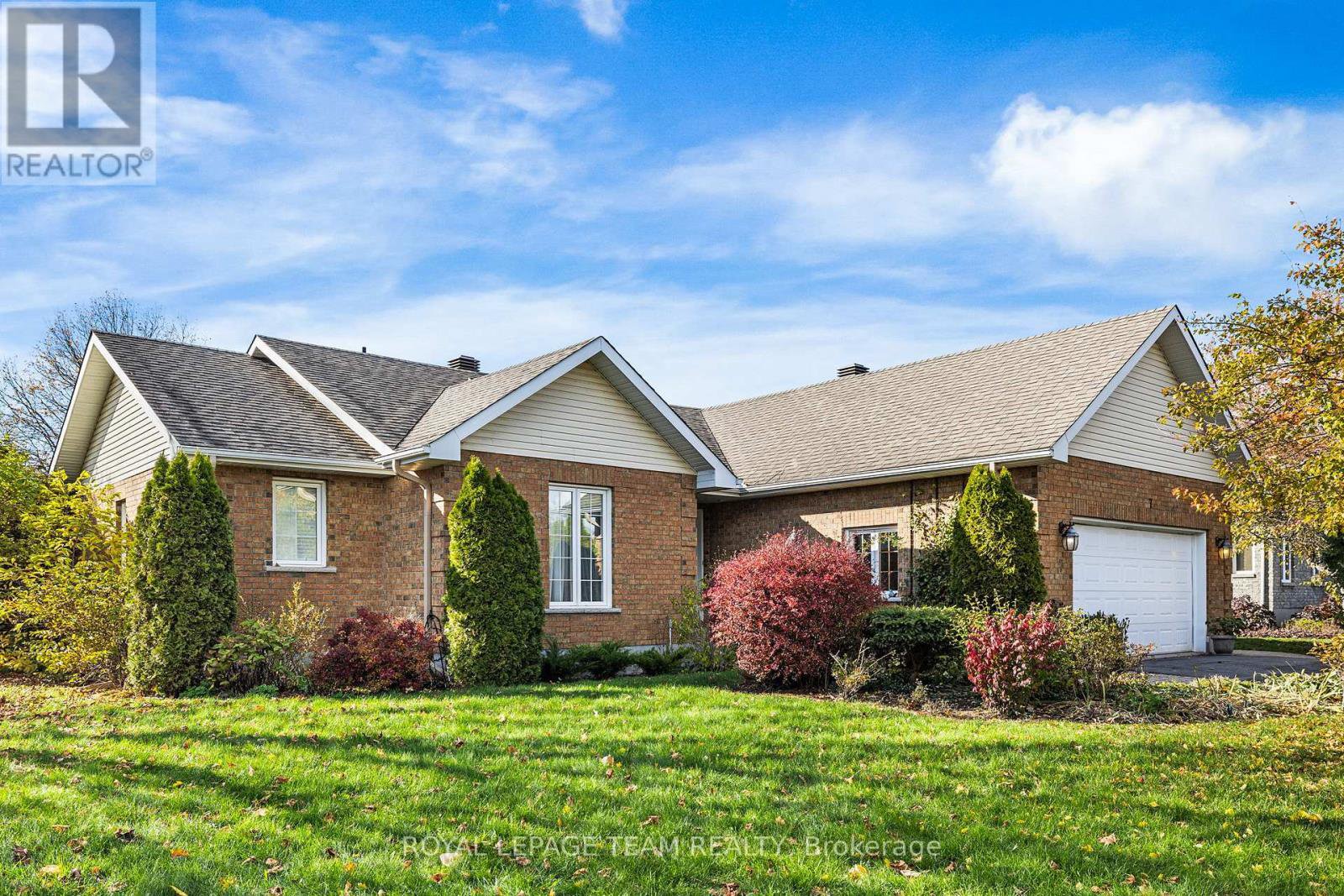 Located in the highly desirable Parkway Estates subdivision in Long Sault and offering exceptional value, this 3-bedroom brick BUNGALOW is situated on approx. HALF ACRE LOT and is adjacent to bucolic pasture land within walking distance of the St Lawrence Seaway. This original-owner home sits on a 100.39 ft x 208.07 ft lot with no rear neighbors surrounded by manicured hedging that affords exceptional privacy! The main level provides a bright, well-designed layout, with a landscaped front entrance leading into a spacious foyer. The living room features vaulted ceilings, floor to ceiling windows, a gas fireplace with ceramic mantel, and gleaming hardwood floors that flow into the adjoining dining room - perfect for family gatherings and entertaining. The kitchen and walk-in pantry offer ample counter and cupboard space, a breakfast area with views to the side lawn, and direct access to the mudroom and main-floor laundry off the garage. The main level also includes a generous primary bedroom with a walk-in closet and 4-piece ensuite, including French doors that open to a private stone patio. There are two additional well-sized bedrooms and a 2-piece powder room. French doors lead from the dining area to a large stone patio with a wooden pergola creating an indoor-outdoor vibe with the sprawling backyard, complete with mature trees, beautifully designed gardens and a quaint shed with a vaulted ceiling that measures approx. 9x7ft. The property also includes a double-car garage and an unspoiled basement ready for your personal touches. Generator included in sale. Ideally located close to amenities while offering the space and privacy of a large property.