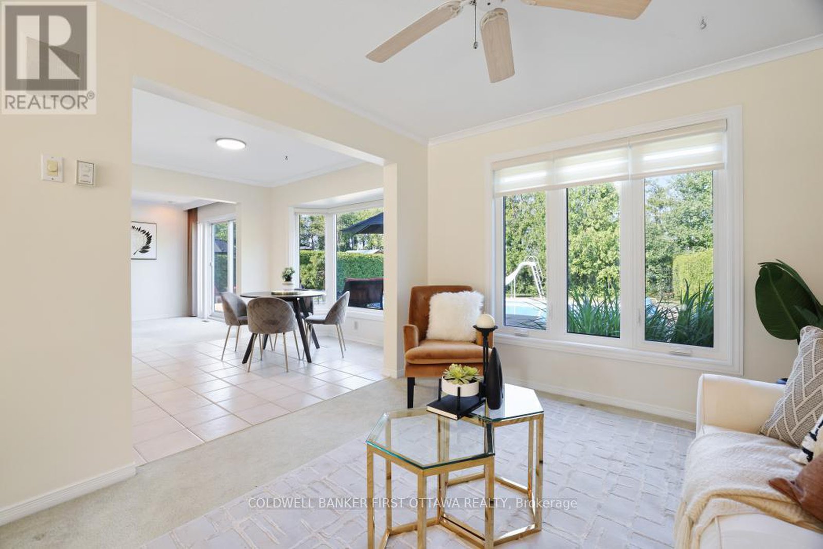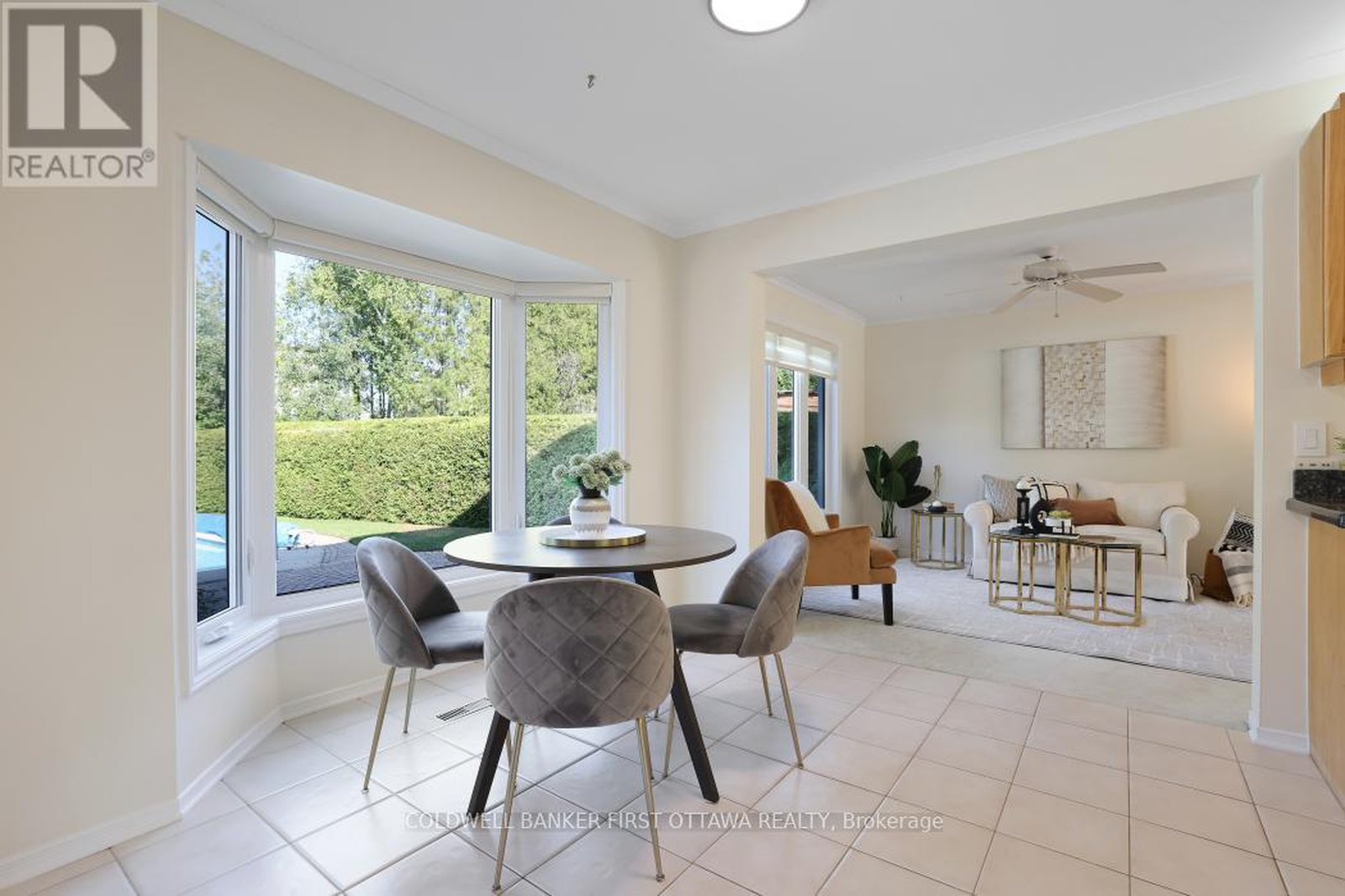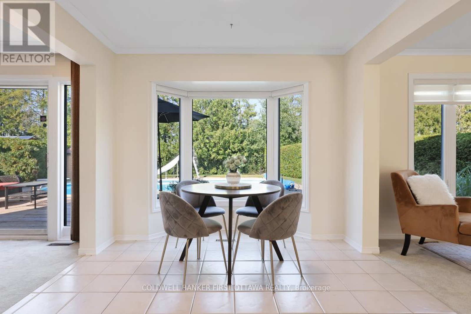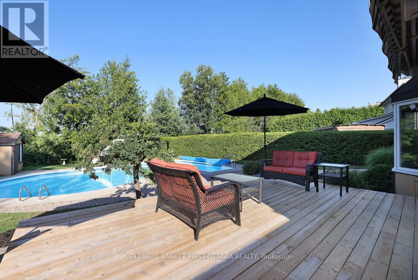 Welcome to one of Stittsville's great family neighbourhoods! This beautifully maintained home offers a spacious and versatile layout perfect for modern living. The inviting foyer opens to a large living/dining room combination, currently enjoyed as a double living room, featuring a natural gas fireplace and a bright bay window with sitting ledge. The expansive eat-in kitchen boasts granite countertops, ample cabinetry, and a second bay window overlooking the stunning backyard and pool. A cozy family room (currently used as a dining room) includes a wood-burning fireplace, while a convenient main floor laundry/mudroom with custom built-in cabinetry provides access to the two-car garage. A convenient powder room completes the main level. Upstairs, the circular staircase leads to a generous primary suite with a full wall of closet space, two large windows, and a private ensuite with makeup vanity, soaker tub, shower, and linen closet. Two additional good-sized bedrooms, another full bath, and an extra linen closet provide plenty of storage and comfort for the whole family. The exterior is equally impressive with extensive landscaping, an interlock walkway and driveway, and a fully fenced backyard (wrought iron) showcasing a spectacular 41 x 20 pool with slide and diving board, pool shed, new decking, and irrigation system. Upgraded insulation adds energy efficiency to this well-cared-for property. This home is a true gem in a sought-after family-friendly communityperfect for entertaining and everyday living. Available Immediately! 24 hours irrevocable on all offers. Recent Updates - Roof (2022), Furnace (2014) serviced annually with one year remaining on P&L Warranty, A/C (2022), entire home painted 2025, triple glazed windows (2023) new blinds (2024), Insulation removed and new insulation installed to R50 (2023)