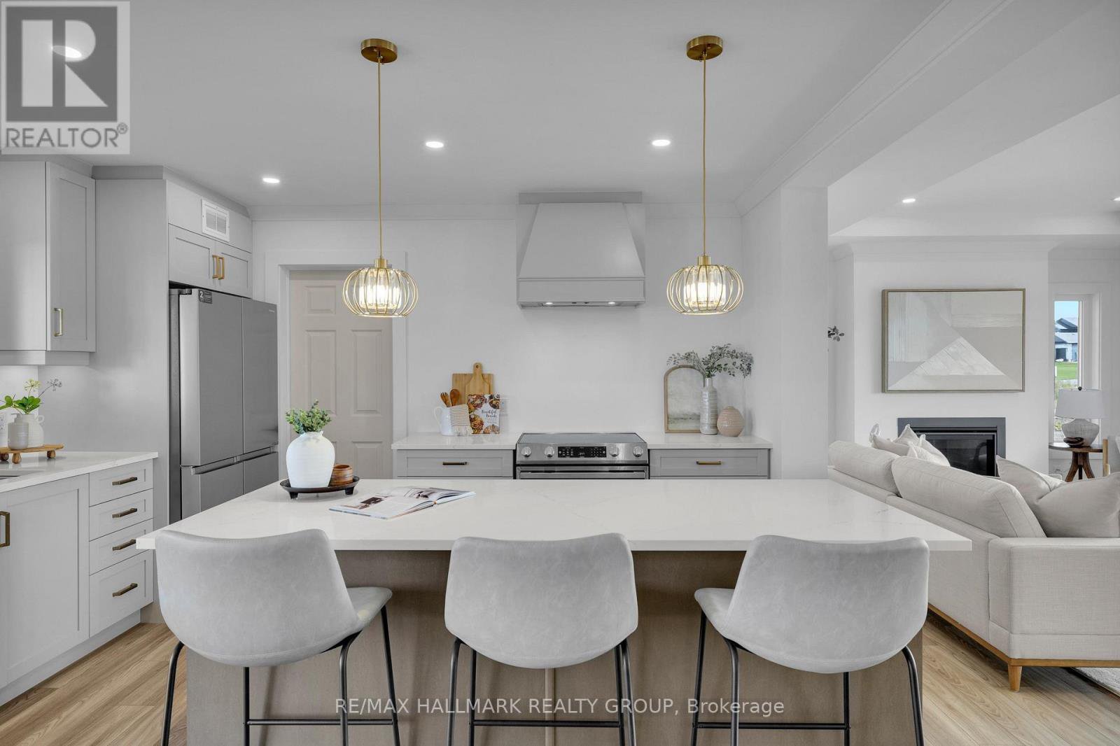Are you looking for a new build but don't want to wait? This home is ready to move in now! Welcome to this brand new 2 bedroom, 2 bathroom custom built Guildcrest bungalow in Russell Ridge Estates! Fabulous curb appeal with the amazing welcoming covered front porch spanning the entire length of the home, perfect to enjoy morning coffee or to relax. Modern open-concept floor plan. The bright and inviting living room features a gas fireplace flanked by windows on each side. The gorgeous kitchen includes an abundance of maple cabinets, quartz counters, trendy gold coloured fixtures and a large island (7'5" x 3') with a breakfast bar. The kitchen has access to the laundry room and additional pantry shelving. The dining area features a beverage bar, additional cabinetry and has patio door access to the rear deck. The primary bedroom suite enjoys a 3 piece ensuite bathroom with double shower, as well as a large walk-in closet, and patio door access to a private deck. A second good-sized bedroom and full 4 piece bathroom complete the main level. The unfinished basement is nice and high and ready for your personal touch with insulation and drywall already in place on the walls and a rough-in for a future bathroom. Great backyard space. There is a large covered rear deck (15'5" x 12') to enjoy BBQ's and outdoor living. You'll love the huge 3 car garage with inside access. Quick access to amenities in Russell Village as well as in Embrun. Minimum 24 hour irrevocable on offers.
