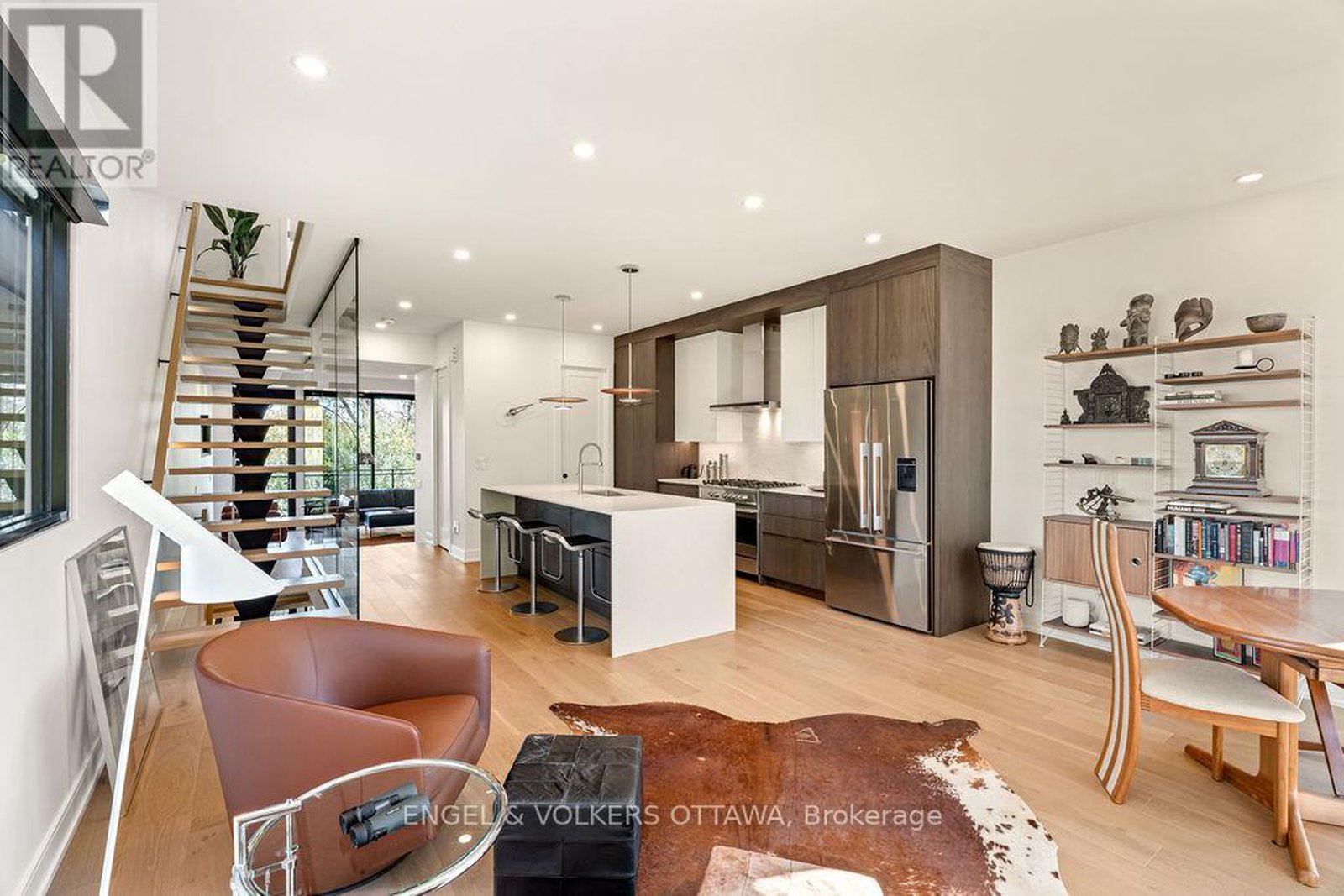 An exceptional residence in an award-winning enclave of just seven luxury homes by Gemstone Developments. Just moments from Little Italy, Dows Lake, Civic Hospital, CarletonU, with walking and bike paths at your doorstep. As the only home in the community featuring an extended private driveway and back deck, as well as incredible additional custom windows, this home offers rare, unobstructed views of the Experimental Farm and the Rideau Canal. Winner of a GOHBA award for interior design, this 3-bedroom, 4-bathroom home showcases over 2,400 sq. ft. of thoughtfully curated living space. The main level is perfect for stylish entertaining, featuring a chef's kitchen with a waterfall quartz island, custom cabinetry, gas range, walk-in pantry with sink, and designer finishes. Two elegant living areas with upgraded gas fireplaces and a sleek powder room complete the space. Amazing views from every room and private balcony off the back living room. Upstairs, the serene primary suite impresses with expansive windows and a spa-inspired ensuite with a soaker tub, expanded two-person glass shower, double vanity, and bidet. Two additional bedrooms, a full bath, and a laundry closet with a sink and custom cabinetry provide flexibility for guests or a home office. Ground level features a spacious foyer and a versatile area currently used as a stylish home gym, easily adaptable as a family room or office, along with a convenient powder room. Upgraded stringer staircase with open glass panels adds a striking architectural element while preserving the homes airy, contemporary feel. An extended lower back deck provides direct access to a beautifully landscaped backyard - offering a peaceful retreat surrounded by nature. This exclusive community blends refined design, natural surroundings, and a prime central location. Visit the website for full list of upgrades. ***Offering an exclusive incentive: buy this home before December 20th and pay no property taxes for 2026!***