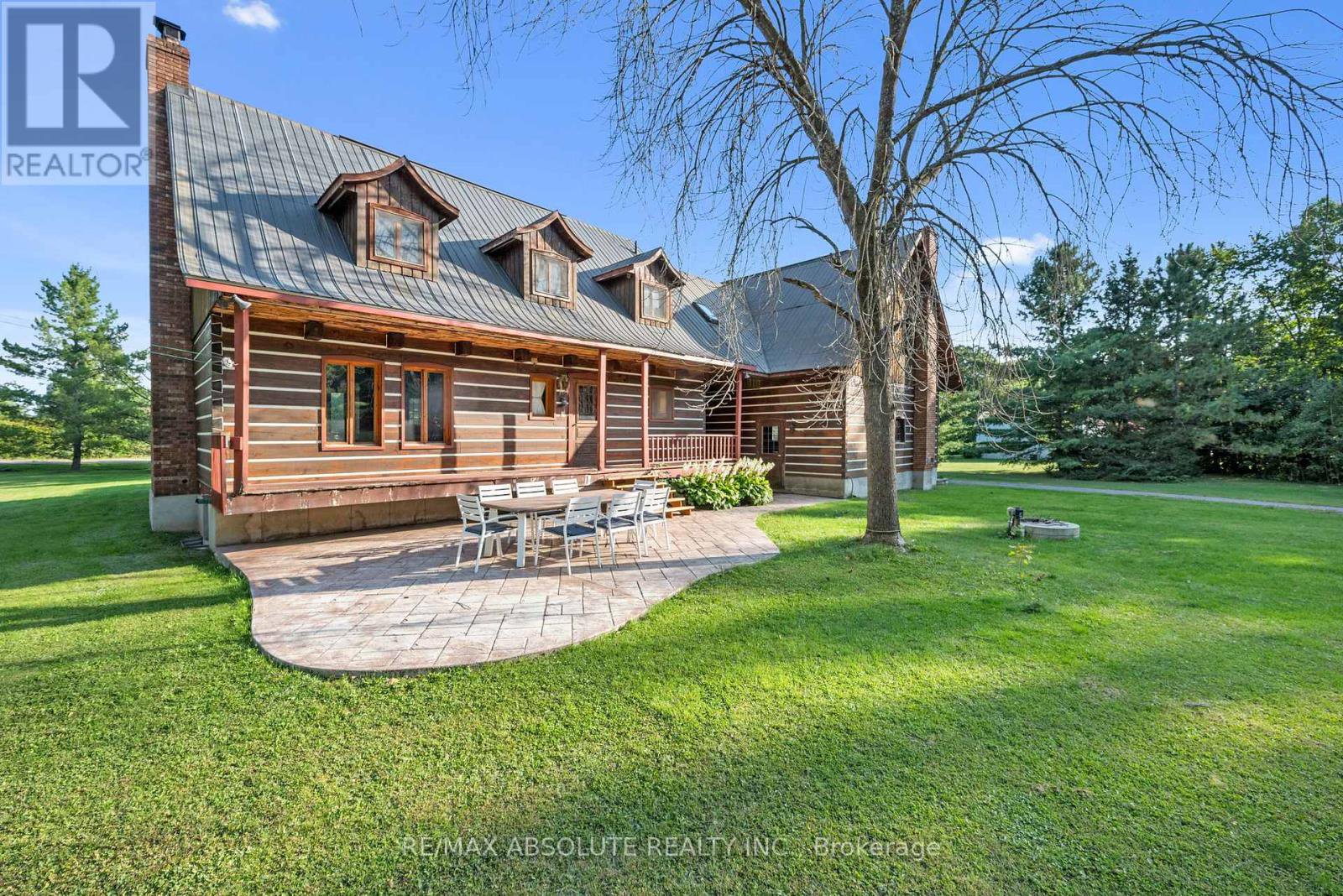 Charming log home on 1.99 acres in Braeside offering 3 bedrooms, 2.5 bathrooms, a versatile bonus room above the garage, a large barn, and a lean-to, with a balance of mature trees and cleared space; enter through a foyer with coat closet leading to a spacious living room with wood-burning stove, newly updated kitchen with ample cabinetry, quartz counters, large island with bar seating for four, pot and pan drawers, undermount sink at window, and adjoining dining room with space for family table and buffet; main floor powder room; upstairs features a primary bedroom with ample closet space and ensuite with vanity, toilet, and tub/shower with ceramic surround plus additional closet space; two secondary bedrooms with ample closets share a full bathroom with tub/shower, ceramic surround and toilet, which also connects to a laundry room with utility sink and storage; the bonus room above the garage provides flexibility for a family room, home office, hobby space or extra bedroom with inside access to the garage; finished basement includes a large family room with wood stove, bar area, and storage/utility room; wood heat throughout creates a cozy ambiance; outside enjoy the barn, lean-to, and generous acreage offering privacy and endless possibilities. 24hrs irrevocable on all offers.
