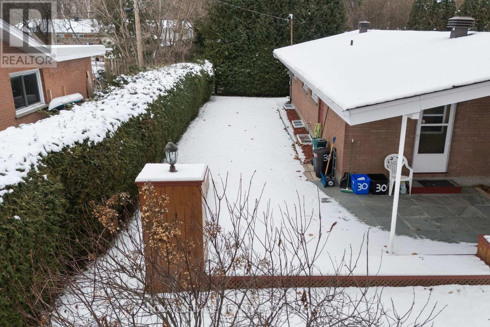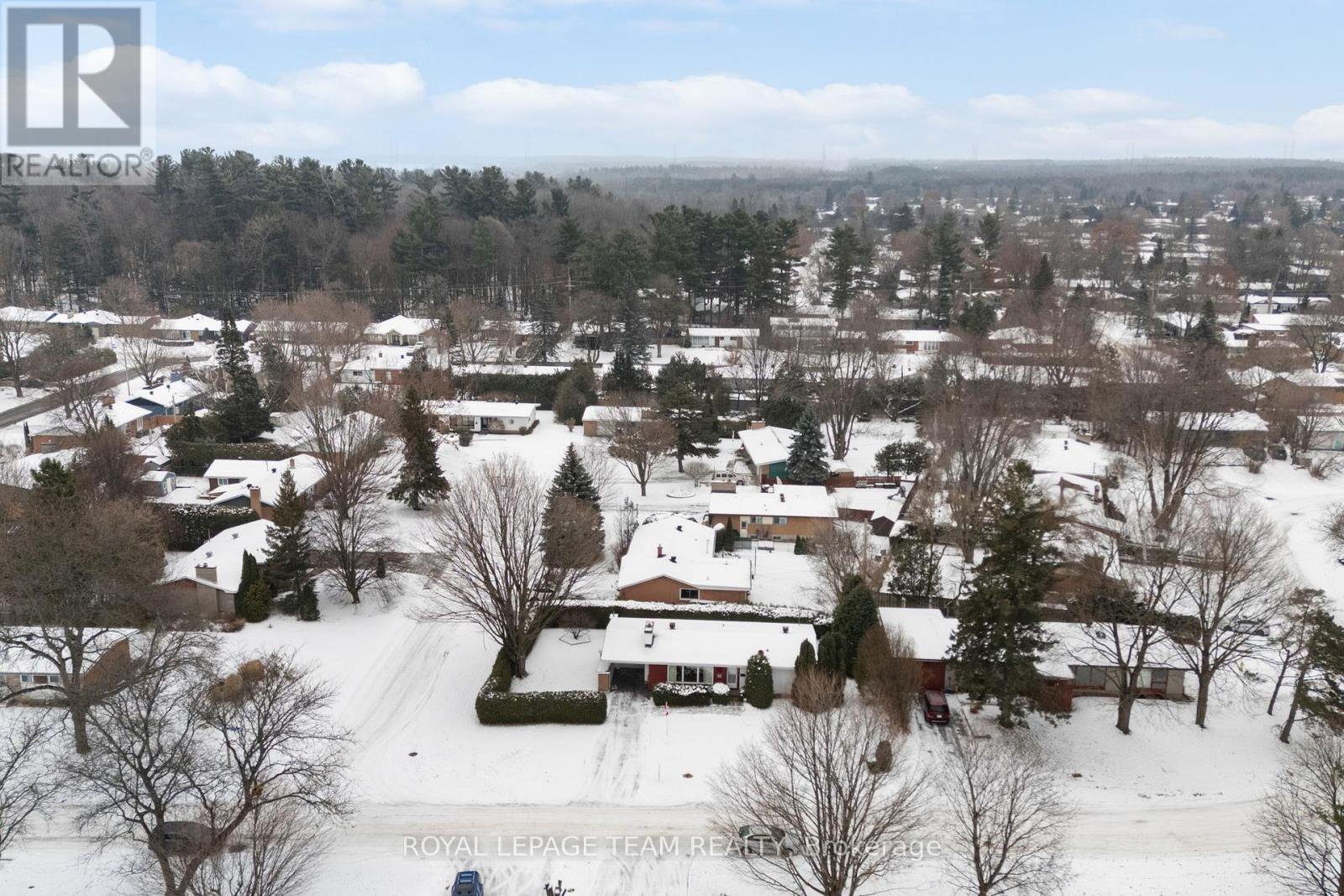 Welcome to 30 Ellery Crescent, a lovely 3 bedroom, 1.5 bathroom home located on a corner lot in the heart of Lynwood Village, Bells Corners. Lovingly maintained by the same owner for 56 years, this property sits on a quiet, child-friendly street. The L-shaped living and dining room features a brick-surround wood-burning fireplace and is enhanced by a large picture window that fills the space with natural light. The adjacent kitchen, updated in 2015 and featuring cork flooring, quartz countertops, ample cabinetry, and room for a breakfast table, provides both function and warmth (fridge replaced in 2021). Three well-proportioned bedrooms and a renovated four-piece bathroom with quartz counters and a linen closet complete the main level, where strip oak hardwood flooring flows throughout most of the space. The lower level offers exceptional versatility, including a spacious recreation room a legal egress window, a laundry area with bar top and sink, and a den that could easily serve as a fourth bedroom, complete with its own two-piece bath. Additional features include a storage room with built-in shelving and a utility room with tiled flooring and space for a workshop. Outdoors, the private back and side hedged yards with slate patio provides the perfect setting for relaxation or entertaining, while the carport offers extra storage convenience. Notable updates include roof (2018), furnace and A/C (2015, contract to be paid out by the seller before closing upon request), hot water tank (2015, rented), washer and dryer (approx. 2020), gutter covers (2013), windows, and central vacuum with attachments. Ideally situated just steps from the Entrance Pool, the NCC Greenbelt with miles of trails, and within walking distance to schools, churches, shops, restaurants, and all the amenities of Bells Corners, this home offers both comfort and convenience. Quick closing is available!