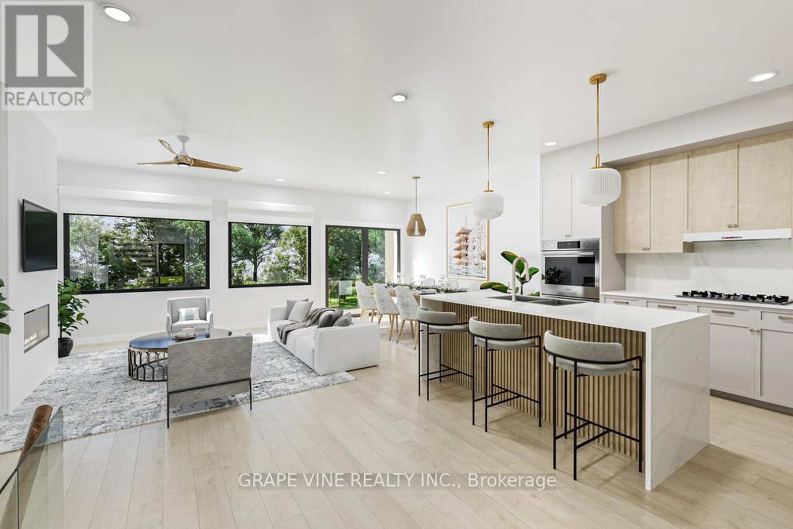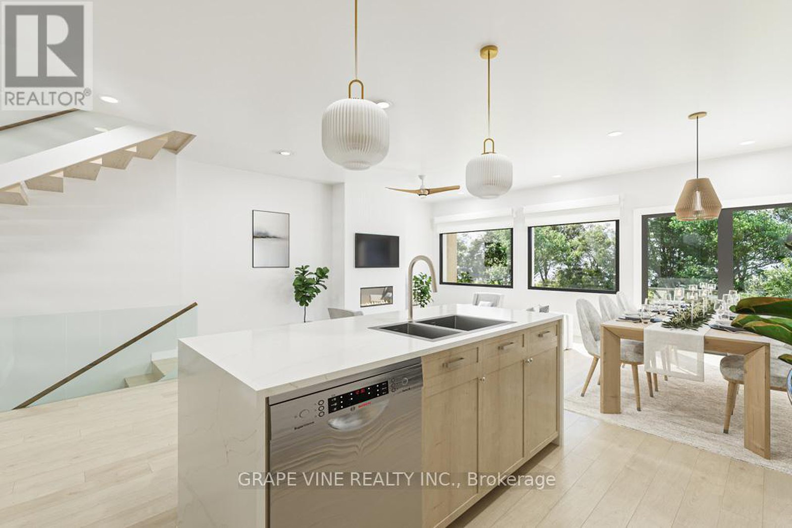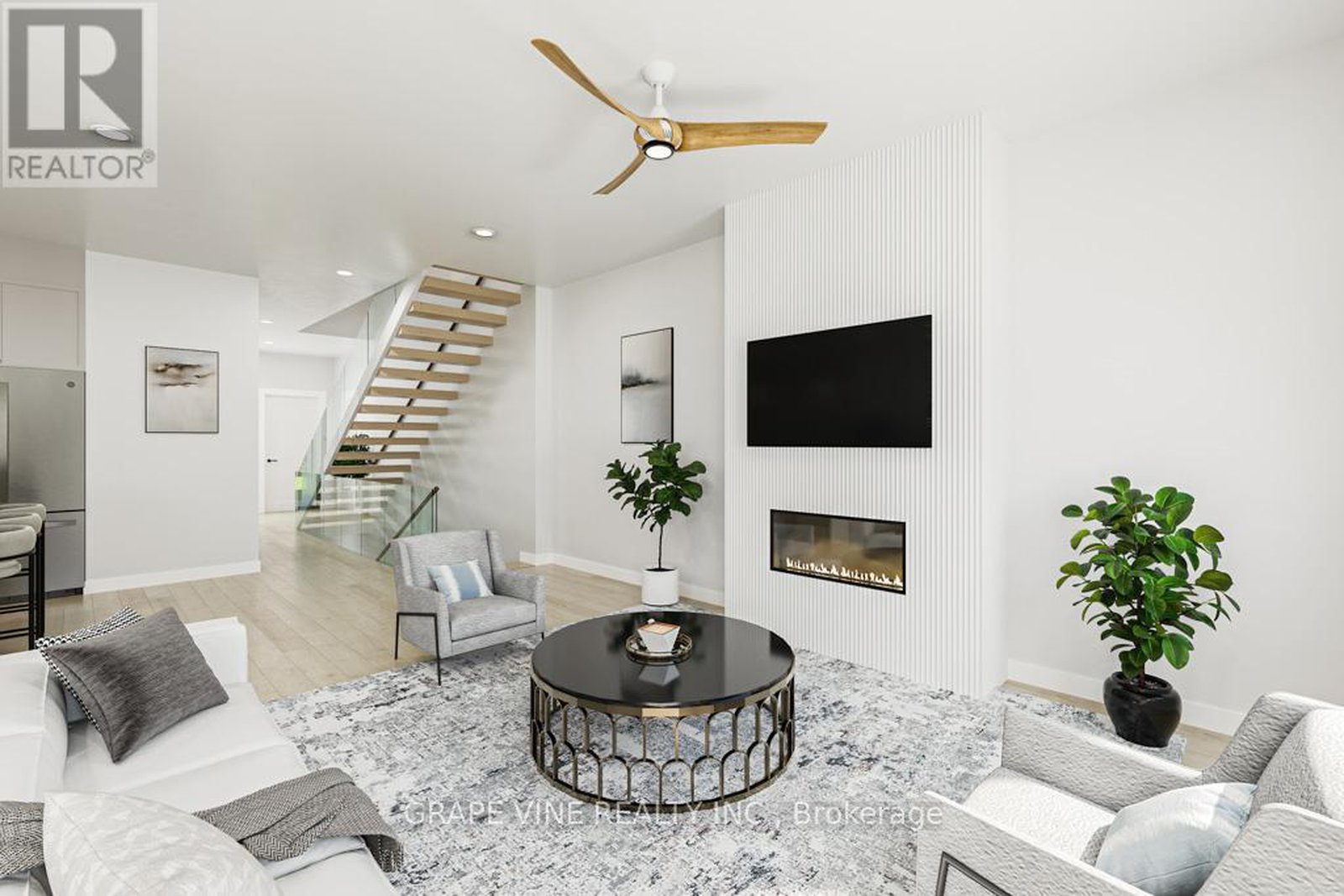 Step into refined riverside living with this exceptional 3-bedroom townhome at The Docks at Mooney's Bay. Thoughtfully designed for modern comfort and effortless style, this spacious two-storey residence offers 1,664 sq. ft. of beautifully appointed living space, complete with a private backyard, a single-car garage, and additional laneway parking. Every detail has been considered to create a home that feels both elevated and welcoming.The main floor features an open-concept layout with hardwood flooring throughout, creating a warm and seamless flow between living, dining, and kitchen spaces. The gourmet kitchen includes a stylish 60" 36" island, Silestone countertops, and modern cabinetry, making it the perfect setting for cooking and entertaining. Upstairs, all three bedrooms offer vaulted ceilings, adding volume and light to each space. The primary retreat includes a private balcony and an ensuite bathroom, providing comfort and privacy. A second-floor laundry room adds everyday convenience.Perfectly located just steps from Mooney's Bay Beach, Carleton University, Hogs Back Park, and transit-friendly routes to downtown Ottawa, this home offers unparalleled access to recreation, nature, and the city. It is an ideal choice for professionals seeking a peaceful escape with an easy commute, first-time buyers or investors looking for strong value in a riverside community, and downsizers who want low maintenance living without compromising on style. A monthly private road fee of $140 applies. Photos are renderings and represent possible finishes; selections are subject to change.