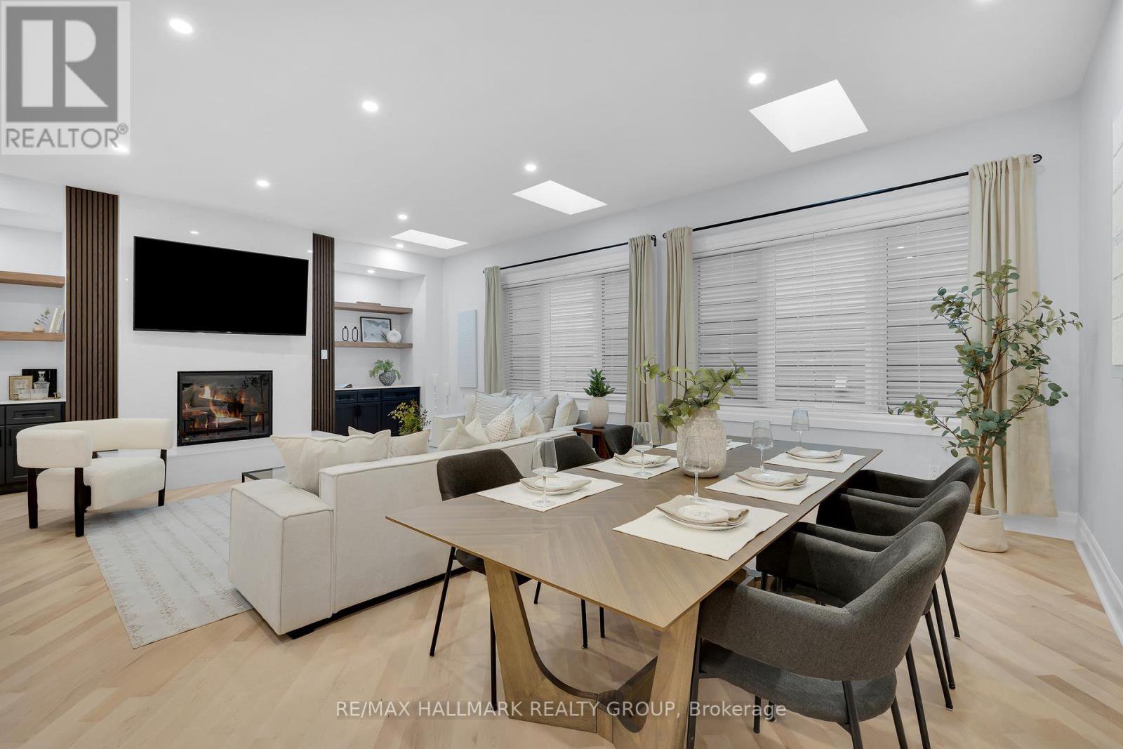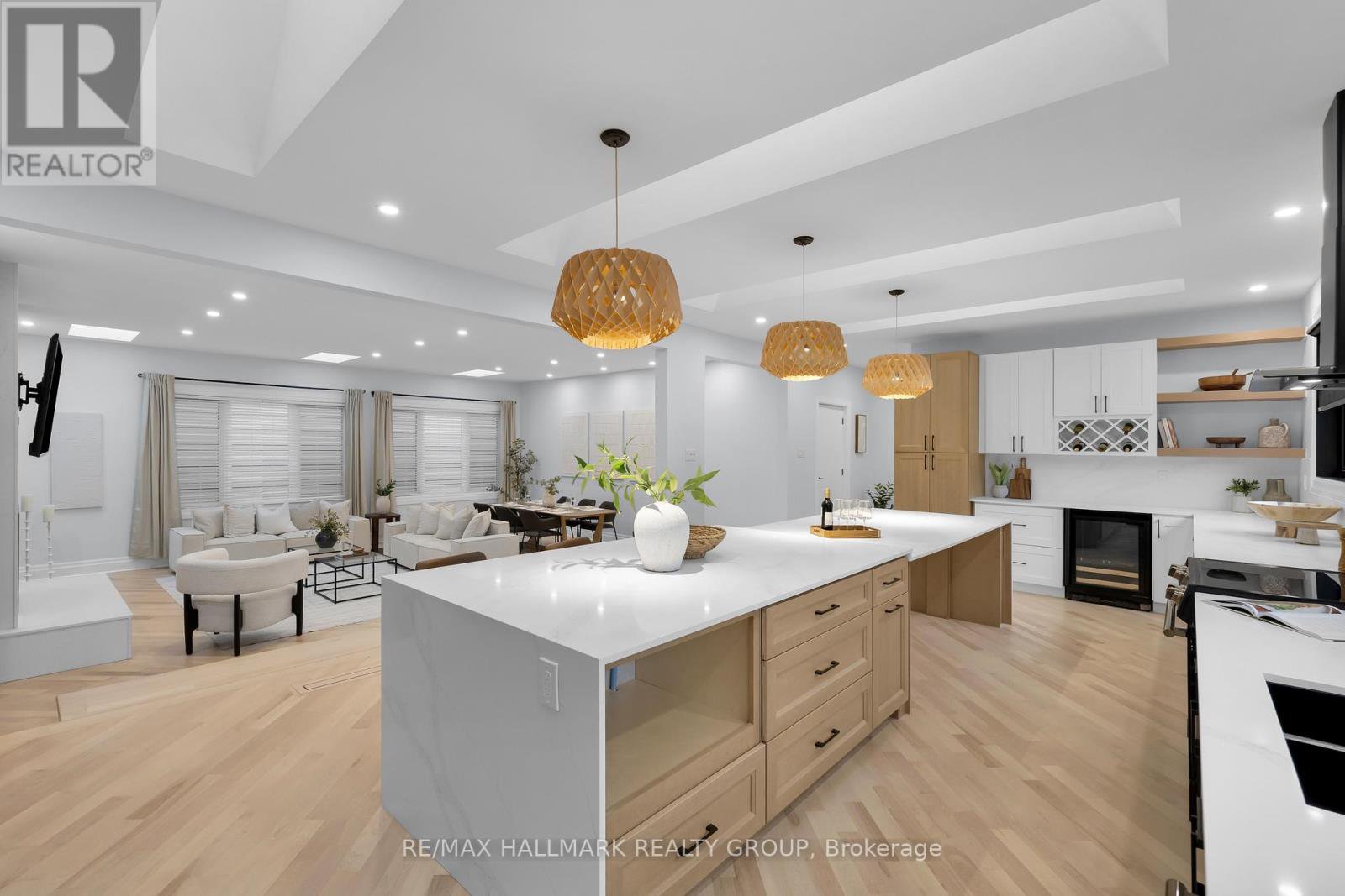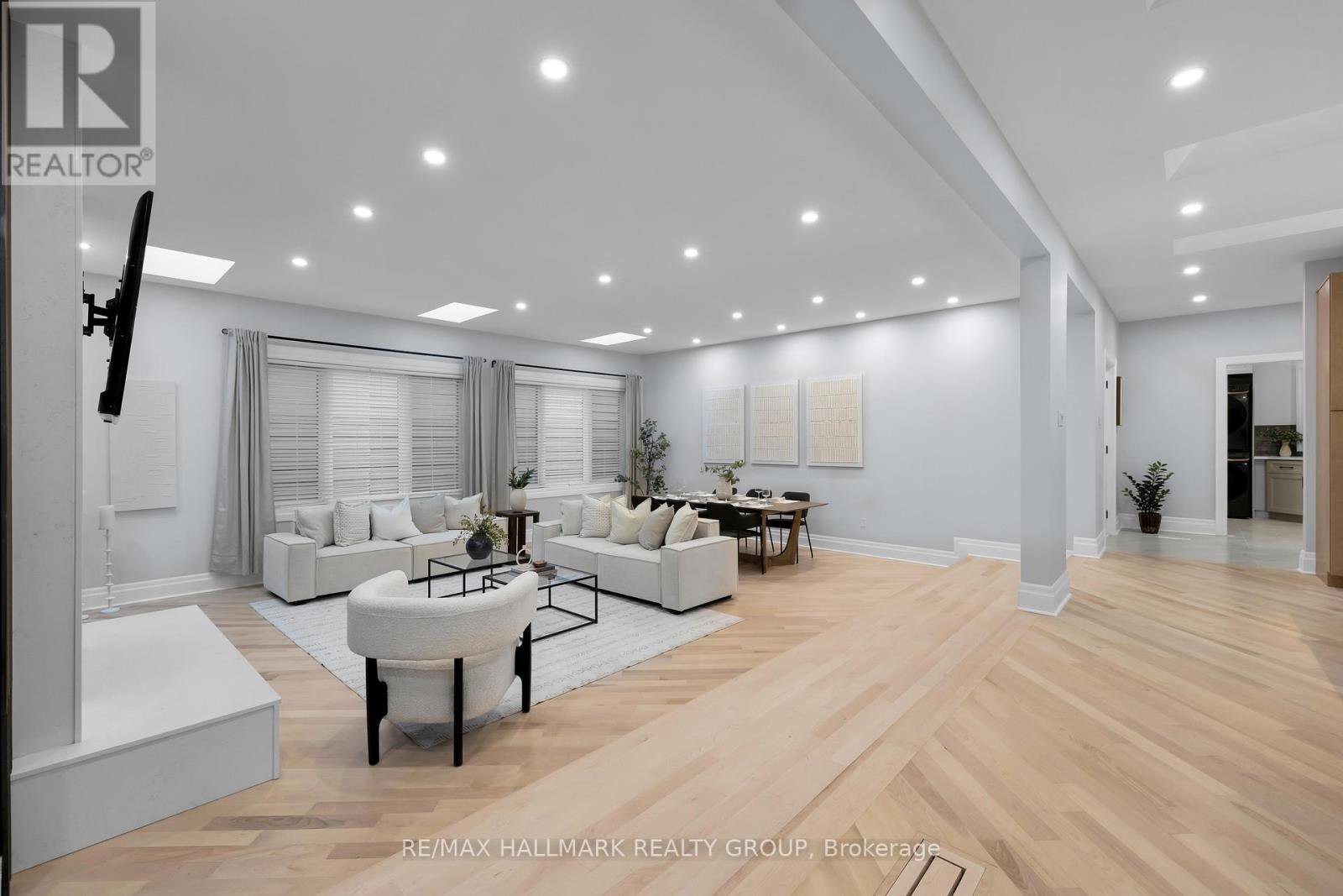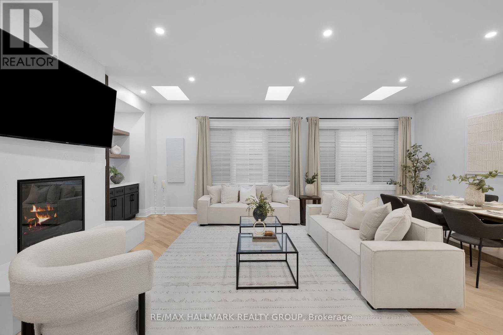 Welcome to a property that redefines luxury living. This exceptional 3+1 bedroom, 2+1 bathroom solid brick bungalow has been completely renovated from top to bottom, with no detail overlooked. From the moment you step inside, the grandeur is unmistakable. The sunken living room, featuring 12-foot ceilings, skylights, and a striking fireplace, creates an atmosphere of elegance and warmth. The designer kitchen is a true showpiece with a stunning 15-foot quartz island, premium appliances, skylights, and flawless maple hardwood floors flowing throughout the main level. The primary suite offers both comfort and sophistication with a spa-inspired ensuite featuring 36" wide doors, double sinks, an open-concept shower, and ample storage. The additional bedrooms and main bath echo the same high-end finishes, with a beautiful tub and walk-in shower. The main floor laundry room provides an impressive amount of cabinetry and organization space, while the fully insulated double garage easily accommodates four vehicles. The walk-out lower level feels like its own home-complete with a full kitchen, dining and living areas, bedroom, bathroom, and a secondary laundry room. Perfect for multi-generational living or as a luxurious guest suite. Step outside to an interlock backyard that opens directly onto a park, offering tranquility and privacy with no rear neighbours. Every inch of this home reflects thoughtful design and refined taste-rarely does a property of this caliber come to market. A true one-of-a-kind masterpiece where luxury and comfort coexist in perfect harmony.