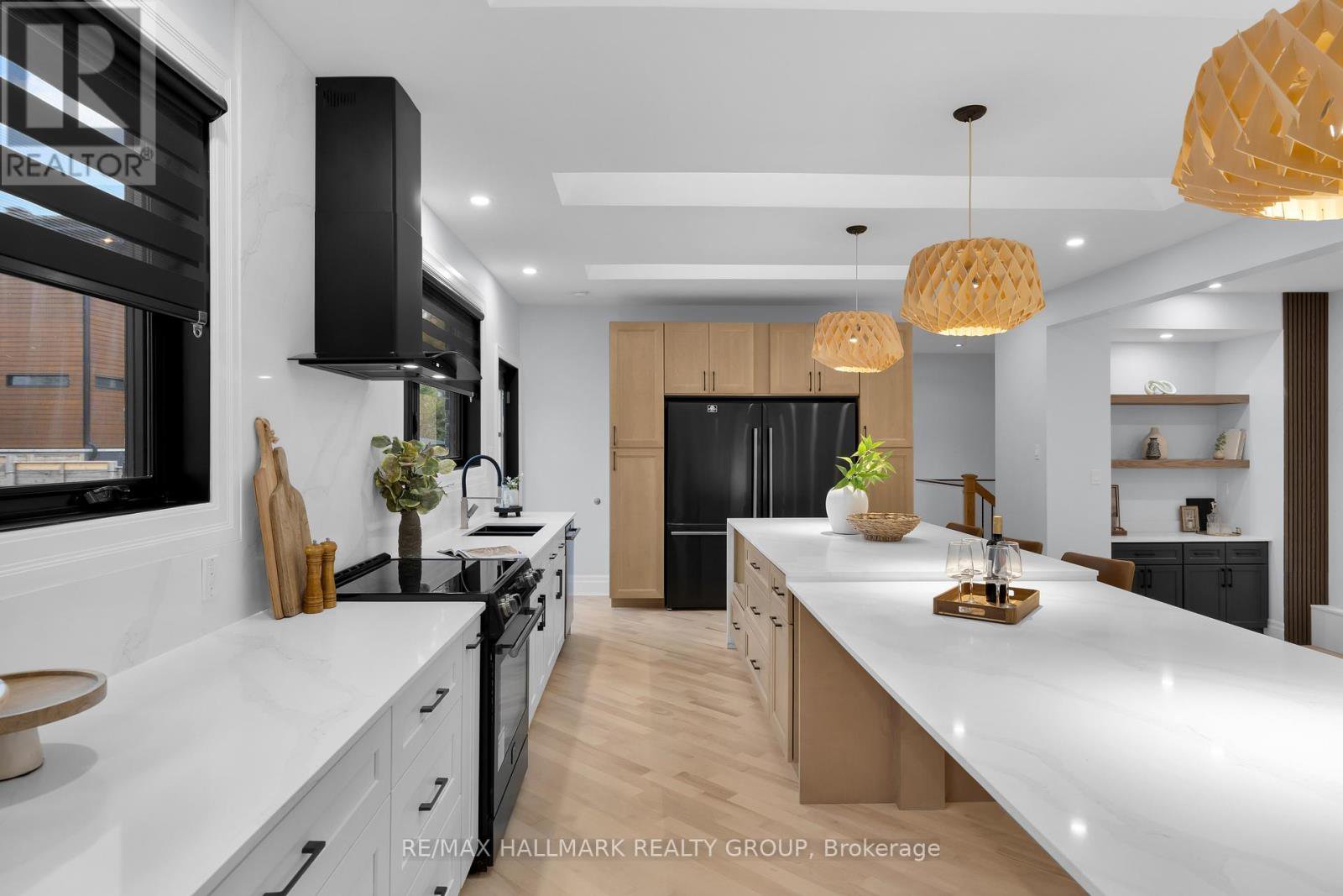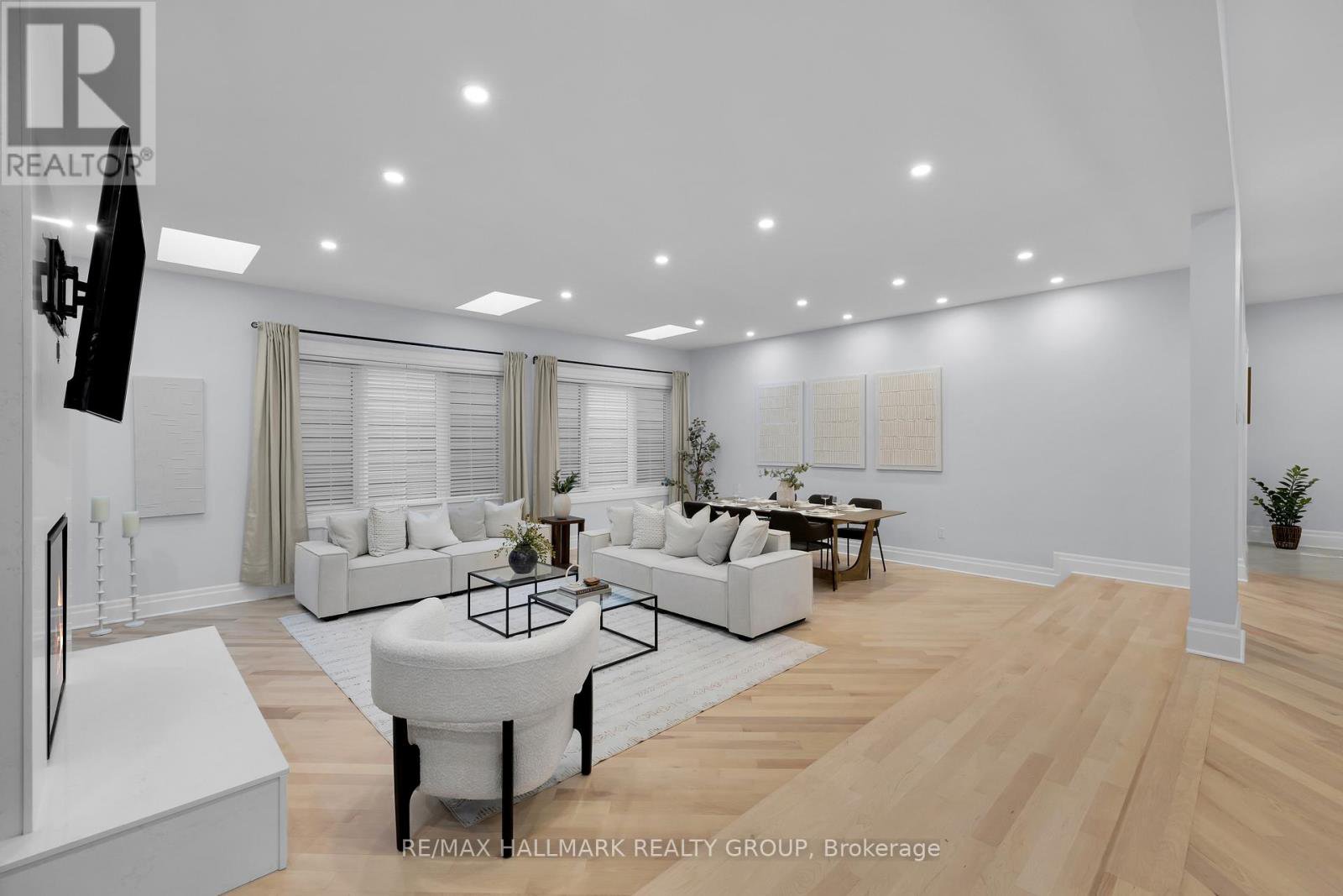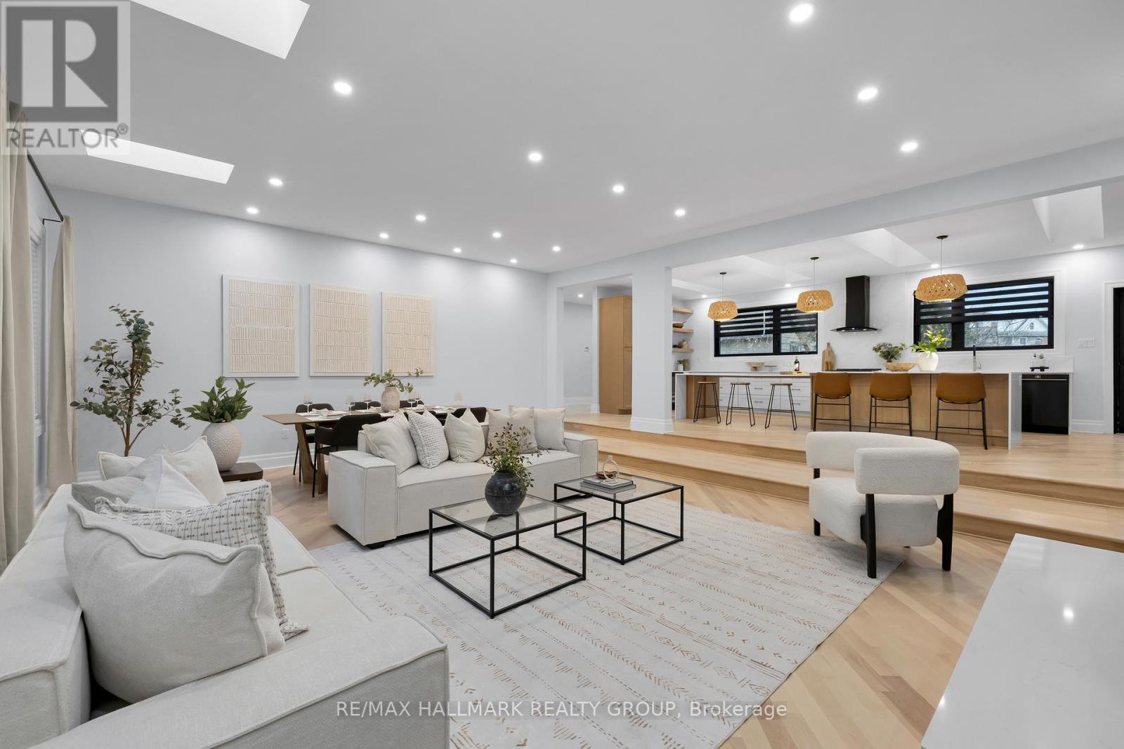 Welcome to a property that redefines luxury living. This exceptional 3+1 bedroom, 2+1 bathroom solid brick bungalow has been completely renovated from top to bottom, with no detail overlooked. From the moment you step inside, the grandeur is unmistakable. The sunken living room, featuring 12-foot ceilings, skylights, and a striking fireplace, creates an atmosphere of elegance and warmth. The designer kitchen is a true showpiece with a stunning 15-foot quartz island, premium appliances, skylights, and flawless maple hardwood floors flowing throughout the main level. The primary suite offers both comfort and sophistication with a spa-inspired ensuite featuring 36" wide doors, double sinks, an open-concept shower, and ample storage. The additional bedrooms and main bath echo the same high-end finishes, with a beautiful tub and walk-in shower. The main floor laundry room provides an impressive amount of cabinetry and organization space, while the fully insulated double garage easily accommodates four vehicles. The walk-out lower level feels like its own home-complete with a full kitchen, dining and living areas, bedroom, bathroom, and a secondary laundry room. Perfect for multi-generational living or as a luxurious guest suite. Step outside to an interlock backyard that opens directly onto a park, offering tranquility and privacy with no rear neighbours. Every inch of this home reflects thoughtful design and refined taste-rarely does a property of this caliber come to market. A true one-of-a-kind masterpiece where luxury and comfort coexist in perfect harmony.