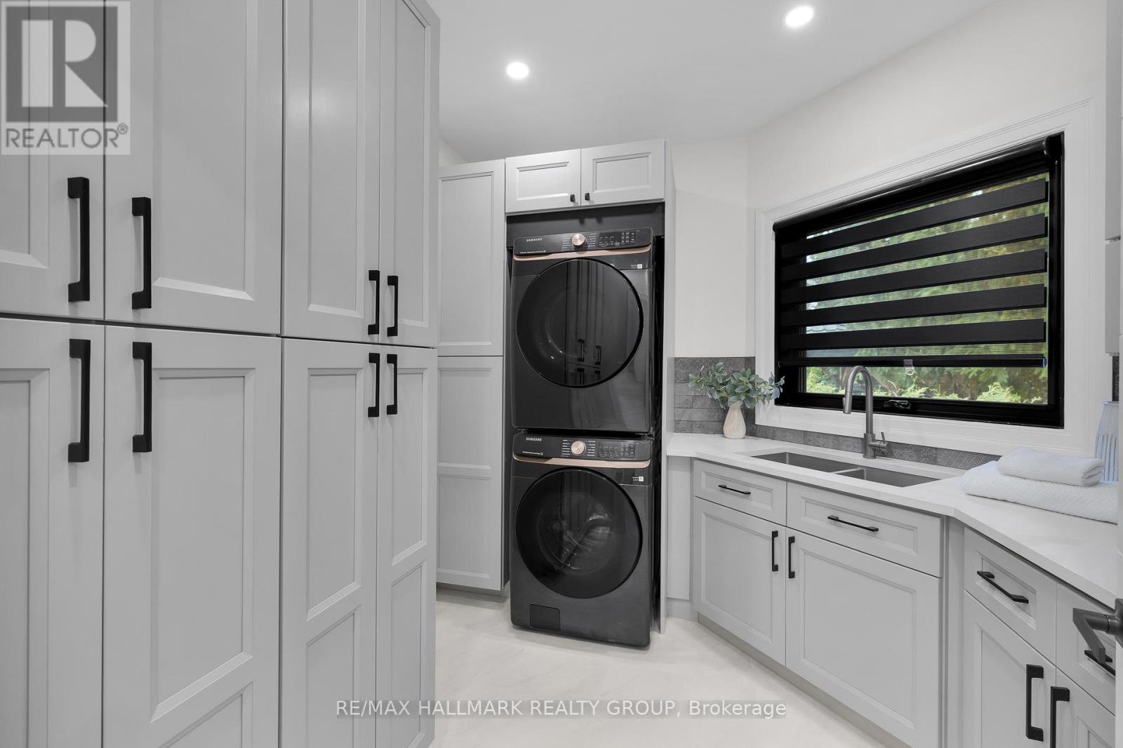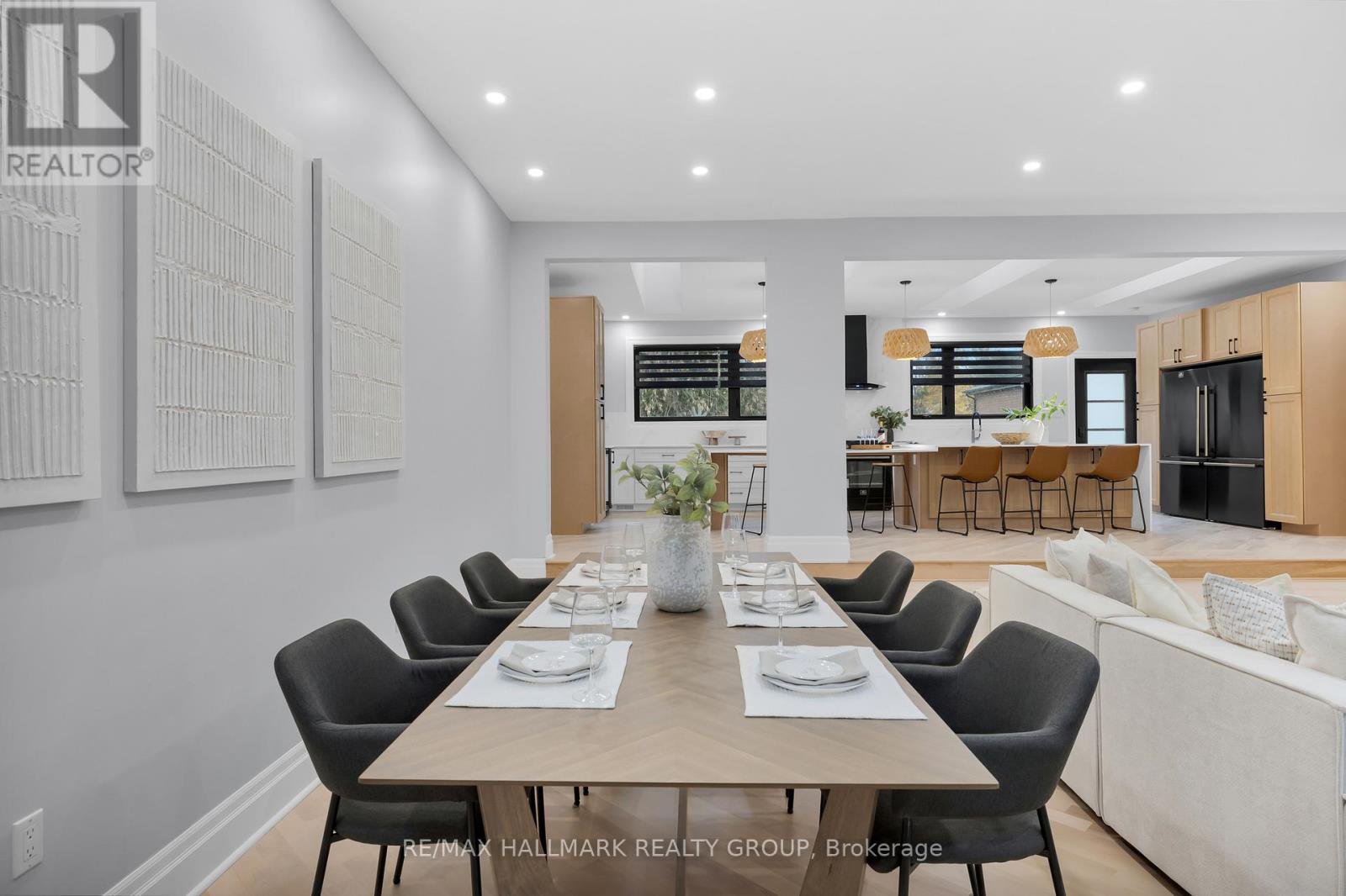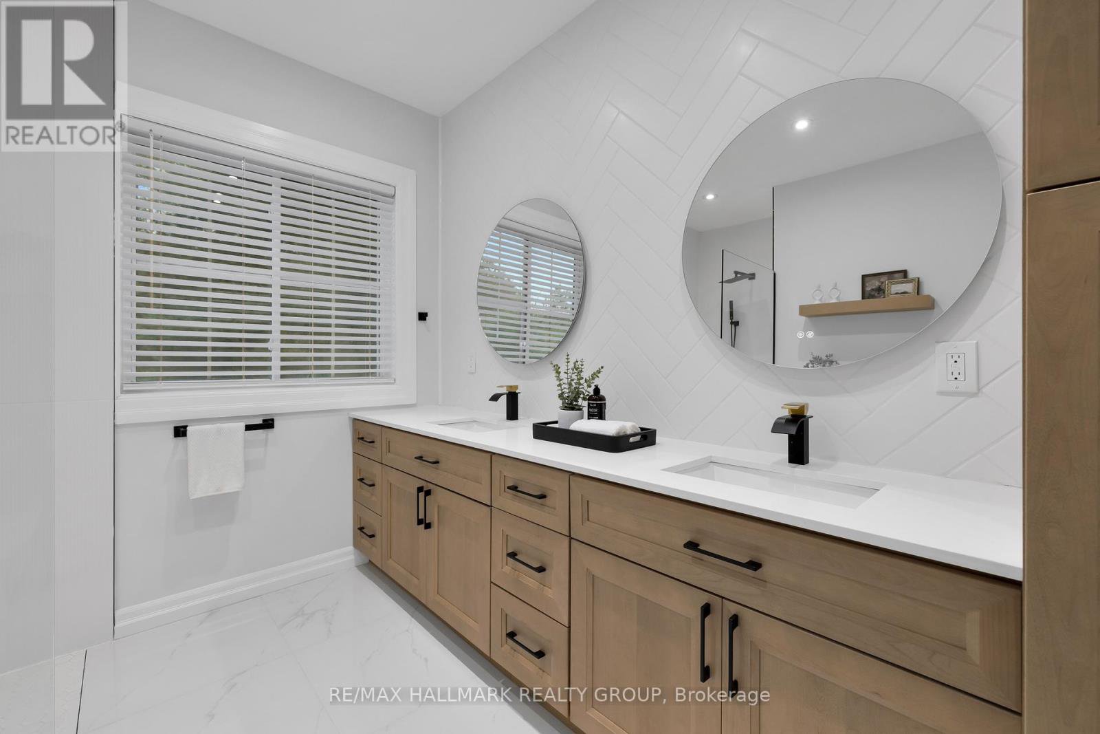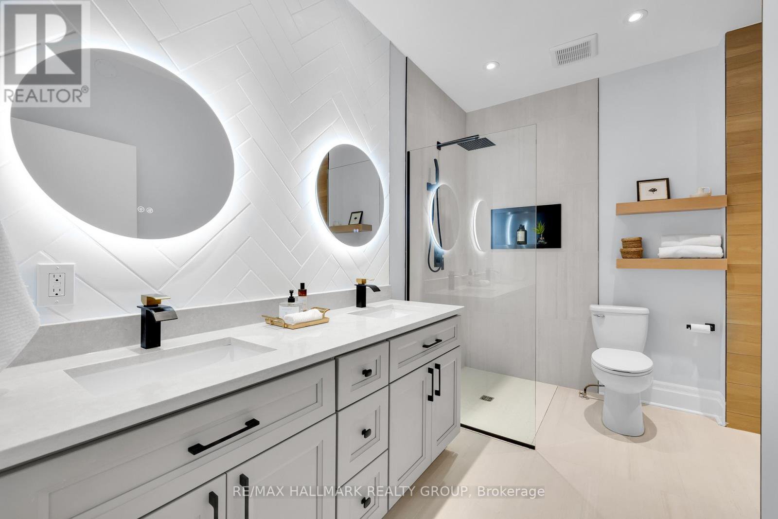 Welcome to a property that redefines luxury living. This exceptional 3+1 bedroom, 2+1 bathroom solid brick bungalow has been completely renovated from top to bottom, with no detail overlooked. From the moment you step inside, the grandeur is unmistakable. The sunken living room, featuring 12-foot ceilings, skylights, and a striking fireplace, creates an atmosphere of elegance and warmth. The designer kitchen is a true showpiece with a stunning 15-foot quartz island, premium appliances, skylights, and flawless maple hardwood floors flowing throughout the main level. The primary suite offers both comfort and sophistication with a spa-inspired ensuite featuring 36" wide doors, double sinks, an open-concept shower, and ample storage. The additional bedrooms and main bath echo the same high-end finishes, with a beautiful tub and walk-in shower. The main floor laundry room provides an impressive amount of cabinetry and organization space, while the fully insulated double garage easily accommodates four vehicles. The walk-out lower level feels like its own home-complete with a full kitchen, dining and living areas, bedroom, bathroom, and a secondary laundry room. Perfect for multi-generational living or as a luxurious guest suite. Step outside to an interlock backyard that opens directly onto a park, offering tranquility and privacy with no rear neighbours. Every inch of this home reflects thoughtful design and refined taste-rarely does a property of this caliber come to market. A true one-of-a-kind masterpiece where luxury and comfort coexist in perfect harmony.