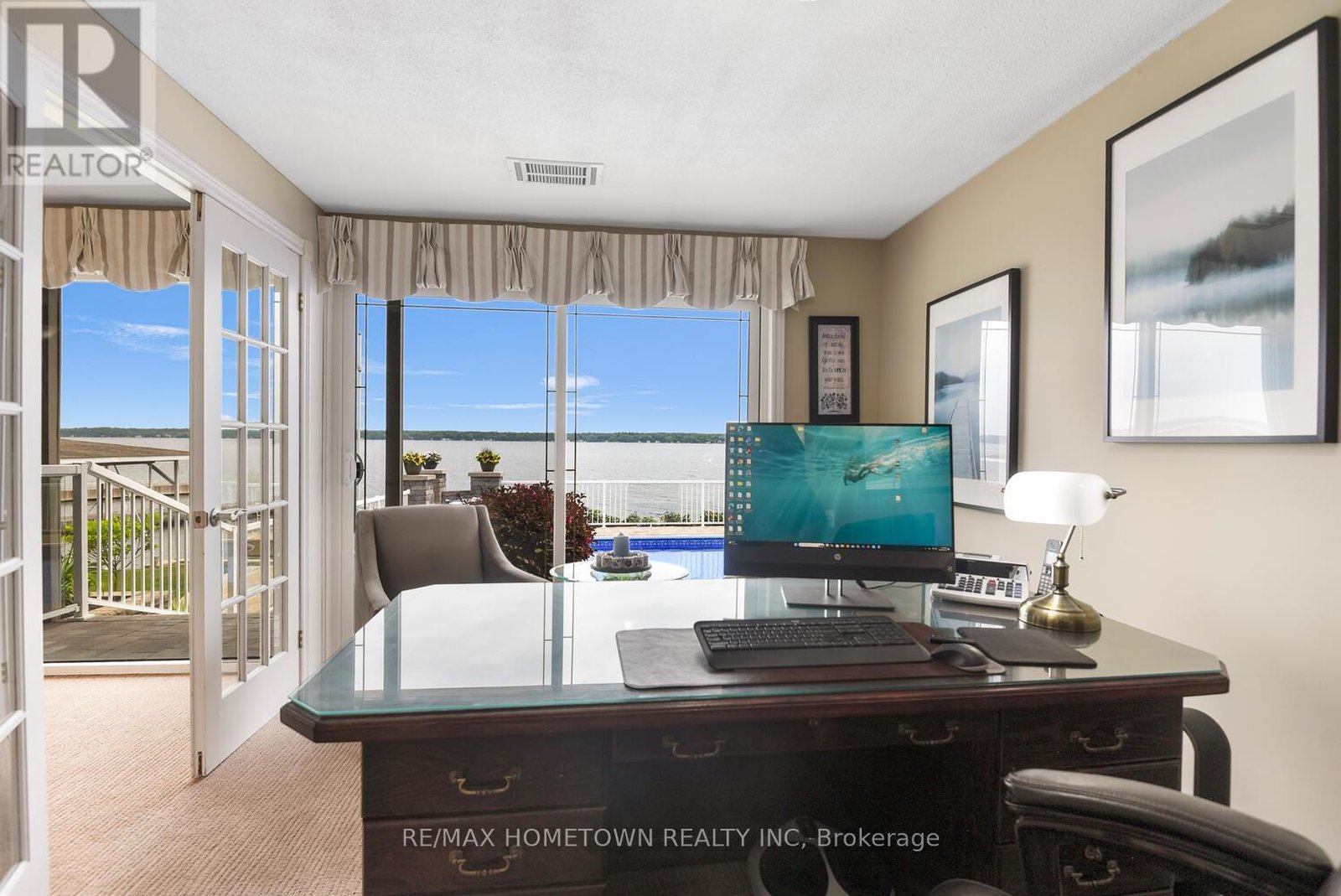 Perched on the banks of the St. Lawrence River, this impeccably maintained all-brick/stone bungalow awaits you. Step inside this deceptively modest façade and discover a 3,100 sq ft, 3 + 1-bedroom, 3-bath retreat on the banks of the St. Lawrence River complete with a double-car garage, in-ground pool, and full walk-out lower level that's primed for an in-law suite or multifamily setup. Key Features: Waterfront Wow-Factor Instant river views greet you the moment you cross the threshold. Expansive, low-maintenance decks (one covered with an adjustable awning) overlook the pool and riverfront. Private dock, perfect for your boat or evening sunset sessions. Main Level Living Open living/dining layout divided by a gas fireplace, both rooms opening onto the deck; chef's kitchen with abundant cabinetry, generous counter space, and patio access - Primary suite with built-in closets, private deck access, and 3-piece ensuite - Two additional bedrooms and a 4-piece bath round out this level. Lower-Level Versatility Fourth bedroom and 3-piece bath-ideal guest or nanny quarters. Media room and exercise room, each with built-in storage. Cozy family room centered around a gas fireplace-home office life has never been so distracting! Laundry room plus a dedicated hot-tub room for year-round relaxation - Outdoor & Lot Highlights - Professionally interlocked driveway and newly planted gardens showcase true pride of ownership. - The inground pool is ready for summer afternoons, with steps leading directly to your dock. A full walk-out basement offers easy subdivision or suite conversion with a separate entrance. Everything you've been looking for-space, light, luxury, and waterfront lifestyle-is here. Come see how deceiving exteriors can set the stage for something truly extraordinary.