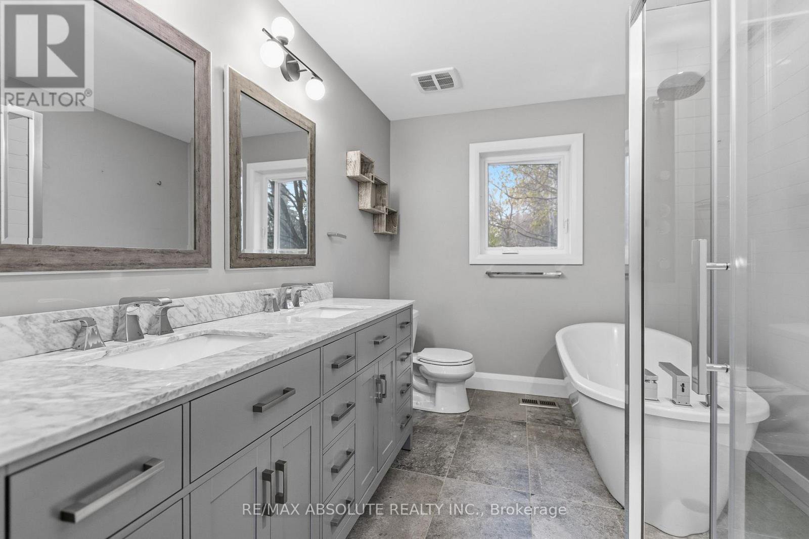 An AMAZING opportunity awaits on a very quiet street where you feel as though you are in the country BUT you are actually STEPS to ALL that Stittsville Main has to offer! Location, location! This lot is 100 feet wide x 171 feet deep, enormous compared to today's standards! EVERYTHING IS NEW! Beautifully renovated, NOT only was the interior renovated but all the MAJOR upgrades have been too like ALL the windows, ROOF, AC, furnace! The composite covered front porch is the width of the home that you are guided to by the NEW interlock walkway! 6" MAPLE hardwood floors throughout, a STUNNING colour! All the windows in the home are huge! A wall of built-in cabinets & open shelving can be found in the living room, perfect for decor or extra storage! The white kitchen offers granite countertop, new stainless appliances, TONS of countertop space, a window over the sink that allows for the views in the North West facing backyard & so much more! Easy access to the backyard from the dining room! You can access the ENVIABLE mudroom that has heated floors & LOTS of amazing space (screams for some cute cubbies) from the garage or from the outside (bonus entry)! Main floor office! This floor plan is amazing! The classic hardwood staircase complete with white risers! The large primary bedroom offers custom built ins in the walk in closet. The 5 piece ensuite has a glass shower & free standard tub, dual sinks & stone countertops! 3 additional good size bedrooms, 5 piece main bath & laundry complete the 2nd level! FULLY finished lower with a gas fireplace & an additional room perfect for a 2nd office or playroom! The above ground pool is new along with the decking & interlock that surrounds the home! You will LOVE it in the summer, float around in the sunny all afternoon backyard & enjoy the covered hot tub all winter! Home is on well & SEWER (best of both worlds) NO water bill, BRAND new water softener! ! Oversized 2 car garage & 200 amp Opportunity knocks, this is a GREAT buy