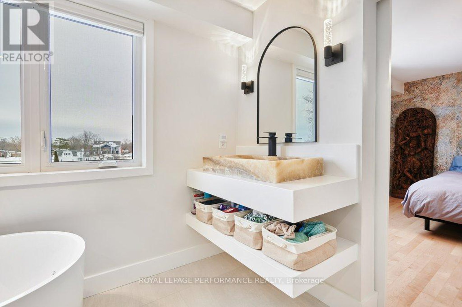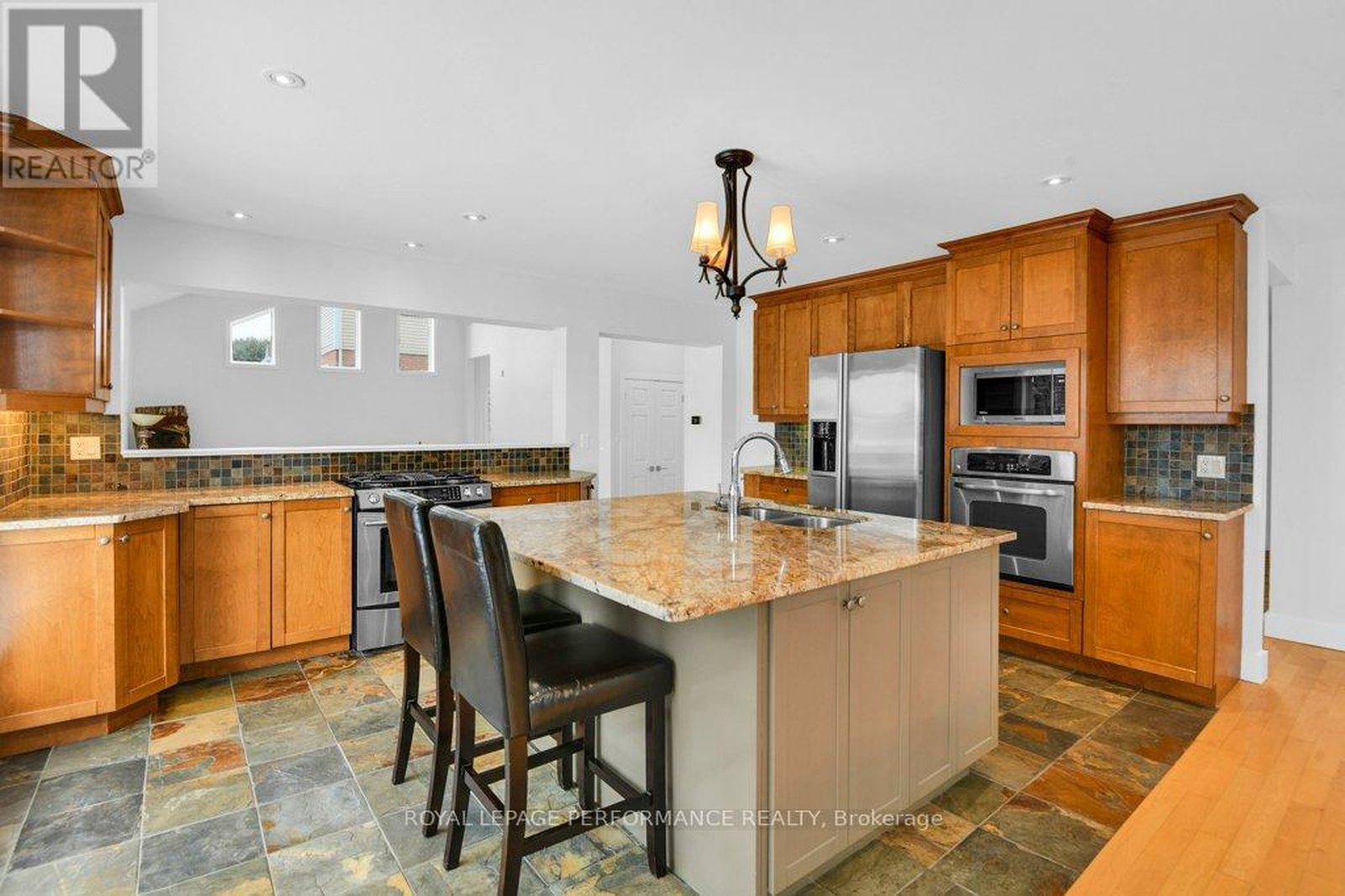 Discover the perfect blend of luxury, comfort, and breathtaking waterfront views in this stunning 5-bedroom, 5-bathroom home, just minutes from Manotick. Nestled on a quiet dead-end street and across from Rideauview Golf Club, this meticulously updated home offers high-end finishes and thoughtful design throughout. Enjoy miles of lock-free boating from your clean shoreline and new dock (Summer 2024). The fully landscaped, fenced backyard is an oasis featuring a gazebo with a hot tub, a deck with a retractable awning, and lush perennial gardens perfect for relaxing or entertaining. Elegant & Spacious Interior with 5 Generous Bedrooms Above Grade (including a main-floor bedroom with a full bath nearby, currently used as an office) 4 Full Spa-Like Bathrooms + 1 Powder Room, Grand Kitchen Spanning half the width of the home, offering stunning water views, Soaring Ceilings & Open Loft Area overlooking the living room, ideal for a study or lounge space. Primary Suite Retreat featuring a luxurious ensuite spa bath and a striking tile focal wall. Prime Location & Exceptional Features Located just minutes from Manoticks charming shops and restaurants, this home is designed for both convenience and tranquility. See attached list of upgrades and inclusions, there is truly nothing left to do but move in and enjoy! INCLUDED: Washer, Dryer, Gas Stove, Wall Oven, Refrigerator, Dishwasher, Microwave, Light Fixtures, Ceiling Fans, Window Coverings, Retractable Awning, Central Vacuum, Irrigation System, On-Demand Hot Water Tank, Generac Generator. Don't miss this rare opportunity. Schedule your private tour today!