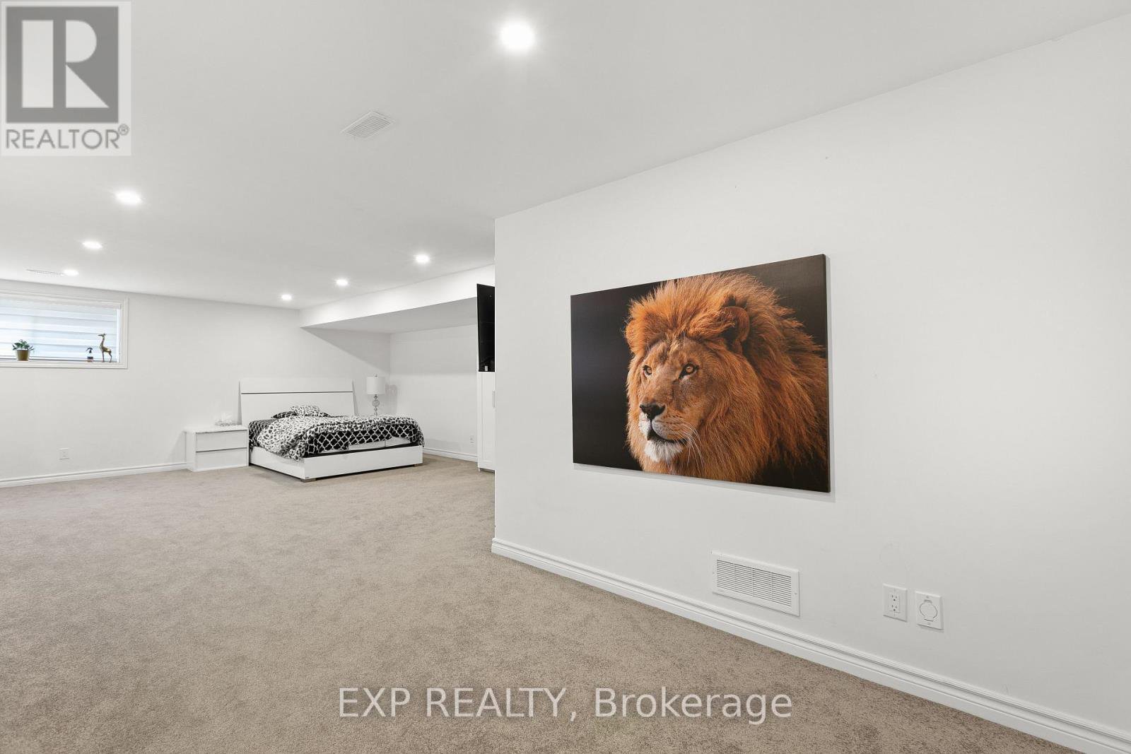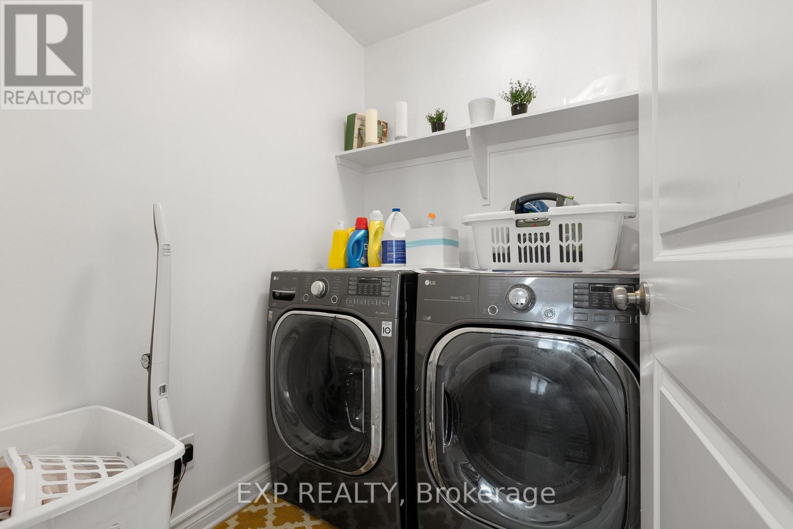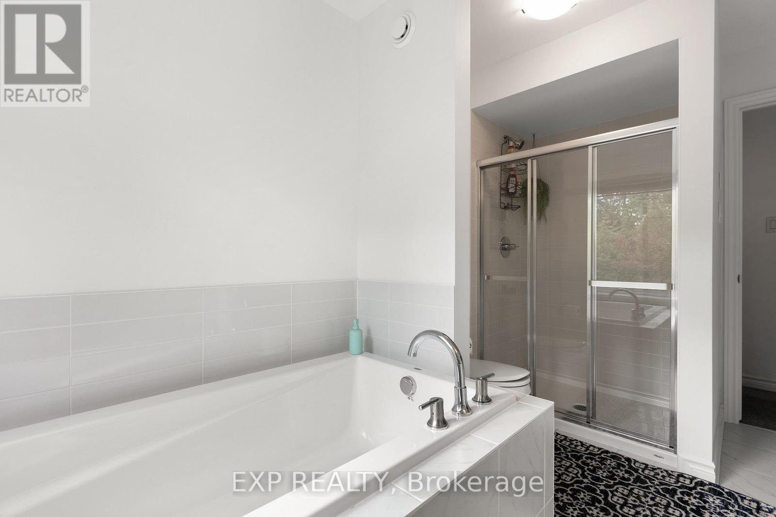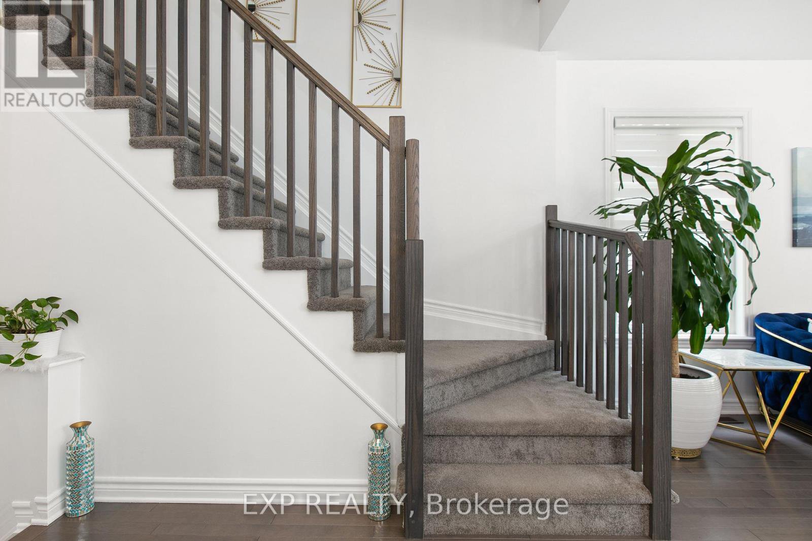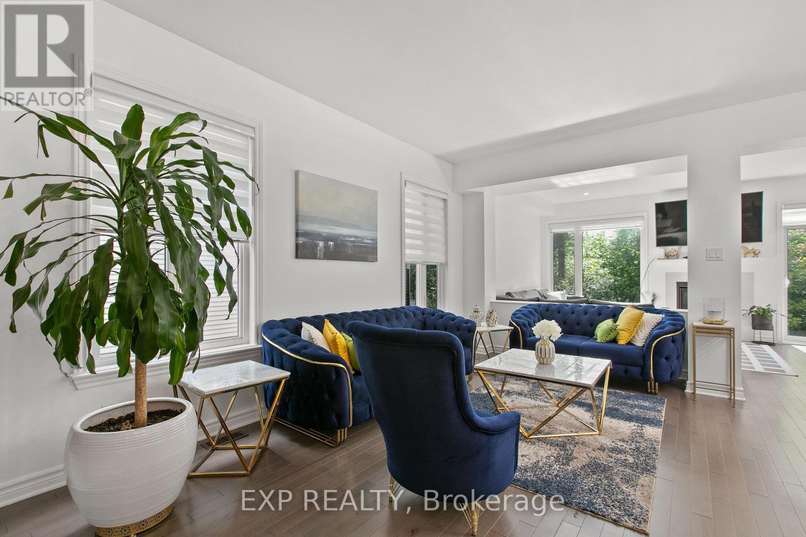 Welcome to 1010 Eider Street, stunning Fairhaven-End model by Richcraft Homes in highly sought-after Riverside South. Built in 2022, this meticulously maintained 3-bed + den, 3-bath END-UNIT townhome offers over 2,200 sq. ft. of living space, backing onto a serene treed area with NO REAR NEIGHBOURS. Step inside to find elegant hardwood floors throughout the main level, a bright open-concept layout, and a gas fireplace that adds warmth to the family room. The chef-inspired kitchen features quartz countertops, sleek cabinetry, and a full suite of luxury White Café appliances. Enjoy casual dining at the breakfast bar or entertain in the adjacent dining area overlooking the private backyard. Upstairs, a generous loft/den provides the perfect workspace or reading nook. The primary bedroom is a true retreat with a large walk-in closet and a spa-style ensuite featuring a soaker tub, walk-in glass shower, and quartz counters. Two additional bedrooms, a full bath, and second-floor laundry complete this level. The fully finished basement offers a spacious rec room with endless possibilities. With 3 parking spaces, a single garage, and prime proximity to schools, parks, and shopping, this move-in ready home checks every box!
