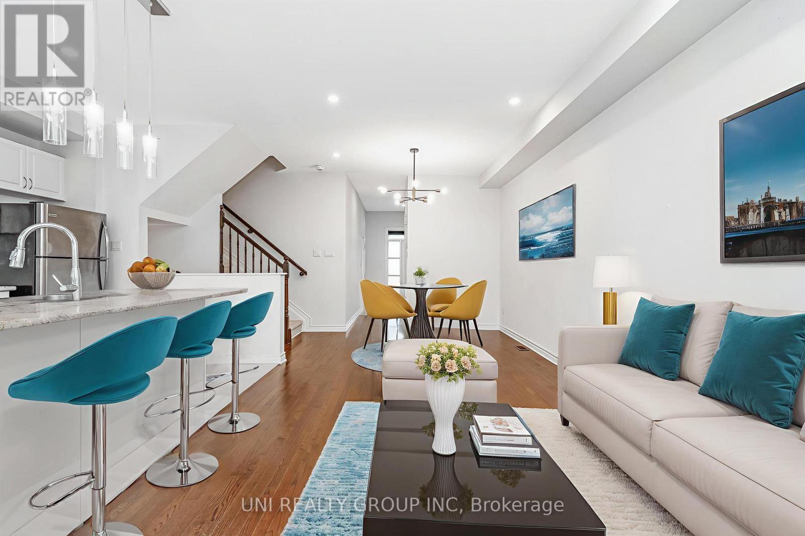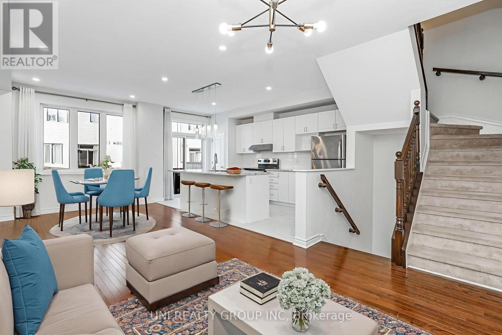 Welcome to this stunning Minto Monterey model in the heart of Orleans' sought after Avalon West community offering 3 bedrooms, 4 bathrooms(3 full bathrooms + 1 partial bathroom), a finished basement, and approximately 1800 sq ft of bright, modern living and a garage door opener. This move in ready home showcases an inviting open concept layout with 9' ceilings, gleaming oak hardwood floors on the main level, pot lights, and a spacious foyer with a large closet. The stylish kitchen features white cabinetry, stainless steel appliances, modern style counters, a large center island with breakfast bar seating, pantry, and patio doors leading to the backyard, an ideal setup for entertaining. The 2nd level offers a generous primary bedroom with a walk-in closet and a sleek 3 piece ensuite, along with two additional well sized bedrooms, a full bathroom, and convenient upstairs laundry. The fully finished basement expands your living space with a versatile family/rec room, oversized window, a full bathroom, and ample storage. With a warm, neutral palette and meticulously maintained interiors, this beautiful Monterey model delivers comfort, style, and functionality in one of Orleans' most desirable neighbourhoods, a must see home! Perfectly situated within walking distance to parks, schools, trails, transit, restaurants, and all amenities. Some images are virtually staged. 24-hour irrevocable required on all offers.