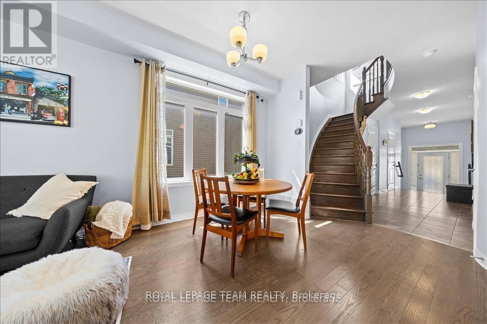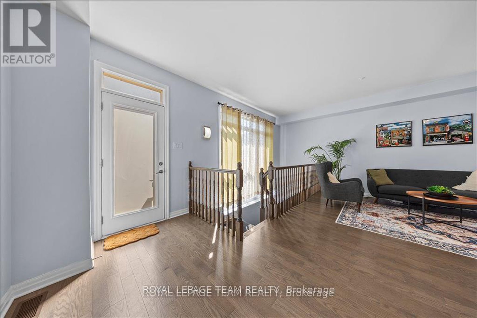 Located in the highly desirable Trailwest community of South Kanata, this sun-filled 4 bedroom, 3.5 bathroom end-unit townhouse offers the perfect balance of style, space, and convenience. Set on an extra-wide lot, the home boasts a carpet-free design, soaring 9-ft ceilings, elegant hardwood floors, and oversized windows that fill every level with natural light. The modern kitchen features granite countertops, a center island, stainless steel appliances, and abundant cabinetry, opening seamlessly to bright and spacious living and dining areas perfect for entertaining or everyday family living. A convenient powder room, mudroom with laundry, and a hardwood spiral staircase complete the main level. Upstairs, discover four generous bedrooms, including a primary retreat with a walk-in closet and private ensuite, along with a second full bathroom. The fully finished basement adds even more living space with a large recreation room, full bath, and generous storage, ideal for a home office, gym, or family gatherings. Freshly painted in 2025 and move-in ready, this home is ideally located just steps from schools, parks, shopping, and public transit.