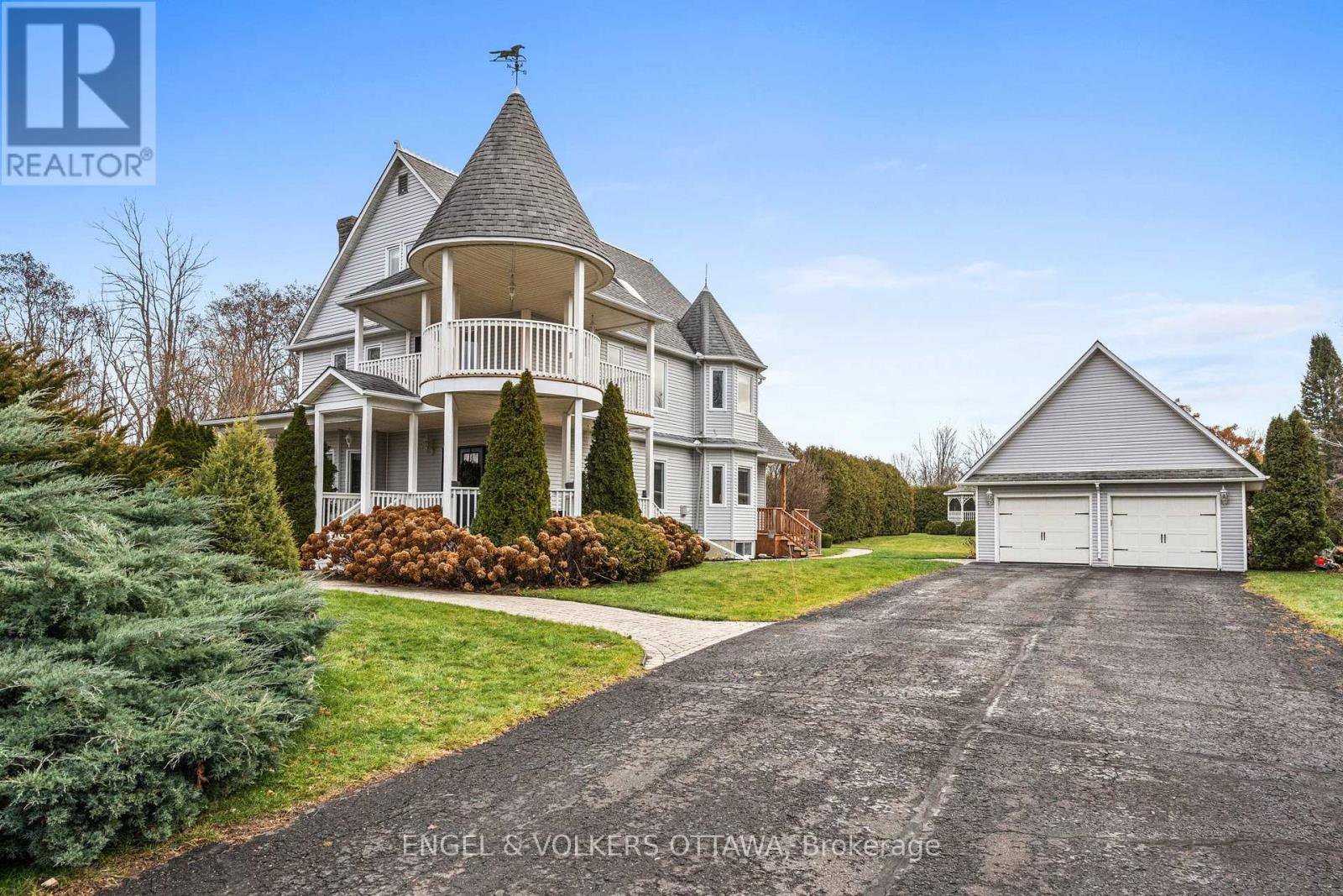 Welcome to 2410 Concession Road - a completely renovated 3-storey Victorian home where timeless character meets modern living. No expense has been spared in this thoroughly upgraded property.Sitting on a private 1.5-acre lot surrounded by mature hedges and trees, this home offers true country charm. The backyard is an outdoor oasis featuring a private fish-filled pond, screened-in gazebo perfect for summer evenings, pool, play structure, and a cozy fire pit. The detached garage with separate hydro is ideal as a workshop or hobby space.Inside, the beautiful kitchen includes a large island, ample storage, and a built-in breakfast nook with a bright bay window - perfect for busy families. A formal dining room is great for gatherings, while the den offers abundant natural light and a cozy fireplace for cooler nights. The living room off the kitchen is ideal for movie nights or watching the big game.The second floor hosts a stunning primary suite with a massive walk-in closet, beautiful ensuite, and private office. Two additional generously sized bedrooms and a full bathroom complete this level. One of the bedrooms has direct access to the walkout balcony on the second floor. The third floor offers incredible versatility with a kids' play area, games room, and an additional room perfect for guests or creative use. Every detail of this home has been thoughtfully upgraded and meticulously maintained. Located just minutes from Old Town Kemptville, you'll enjoy a charming small-town feel with access to local coffee shops, bakeries, restaurants, pet stores, bookstores, parks, community spaces, and endless outdoor amenities. This home delivers the perfect blend of country living and modern convenience.