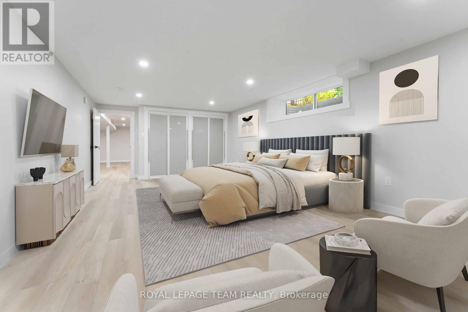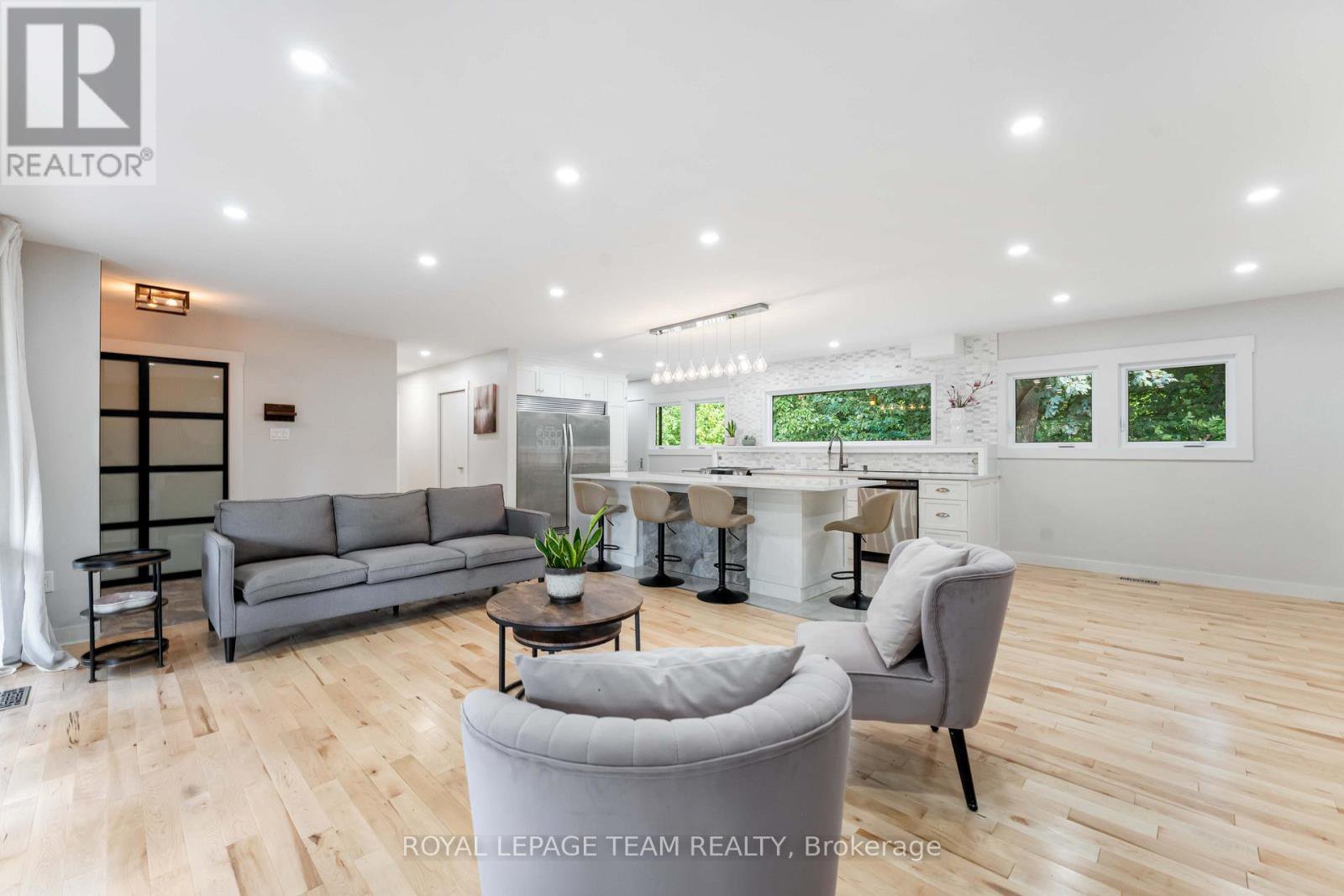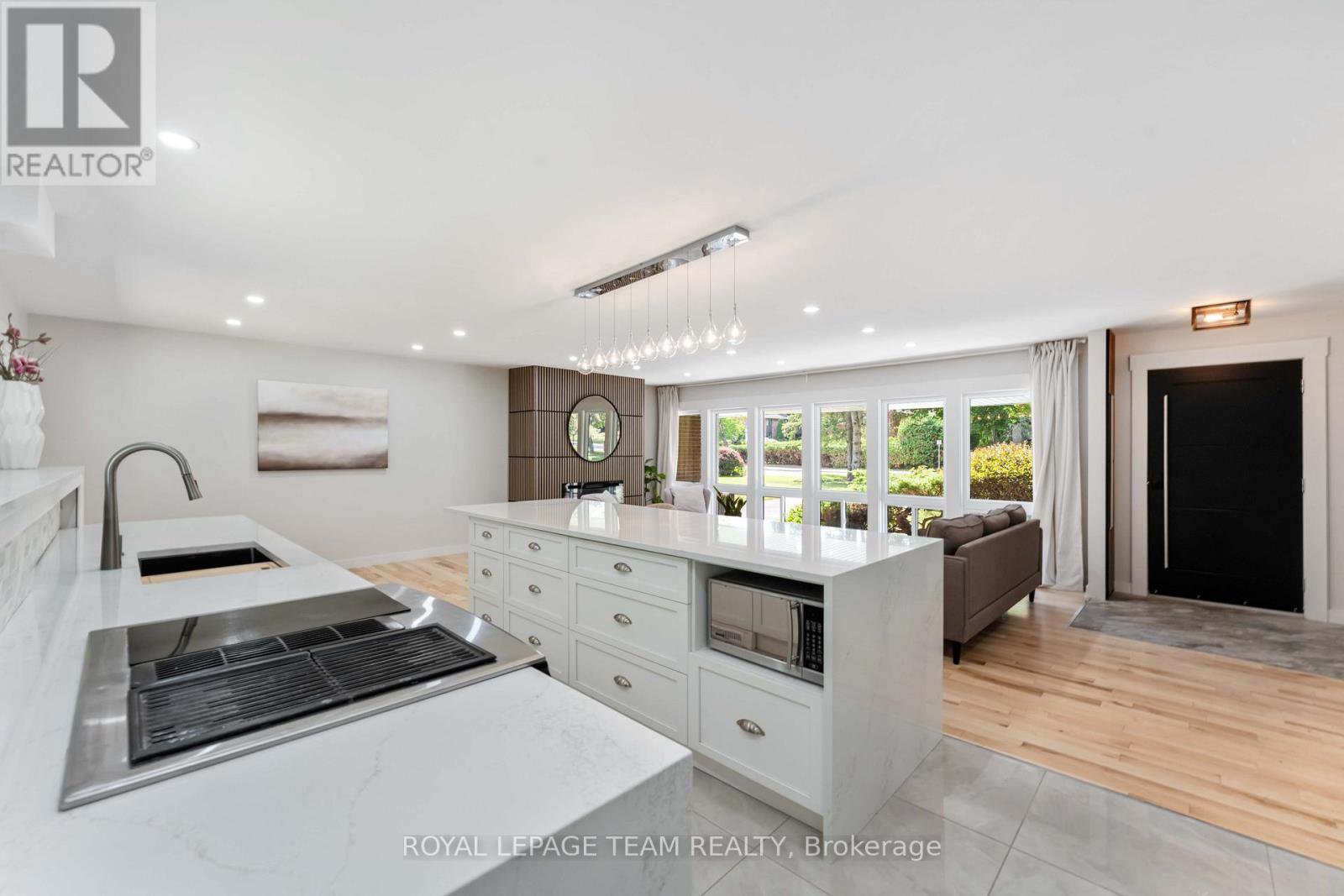 Renovated, refined, and perfectly placed on a private treed lot w/no rear neighbors! This exceptional bungalow backs onto peaceful parkland in the heart of Beaverbrook-one of Kanata's most sought-after enclaves known for its treed streets, top schools, and unbeatable walkability. Offering over 2,300 sq ft of beautifully finished living space, this home has been completely transformed with modern style and thoughtful design throughout. The warm open-concept main floor features new maple hardwood, designer tile, fresh paint, new windows, and an easy natural flow. At the centre of the home sits a showpiece kitchen with a breathtaking picture window framing the stunning treed backdrop, complemented by quartz waterfall counters and sleek new cabinetry. The main level also includes convenient laundry, a bright living room with a LED feature electric fireplace, chic updated bathrooms, ensuite bath, and three comfortable bedrooms with generous closets. The lower level offers exceptional flexibility with in-law suite or rental potential. Complete with a kitchenette, 3pc bathroom, a massive 23' bedroom with double closets, rough-in for laundry, new luxury vinyl plank flooring, a large storage room, and direct access to the private backyard-ideal for multi-generational living or guests. Outside, enjoy a peaceful yard with no rear neighbours, backing directly onto mature trees with access to Gow Park and Stephen Leacock School. Perfect for summer BBQs, playtime, or quiet evenings surrounded by nature. All of this in Beaverbrook- home to top-rated schools, scenic walking paths, community pools, tennis courts, the Kanata Leisure Centre, lush parks, nearby transit, and quick access to the Kanata high-tech hub, Kanata Centrum, and the future LRT. Immediate possession available. Renovated bungalows in settings like this are rarely offered. A must-see.