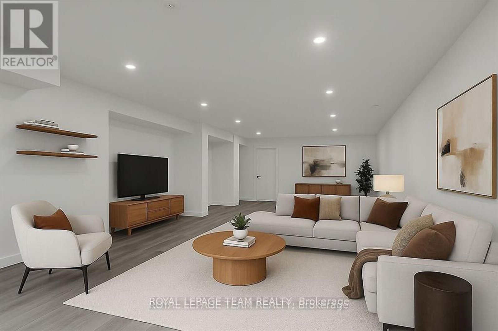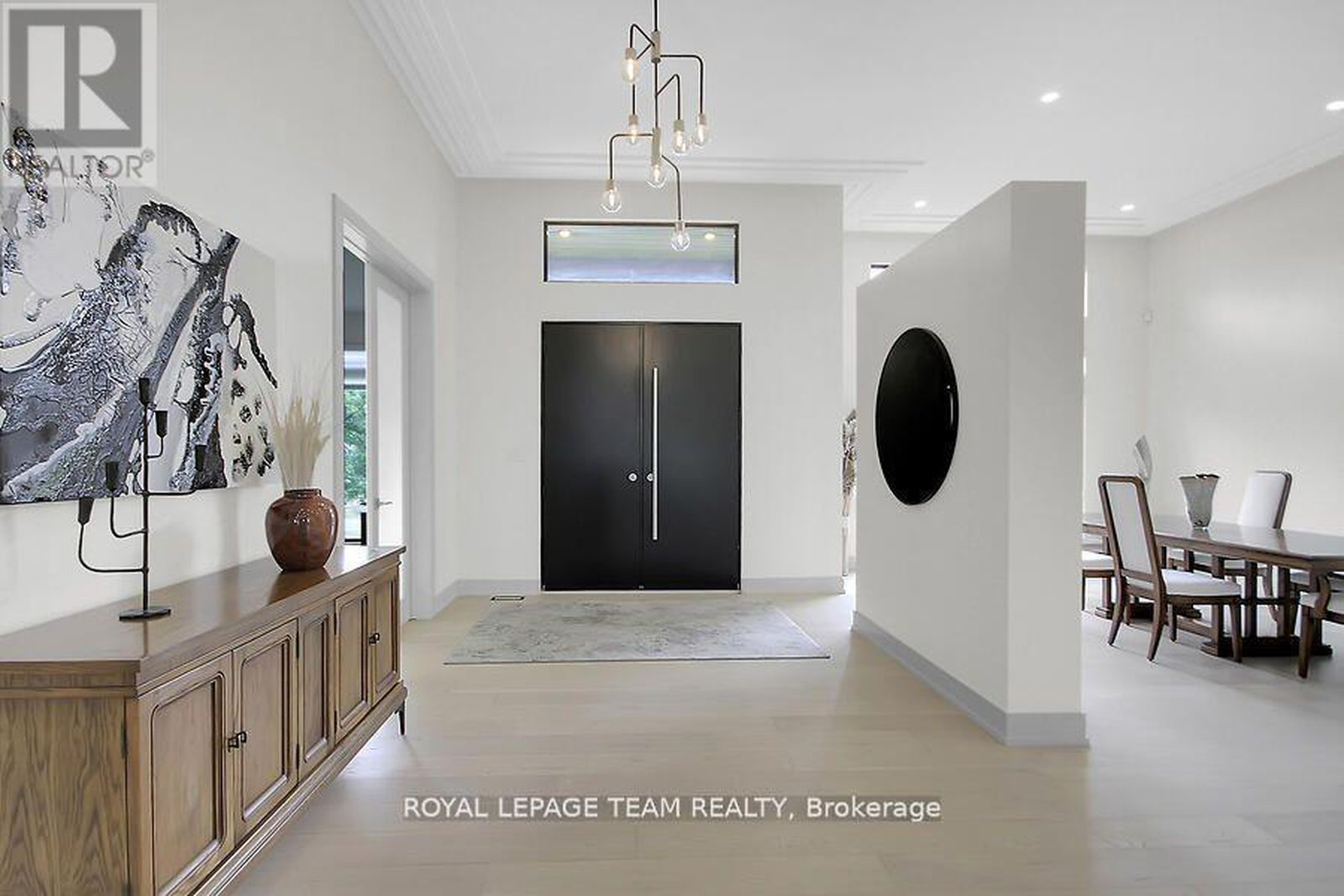 This expansive custom-built bungalow offers 6 bedrooms and 5 bathrooms, showcasing elegant wide plank oak hardwood flooring, oversized windows, and exquisite craftsmanship throughout. Designed with modern living in mind, the open-concept layout welcomes you through a stylish foyer into a grand living room that seamlessly extends to a covered veranda, complete with a cozy wood-burning fireplace. The chef-inspired kitchen is a true centrepiece, featuring a stunning waterfall quartz island with generous seating, quartz backsplash, gas cooktop, and a bright breakfast nook perfectly complemented by a separate formal dining room for more refined gatherings.The luxurious primary suite is a private retreat, boasting a spacious walk-in closet with custom vanity, a 5-piece ensuite with double sinks, a glass-enclosed shower, freestanding soaker tub, and a gas fireplace for added comfort. Three additional bedrooms are located on the main floor, two of which offer private en-suites. The fully finished lower level features heated floors throughout, three large bedrooms, a full bathroom, and a vast recreational space with endless potential for entertainment or relaxation. Additional highlights include a heated 3-car attached garage with soaring 20-ft ceilings and a fully integrated smart home system with wireless control and state-of-the-art 5-zone wireless speakers. Please note that lower level rooms have been virtually staged.