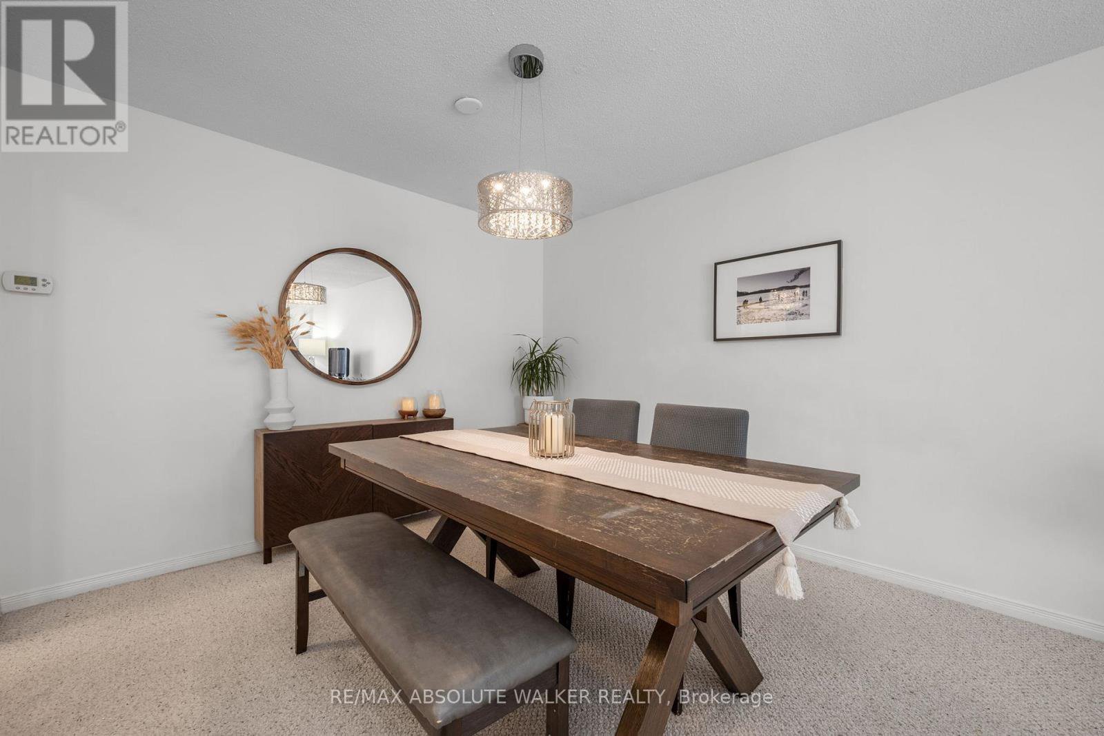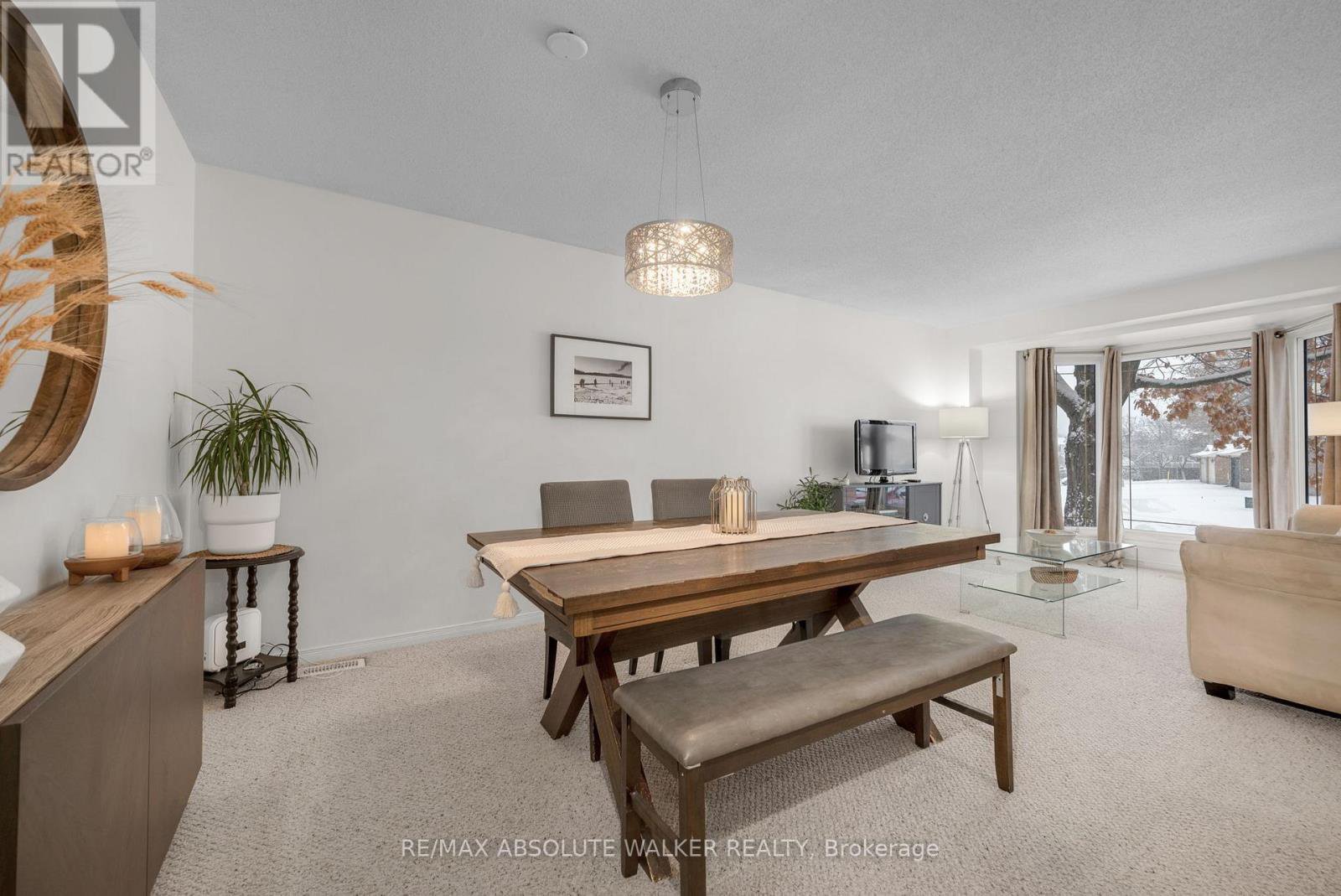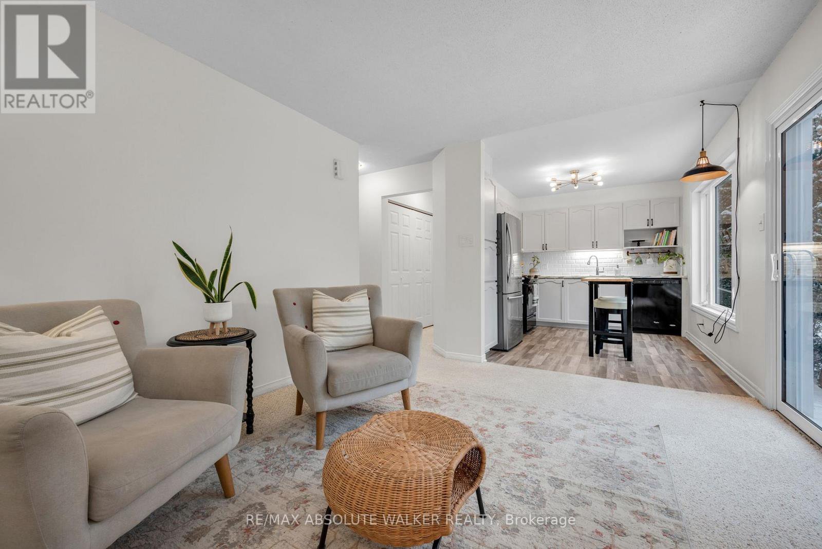 Welcome to 1973 Crestmont Place and Discover the perfect blend of comfort and style in this beautiful end-unit carriage home, ideally situated in the highly sought-after Chapel Hill community. This charming three-bedroom boasts a spacious and functional layout, perfect for modern living.As you enter, you'll be greeted by a bright and airy living and dining area, designed to accommodate large family gatherings and entertaining with ease. The kitchen has been tastefully updated with stylish new fixtures, elegant subway tile, modern countertops and flooring, making it a delightful space for culinary creativity. There is also an additional pantry for extra storage space. One of the standout features of this home is the family room, complete with a cozy wood-burning fireplace, perfect for those chilly evenings. This versatile space could easily serve as an additional dining area or a sitting area. Patio doors provide access to the private backyard, ideal for outdoor living and entertaining.Head upstairs to discover three generously sized bedrooms, including a spacious primary suite that comfortably fits a king-sized bed and boasts a private ensuite bathroom and walk-in closet. An additional full bathroom serves the other two bedrooms, providing convenience and comfort for family and guests.The finished lower level offers extra living space, featuring a cozy TV room and a designated office area, making it ideal for work or leisure. There's also ample storage available for your seasonal items and home essentials. Don't miss out on this opportunity!