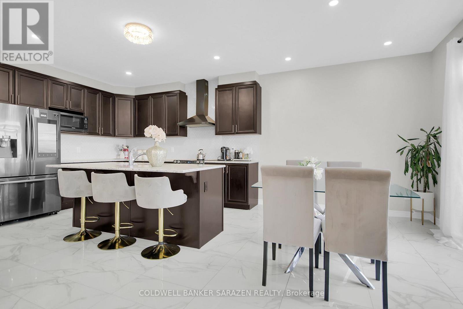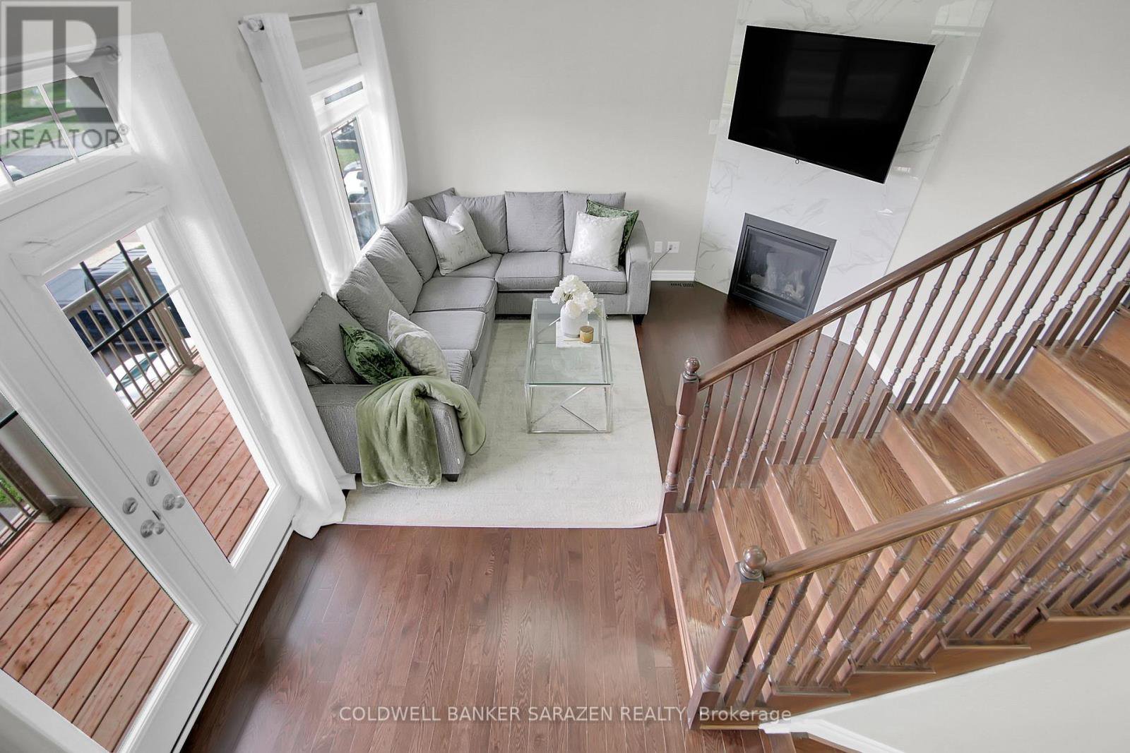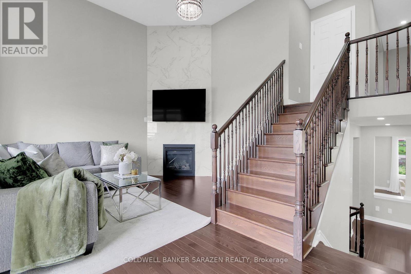 This STUNNING, IMPECCABLY FINISHED, & SPOTLESS 4-bedroom home offers tremendous living & entertaining space for all. The sun-filled main level is an entertainer's dream, w/ thoughtfully designed spaces & a breezy flow between rooms. The open-concept kitchen features premium cabinetry, a large island, lovely quartz countertops, and an adjacent casual dining area w/ patio door access to the spacious backyard. The kitchen flows seamlessly to the sun-filled formal living & dining rooms, a convenient 2-pc bath, & inviting foyer. A short staircase leads to the family room - a cozy space w/ a welcoming vibe, gas fireplace, & access to the private, covered balcony for stargazing or enjoying front yard views. The bedrooms upstairs include a fabulous principal retreat w/ full ensuite & walk-in closet; three additional bedrooms & a full family bath complete the space. Enjoy quality wood & tiled flooring along with a fresh, neutral paint palette & tasteful fixtures/finishes up & down. Additional highlights include a two-car garage w/ access to the foyer, driveway parking for 4 cars, & a fully fenced & private backyard. The basement is partly finished w/ a laundry room & unfinished area to develop according to your needs. The impressive 14-foot basement ceilings can accommodate plenty of options - home gym, office, playroom, recreation, in-law suite or secondary unit - the possibilities are endless. The property faces a park/conservation area, where you can access greenspace for a range of outdoor activities. Minutes from top-rated schools, parks, & all amenities, including shops, dining, & entertainment. Call to view this beautiful home!
