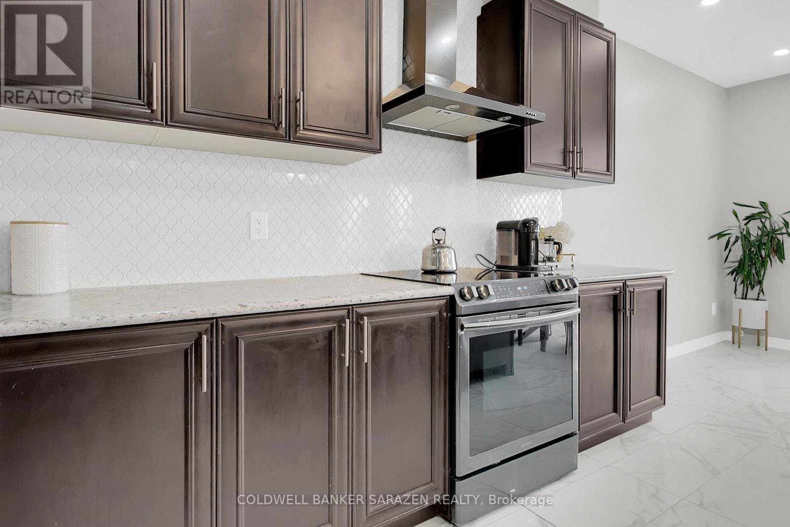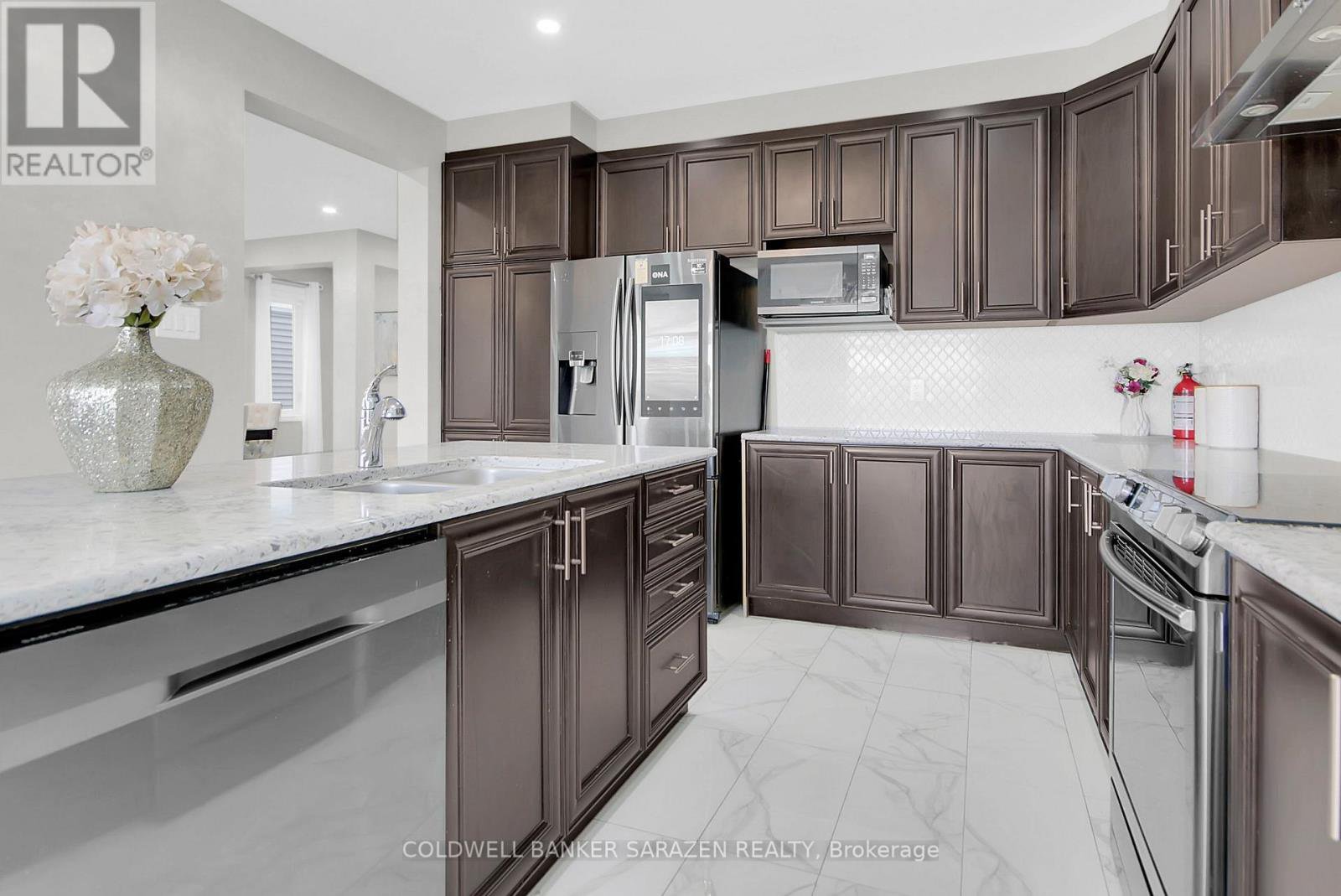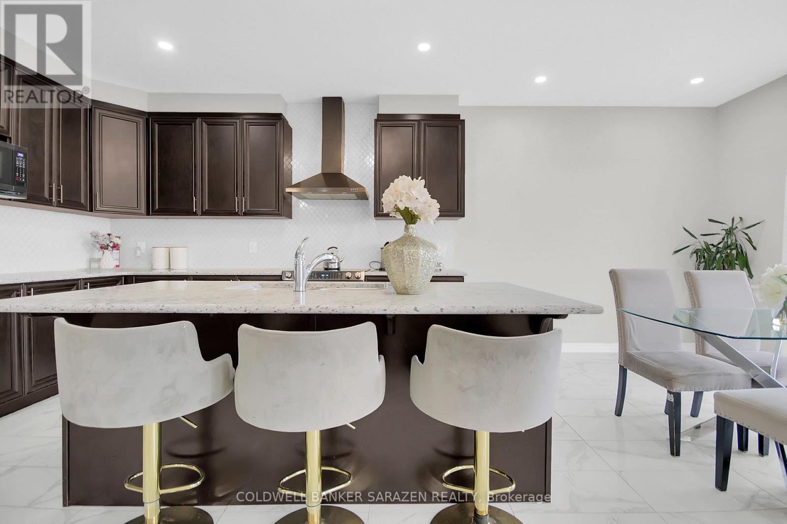 This STUNNING, IMPECCABLY FINISHED, & SPOTLESS 4-bedroom home offers tremendous living & entertaining space for all. The sun-filled main level is an entertainer's dream, w/ thoughtfully designed spaces & a breezy flow between rooms. The open-concept kitchen features premium cabinetry, a large island, lovely quartz countertops, and an adjacent casual dining area w/ patio door access to the spacious backyard. The kitchen flows seamlessly to the sun-filled formal living & dining rooms, a convenient 2-pc bath, & inviting foyer. A short staircase leads to the family room - a cozy space w/ a welcoming vibe, gas fireplace, & access to the private, covered balcony for stargazing or enjoying front yard views. The bedrooms upstairs include a fabulous principal retreat w/ full ensuite & walk-in closet; three additional bedrooms & a full family bath complete the space. Enjoy quality wood & tiled flooring along with a fresh, neutral paint palette & tasteful fixtures/finishes up & down. Additional highlights include a two-car garage w/ access to the foyer, driveway parking for 4 cars, & a fully fenced & private backyard. The basement is partly finished w/ a laundry room & unfinished area to develop according to your needs. The impressive 14-foot basement ceilings can accommodate plenty of options - home gym, office, playroom, recreation, in-law suite or secondary unit - the possibilities are endless. The property faces a park/conservation area, where you can access greenspace for a range of outdoor activities. Minutes from top-rated schools, parks, & all amenities, including shops, dining, & entertainment. Call to view this beautiful home!