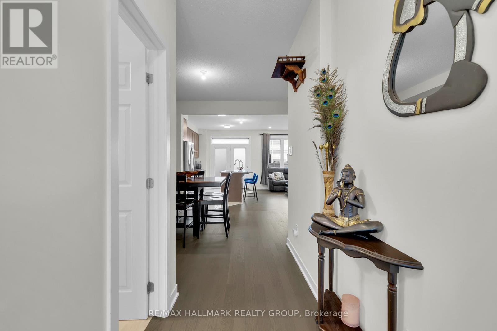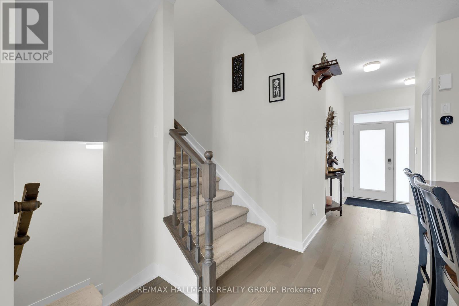 Welcome to this beautiful 3-bed, 4-bath townhouse, ideally situated just minutes from Kanata's tech hub, central Stittsville, and the Trans-Canada Highway/Queensway. The open-concept main floor features 9 ft ceilings, abundant natural light, and a smart layout with a foyer closet and conveniently located powder room near the inside entry. The kitchen is thoughtfully upgraded with quartz countertops, stainless steel appliances, a stainless steel undermount hood fan, tall upper cabinets, and an upgraded faucet. The living and dining area offers hardwood flooring, pot lights throughout, a beautiful fireplace, and direct access to the backyard. Upstairs, you'll find a spacious primary bedroom with a walk-in closet and a spa-inspired ensuite featuring a walk-in shower. Two additional bedrooms and a full bathroom complete the second level. The fully finished lower level adds even more living space, including a full bathroom, large windows, and ample storage. The neighbourhood surrounding 1076 Curraglass Walk offers a wide selection of schools, parks, and restaurants. The Canadian Tire Centre and Tanger Outlets Ottawa are just minutes away-and even within walking distance. This home is a fantastic choice for outdoor enthusiasts, shoppers, professionals, and pet lovers alike.