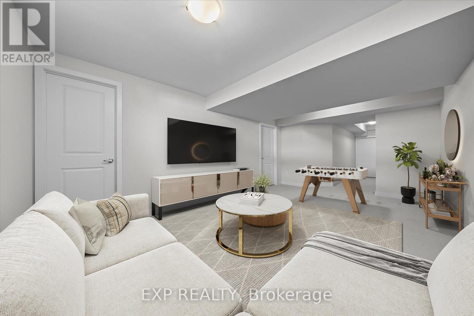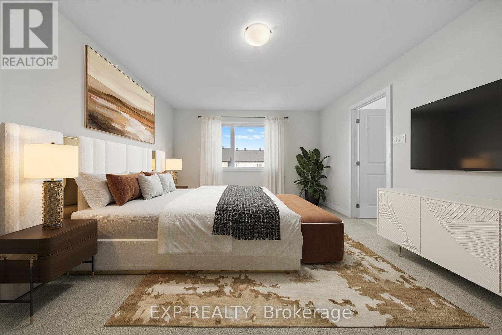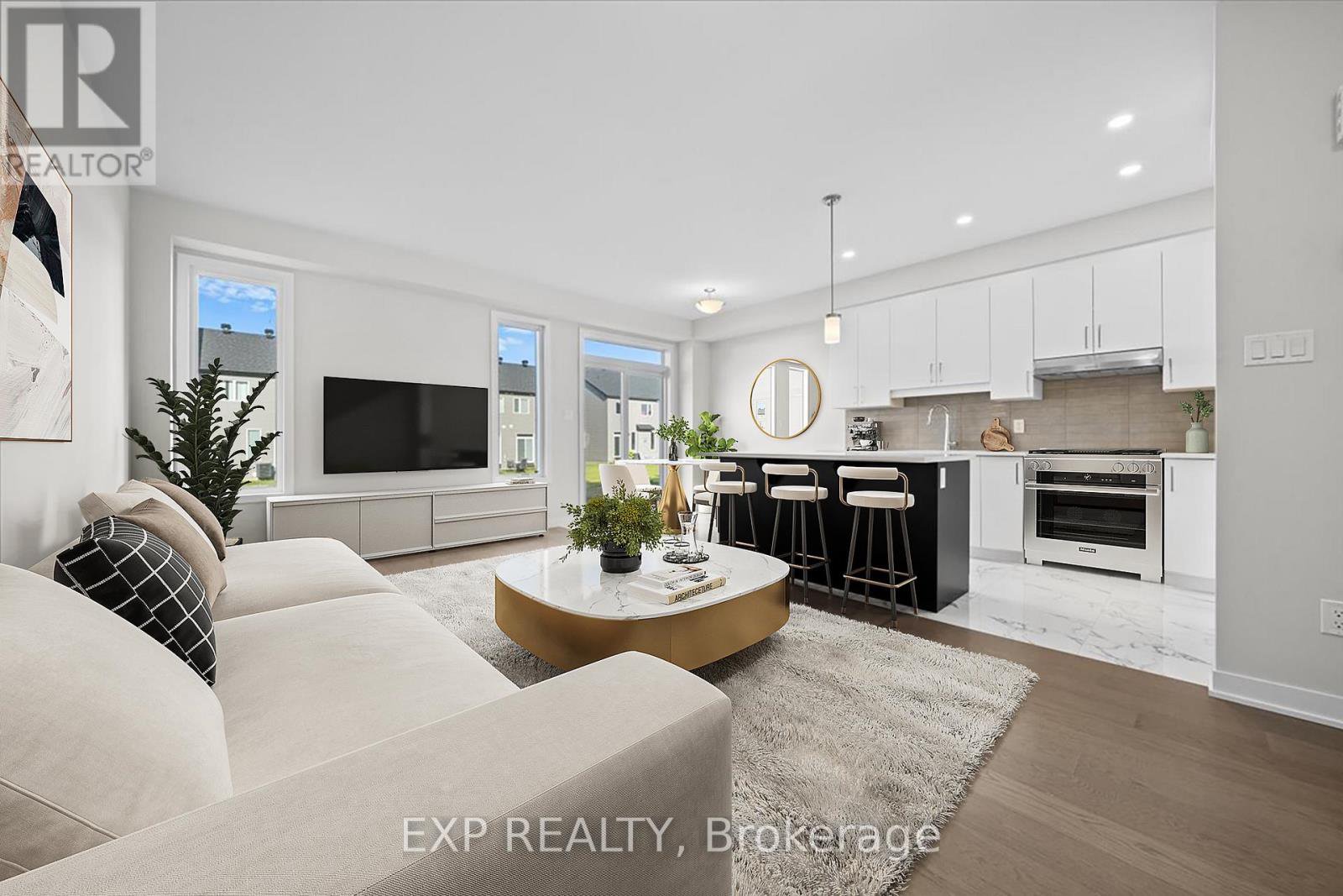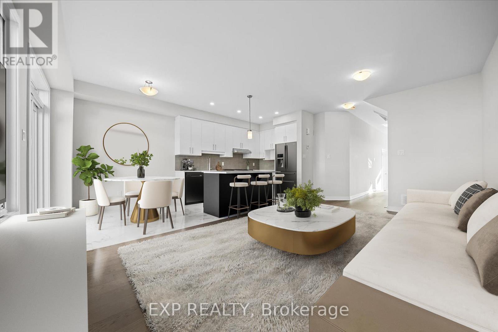 Move-In Ready! Be the first to live in this BRAND NEW Aquamarine B model LUXURY townhome by Mattino Developments (1816 sqft) in highly sought after Diamondview Estates. Fabulously deep lot approx 124 feet! Featuring over $50,000 in upgrades including engineered wide plan oak flooring at main floor hall, living and dining areas, upgraded cabinetry in kitchen and baths with soft close doors and drawers, quartz countertops for all kitchen and baths, enlarged basement window, added pot lights in kitchen, smooth ceilings in all finished areas, modern oak railings and posts with black iron spindles, and air conditioner. The main level boasts an inviting open-concept layout. The kitchen features ample cabinet/counter space and a convenient breakfast nook bathed in natural light. Primary bedroom offers a spa-like ensuite w/a walk-in shower, soaker tub & walk-in closet ensuring your utmost relaxation and convenience. Two generously-sized bedrooms perfect for family members or guests. A full bath & a dedicated laundry room for added convenience. Lower level w/family room providing additional space for recreation or relaxation. Association fee covers: Common Area Maintenance/Management Fee. Images provided are to showcase builder finishes. Quick Occupancy available!