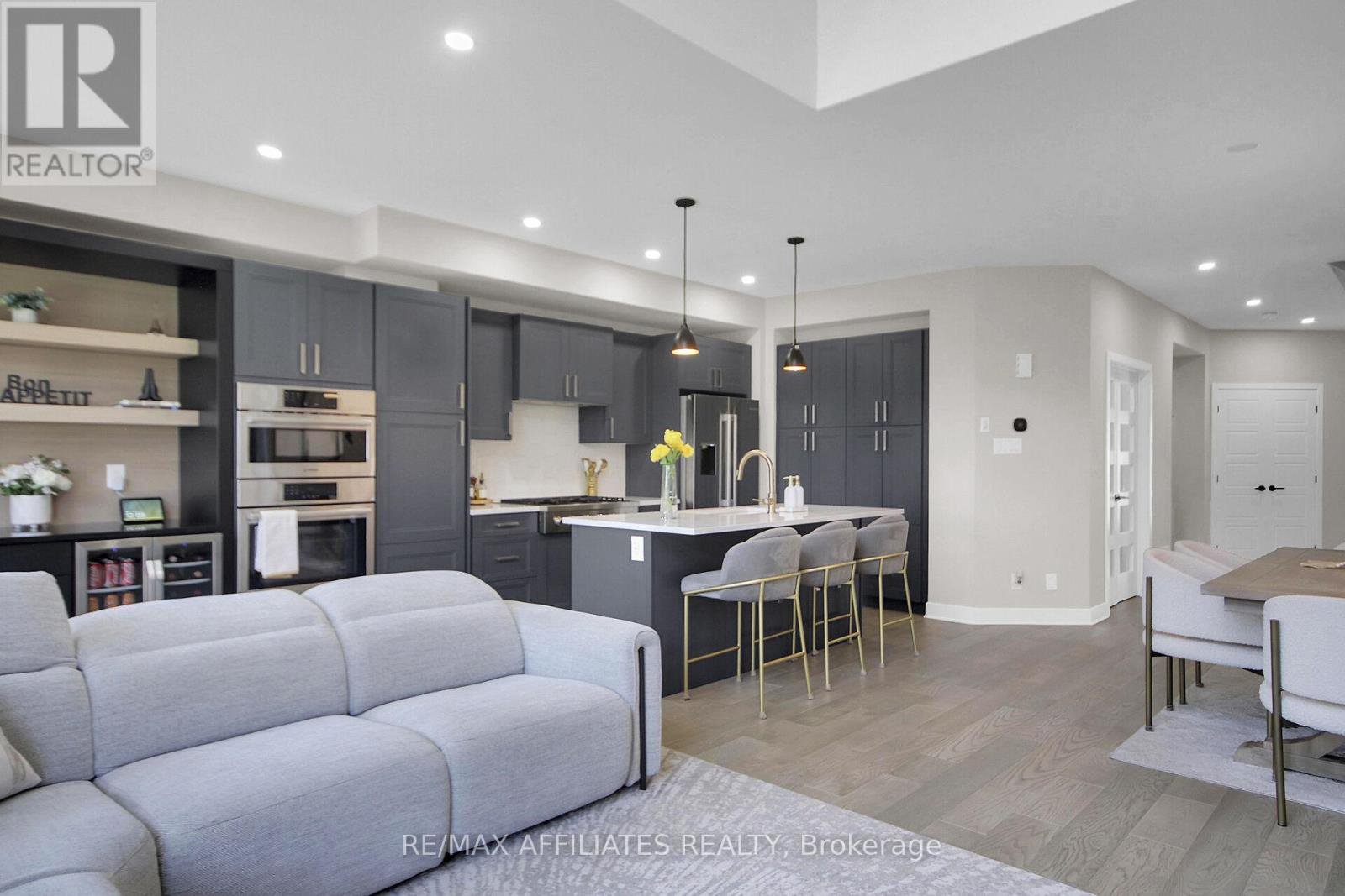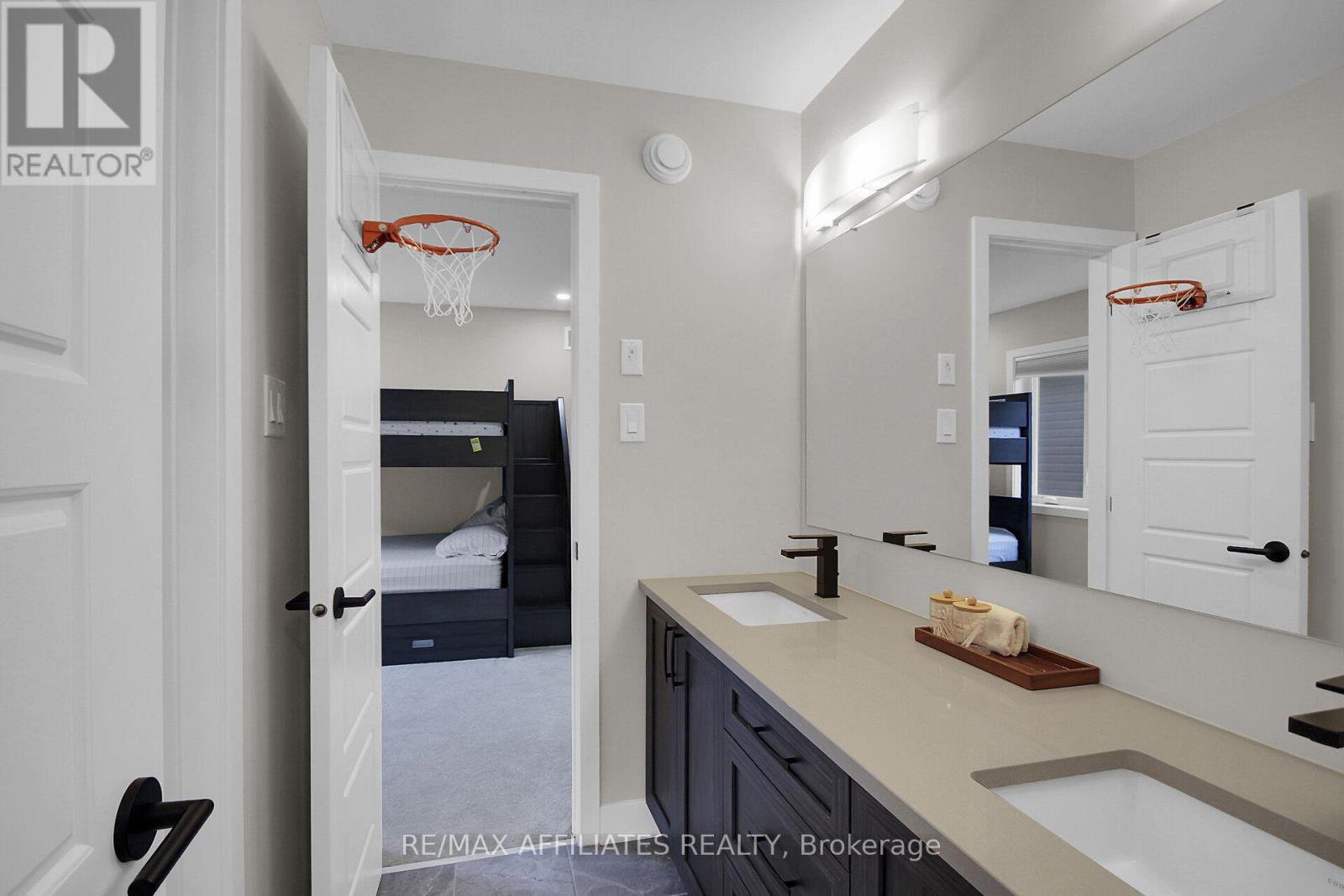 Showstopper Alert! Step into luxury with this stunning Urbandale-built 4-bedroom, 4-bathroom home (2023) located in the highly sought-after community of Riverside South. Every detail has been thoughtfully curated with no expense spared! The main level features wide plank hardwood flooring, 9-foot ceilings, sleek pot lights, and a functional mudroom. A bright and spacious den offers the perfect work-from-home setup. The custom chefs kitchen is an entertainers dream showcasing a large quartz island, upgraded cabinetry with elegant gold hardware, and top-of-the-line Bosch appliances, including a gas cooktop and built-in oven/microwave combo. A stylish two-tone beverage station completes the open-concept layout, ideal for hosting. The great room impresses with soaring two-storey ceilings, expansive windows flooding the space with natural light, and a cozy gas fireplace for ultimate comfort. Upstairs, hardwood stairs lead to a luxurious retreat. The primary suite features oversized windows, a walk-in closet with custom built-ins, and a spa-like ensuite complete with a glass shower and standalone tub. The second level also offers two additional bedrooms with a shared 5-piece Jack & Jill bathroom, a versatile loft space, and a spacious laundry room for added convenience. The fully finished lower level adds even more living space with a large family room, fourth bedroom, and full bathroom perfect for guests or extended family. This home truly stands out from the rest elegant, functional, and move-in ready. Love technology? This home also features WIFI enabled appliances, ring doorbell, wired for security camera in front and at the rear and automated controlled blinds. Don't miss your opportunity to make it yours!
