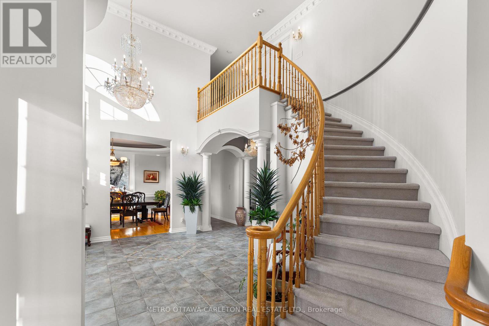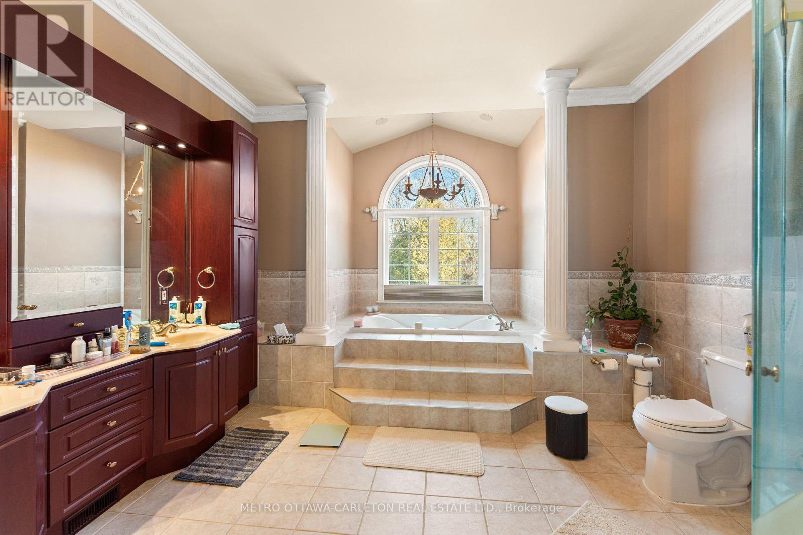 Flooring: Carpet Over & Wood. Stunning 4 Bedroom, 5 bathroom home on 2 acres in prestigious Camelot Estates is a rare blend of country living and convenience. Only 4 minute drive to nearest LRT Station on Trim Road.+- 7000 sq ft of living space. Main level has grand entrance, soaring ceilings, formal dining with coffered ceiling. Cozy living & family room with views to backyard. A large chef's kitchen equipped with a spacious eating area. Main floor primary bedroom offers a serene sitting area, cozy fireplace, spacious walk-in closet & luxurious ensuite. Upstairs discover a full bath & three generously sized bedrooms; one with new ensuite bathroom and another with a beautiful bay window overlooking the immaculate backyard. featuring a lower level with ample living areas, bar area, full bath.