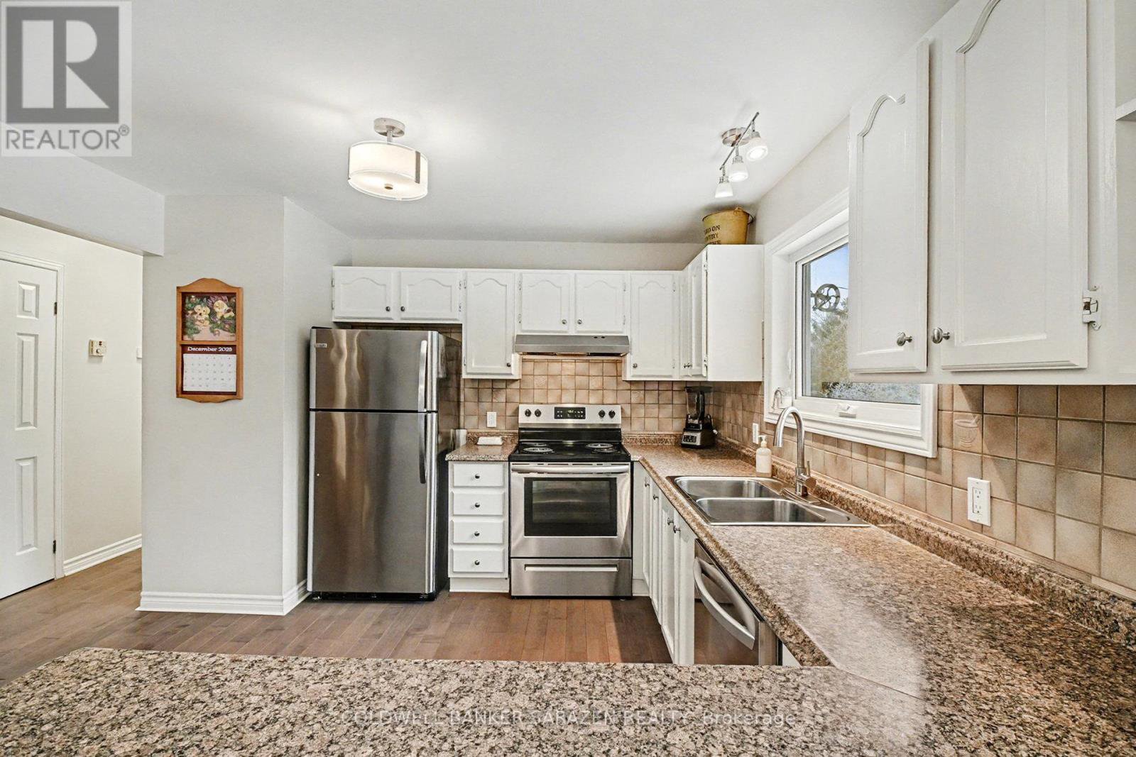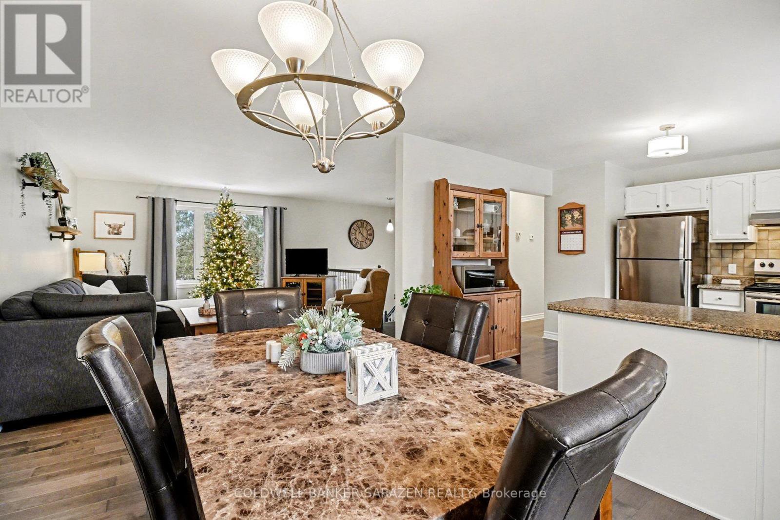 Nestled on a quiet street in the small town of Kenmore, this lovely brick high ranch bungalow is turnkey and ready for new ownership. Step onto the new asphalt driveway and up the landscaped walkway into your new home. The bright main level boasts rich hardwood floors, a large living and dining room area and a spacious kitchen with neutral white cabinetry and plenty of counterspace. Down the hall the Primary bedroom features a 3pc ensuite and closet, two large secondary bedrooms and a 4pc bathroom complete the main level. The lower level offers a spacious rec room with a propane fireplace, perfect as a secondary living room for entertaining guests. There is no shortage of storage space between the laundry room and furnace room, reimagine either room as a workshop or exercise area. There is the potential to create another bedroom there as well. Take in the rising sun on your mornings on the large rear deck overlooking the backyard and new shed. Don't miss this opportunity, reach out and book a viewing today! Asphalt Laneway (2025), Dishwasher - 2024, Furnace & A/C - 2023, Shed 12'x20' (2022), Hardwood flooring (2021), Garage door (2021), HRV System (2021), Well pump/pressure tank/sediment filter (2021), Septic Lids - 2021, HWT - 2019. Roof & Windows - 2012. Septic and well are original. Septic was pumped in 2021. Open House - Sunday 12pm-1:45pm