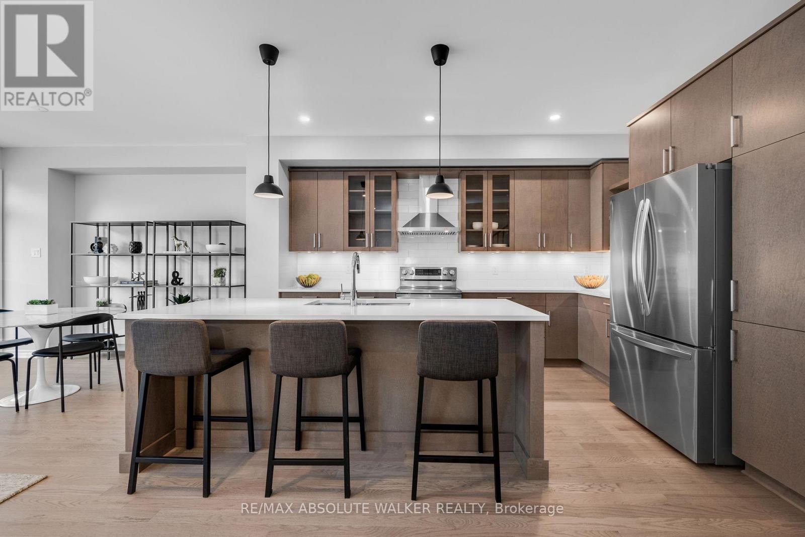 Elevate Your Lifestyle in Findlay Creek! Discover exceptional craftsmanship and modern elegance in this newly built, move-in ready Samira (Rev) interior townhome by Tamarack Homes. Thoughtfully designed with 2,105 sq.ft. and beautifully upgraded with over $19,000 in premium finishes, this 3 bedroom, 2.5 bathroom home blends style, comfort, and everyday functionality in a truly impressive way. The bright and contemporary main floor is highlighted by 9ft flat ceilings, rich red oak hardwood floors, and a seamless, open-concept layout perfect for both relaxing and entertaining. The upgraded kitchen shines with timeless shaker cabinetry, brushed-nickel hardware, and luxurious Hanstone quartz countertops. Upstairs, retreat to the primary suite featuring a 4-piece ensuite with elevated finishes and a generous walk-in closet. Two additional well-sized bedrooms, a full bathroom, and the convenience of second-floor laundry ensure comfort for the whole family. A finished lower-level family room offers a versatile space for movie nights, a playroom, or whatever best suits your lifestyle. Energy Star certified home with central air conditioning. Perfectly situated in sought-after Findlay Creek just minutes from parks, schools, shopping, transit, the future LRT, the airport, and only a short commute to downtown. Please note: photos shown are of the model home; actual finishes may vary.
