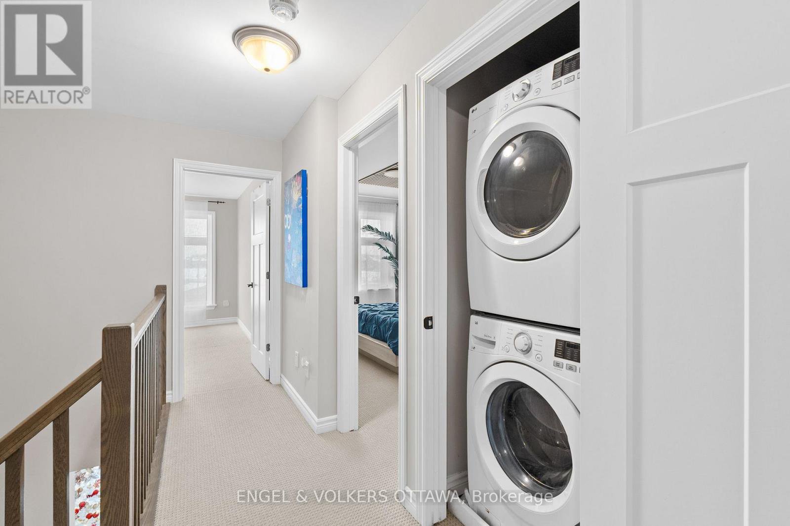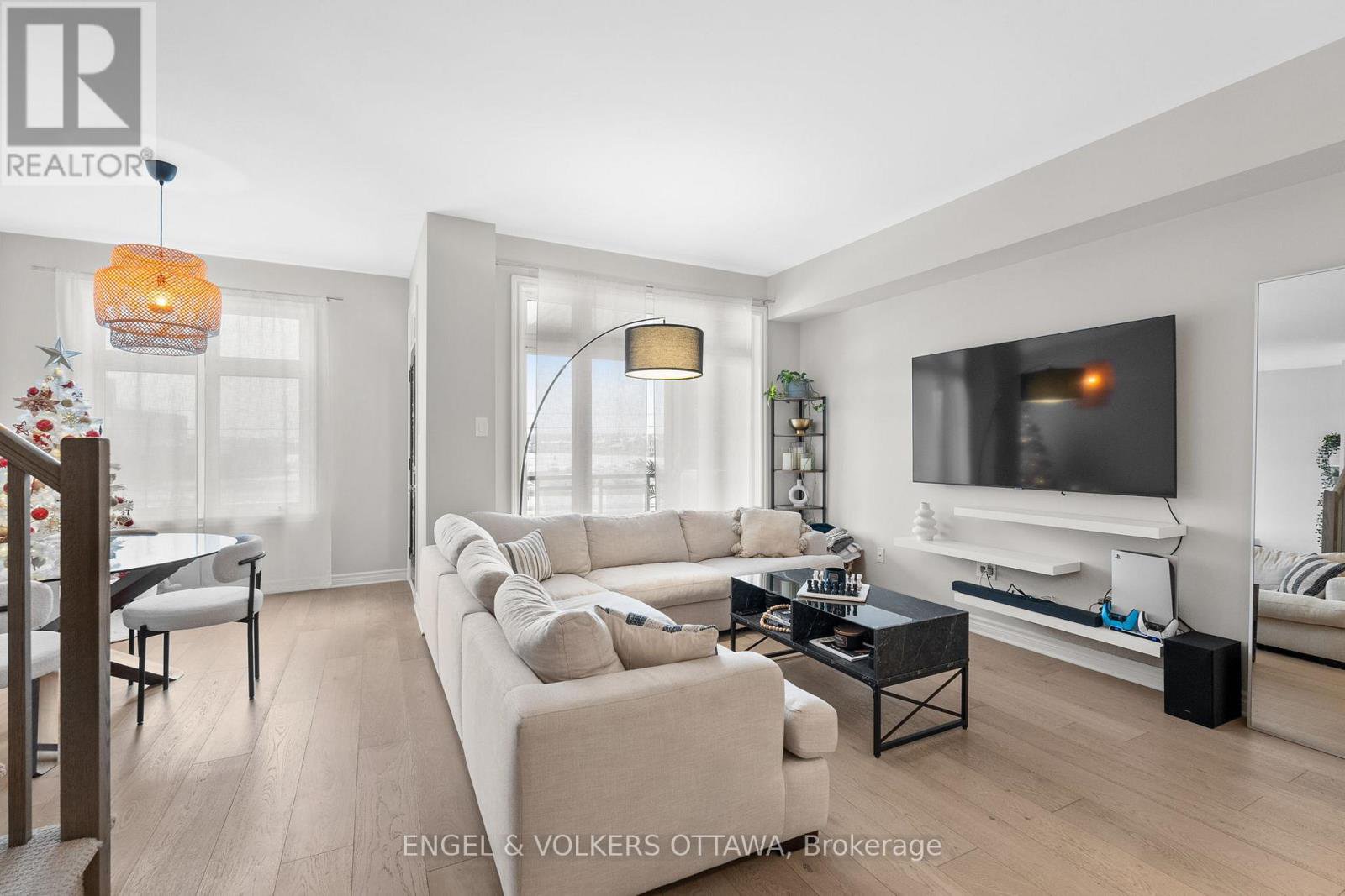 Located in the heart of Riverside South, with NO FRONT NEIGHBOURS - this home offers modern living across three well-designed levels within a vibrant and growing community surrounded by green spaces, trails, and everyday amenities. The entrance welcomes you with neutral tile flooring, double closets, and a den perfect for a home office. The second level is the main living area, featuring an open-concept layout anchored by an upgraded kitchen with soft-grey shaker cabinets, stone countertops, stainless steel appliances, and a centre island. Wide-plank flooring runs through the dining area and into the spacious living room, where large windows and direct balcony access create a bright, luxurious atmosphere. The top floor hosts two well-appointed bedrooms, with the primary suite showcasing a striking feature wall, ample natural light, and a walk-in closet. The versatile second bedroom features a double-door closet and soft carpet, while a laundry closet, den/loft space and shared 4-piece bathroom with a tub/shower, matte-black fixtures, and a wall-to-wall mirror create a convenient, elevated feel. Known for its family-friendly appeal, extensive pathways, neighbourhood parks, and proximity to the Rideau River, Riverside South provides residents with easy access to all the daily amenities they need. Nearby grocery stores, cafés, restaurants, fitness centres, medical services, top-rated schools, and convenient access to major roadways and the expanding OC Transpo network - including the future Trillium LRT extension - make this a highly livable area without the usual hustle and bustle!