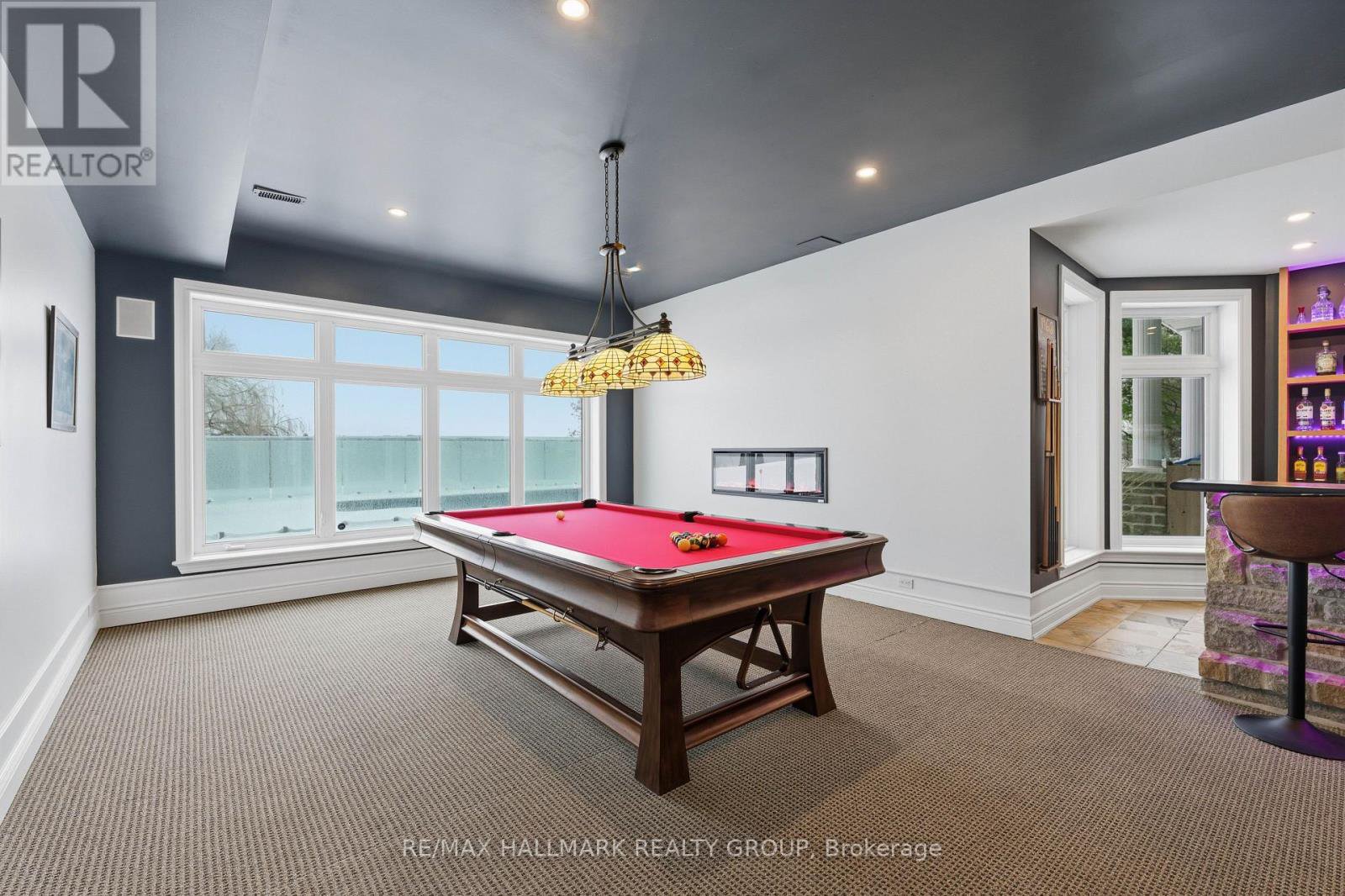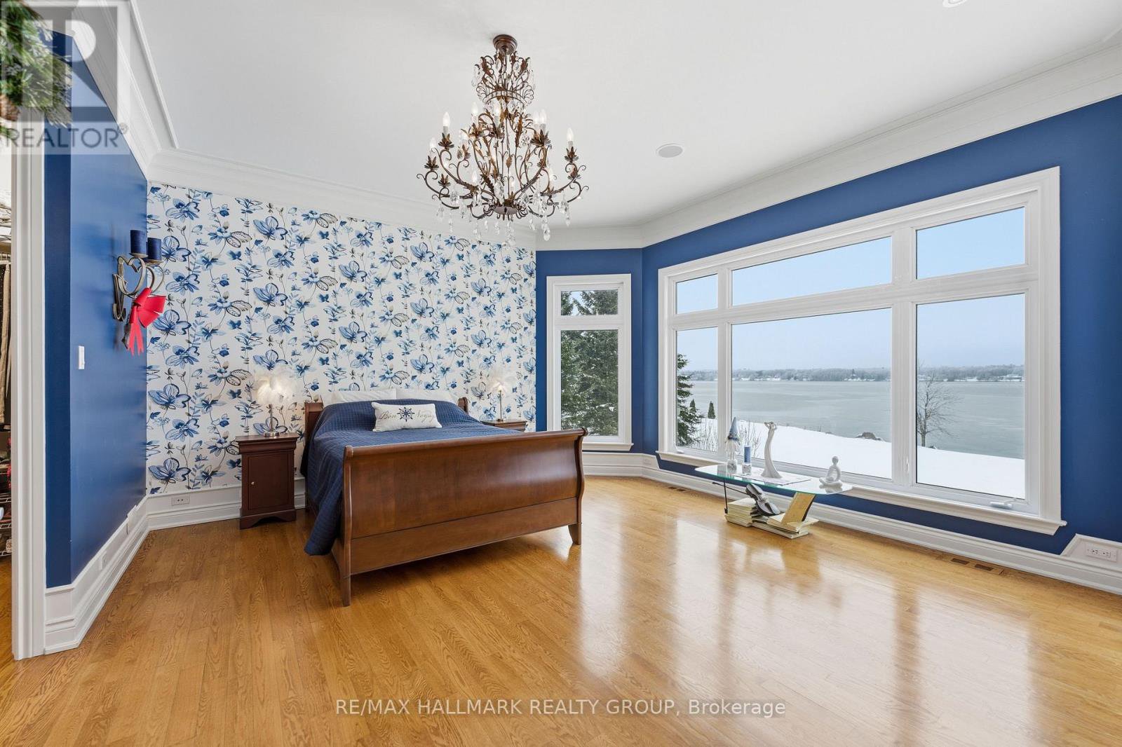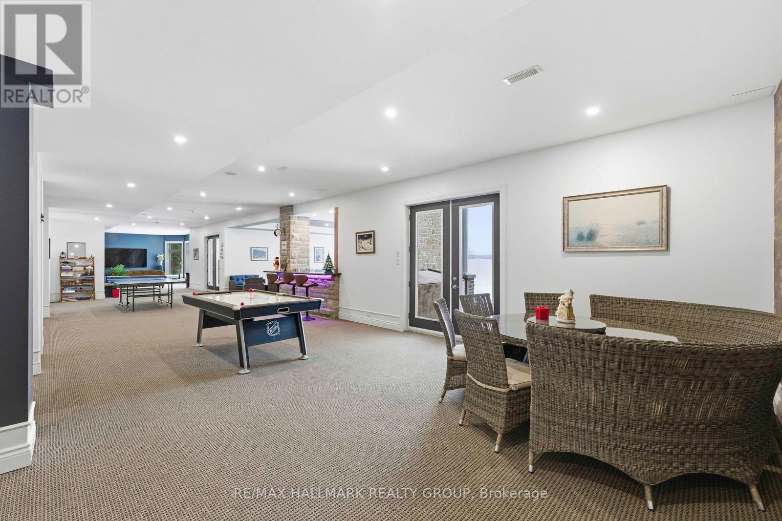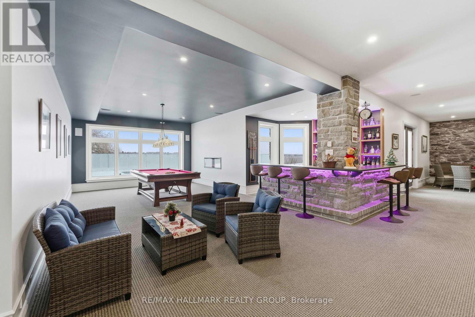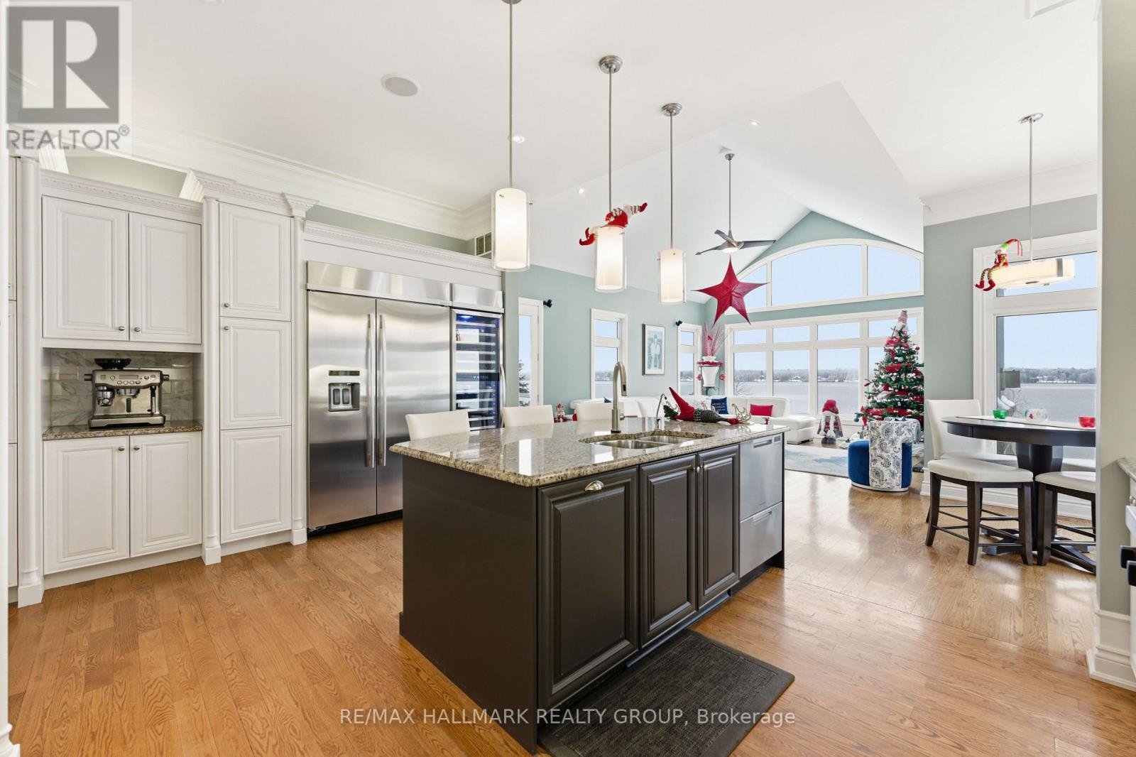 Exclusive executive waterfront estate offering over 200 ft of pristine frontage on the Ottawa River, set in the safest no-flood zone on the entire river. This impressive oversized bungalow spans 3,000+ sq.ft. on the main level, paired with a full 3,000-sq.ft. walkout basement, doubling your living space and maximizing breathtaking views.A newly installed in-ground pool, a large triple garage, and exceptional indoor-outdoor flow elevate the lifestyle offered here. Inside, every detail speaks luxury: 10-ft ceilings on both levels, abundant natural light, and a rare layout where each of the 3 main-floor bedrooms includes its own private ensuite.Upon entry, a spacious executive office sets the tone. The living room, kitchen, dinette, den, primary suite, and secondary bedroom all enjoy panoramic river views. The walkout level continues the experience with water-facing family room, game room, and home theatre, creating an entertainer's dream.A truly unmatched property for those seeking space, privacy, elegance, and unforgettable waterfront living.
