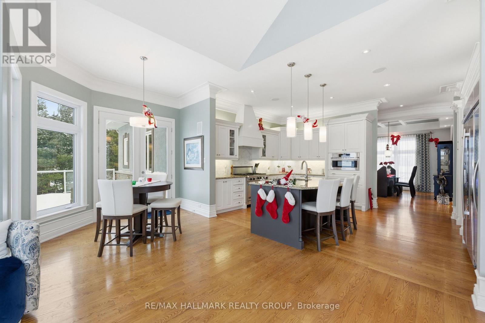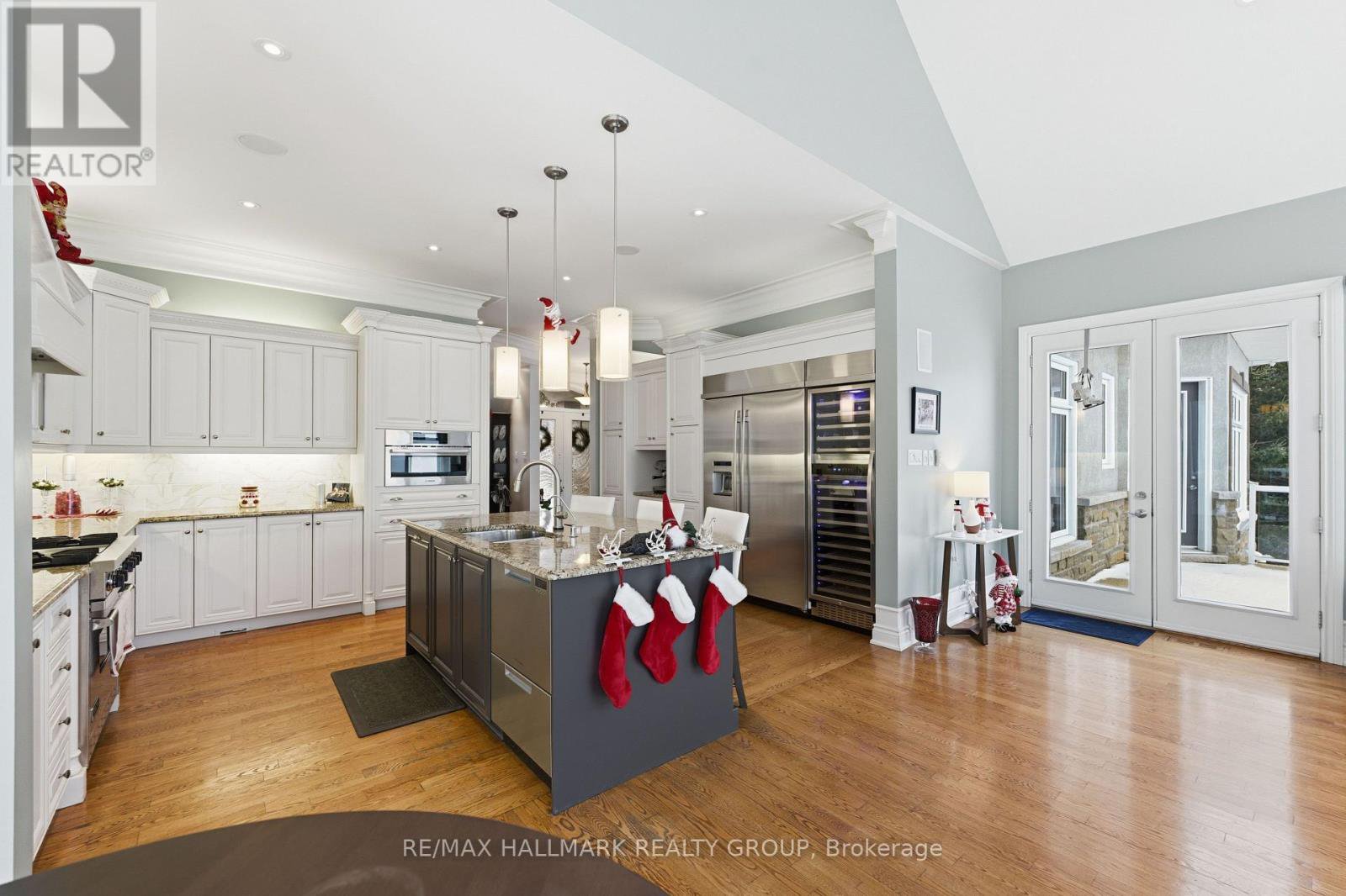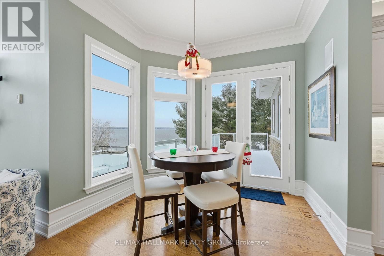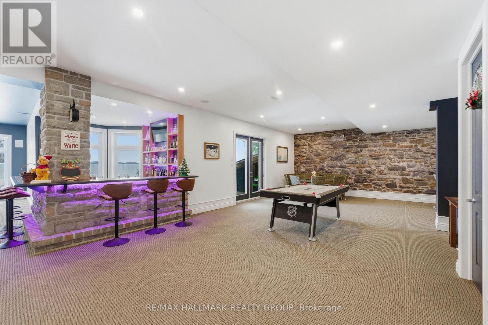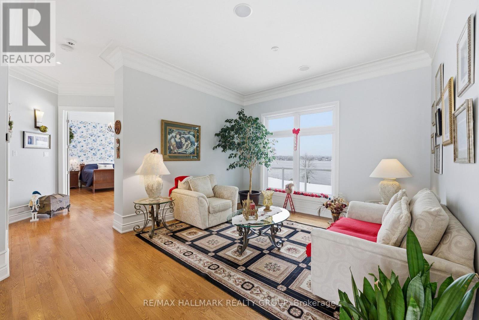Exclusive executive waterfront estate offering over 200 ft of pristine frontage on the Ottawa River, set in the safest no-flood zone on the entire river. This impressive oversized bungalow spans 3,000+ sq.ft. on the main level, paired with a full 3,000-sq.ft. walkout basement, doubling your living space and maximizing breathtaking views.A newly installed in-ground pool, a large triple garage, and exceptional indoor-outdoor flow elevate the lifestyle offered here. Inside, every detail speaks luxury: 10-ft ceilings on both levels, abundant natural light, and a rare layout where each of the 3 main-floor bedrooms includes its own private ensuite.Upon entry, a spacious executive office sets the tone. The living room, kitchen, dinette, den, primary suite, and secondary bedroom all enjoy panoramic river views. The walkout level continues the experience with water-facing family room, game room, and home theatre, creating an entertainer's dream.A truly unmatched property for those seeking space, privacy, elegance, and unforgettable waterfront living.