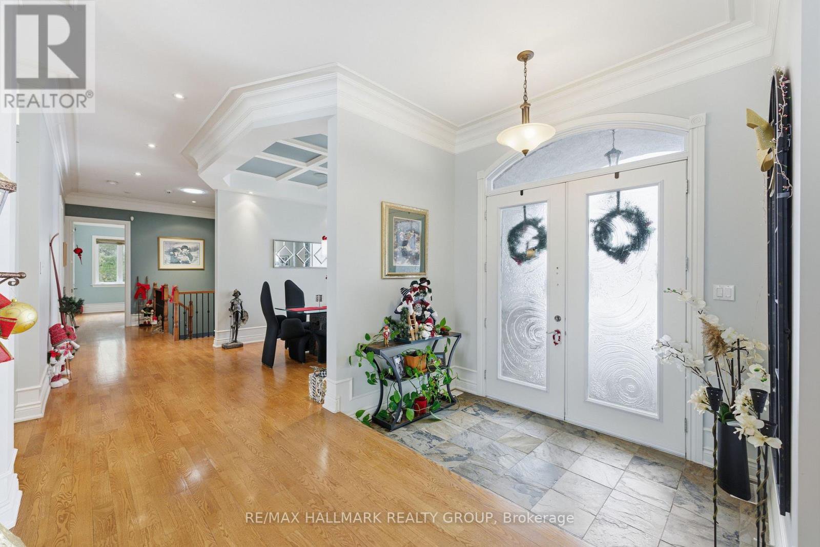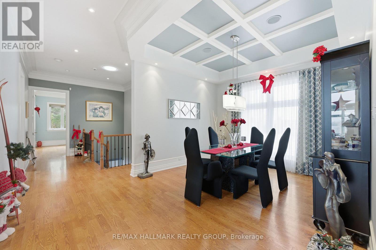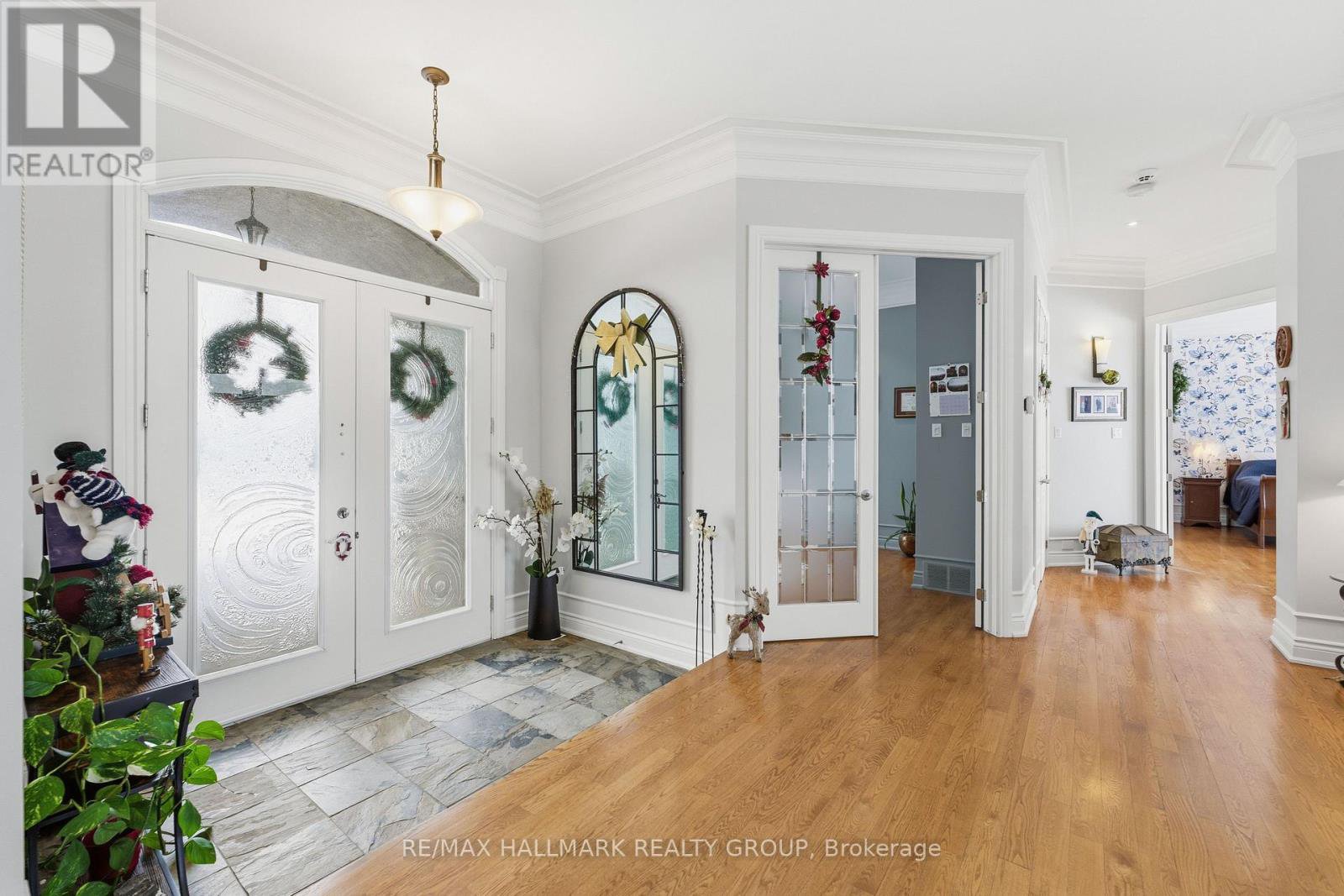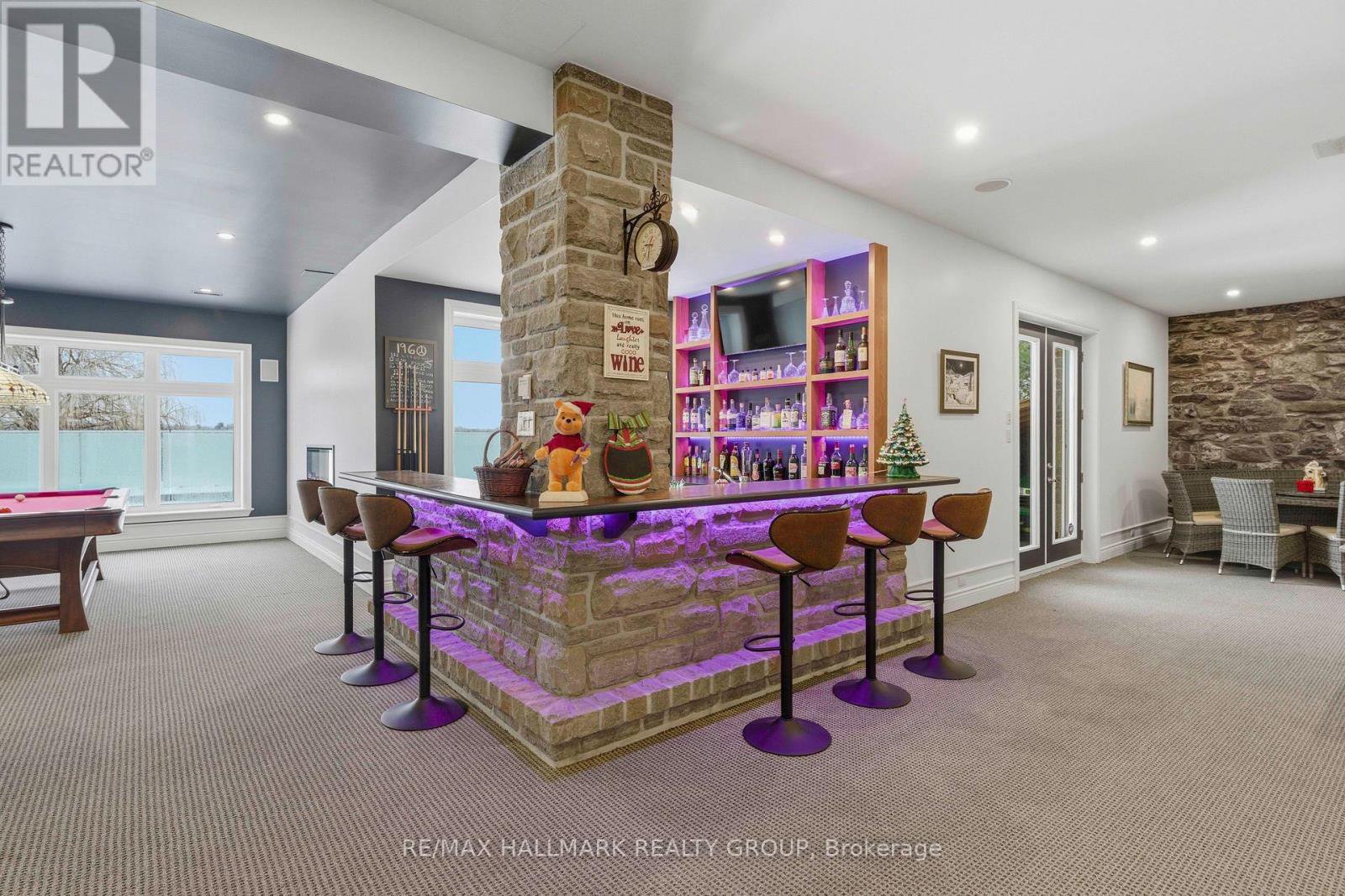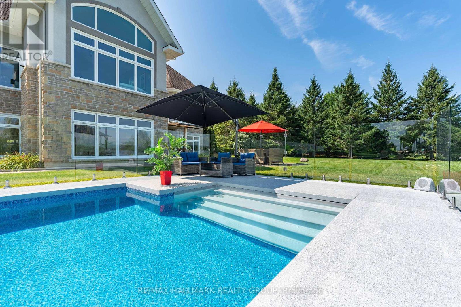 Exclusive executive waterfront estate offering over 200 ft of pristine frontage on the Ottawa River, set in the safest no-flood zone on the entire river. This impressive oversized bungalow spans 3,000+ sq.ft. on the main level, paired with a full 3,000-sq.ft. walkout basement, doubling your living space and maximizing breathtaking views.A newly installed in-ground pool, a large triple garage, and exceptional indoor-outdoor flow elevate the lifestyle offered here. Inside, every detail speaks luxury: 10-ft ceilings on both levels, abundant natural light, and a rare layout where each of the 3 main-floor bedrooms includes its own private ensuite.Upon entry, a spacious executive office sets the tone. The living room, kitchen, dinette, den, primary suite, and secondary bedroom all enjoy panoramic river views. The walkout level continues the experience with water-facing family room, game room, and home theatre, creating an entertainer's dream.A truly unmatched property for those seeking space, privacy, elegance, and unforgettable waterfront living.