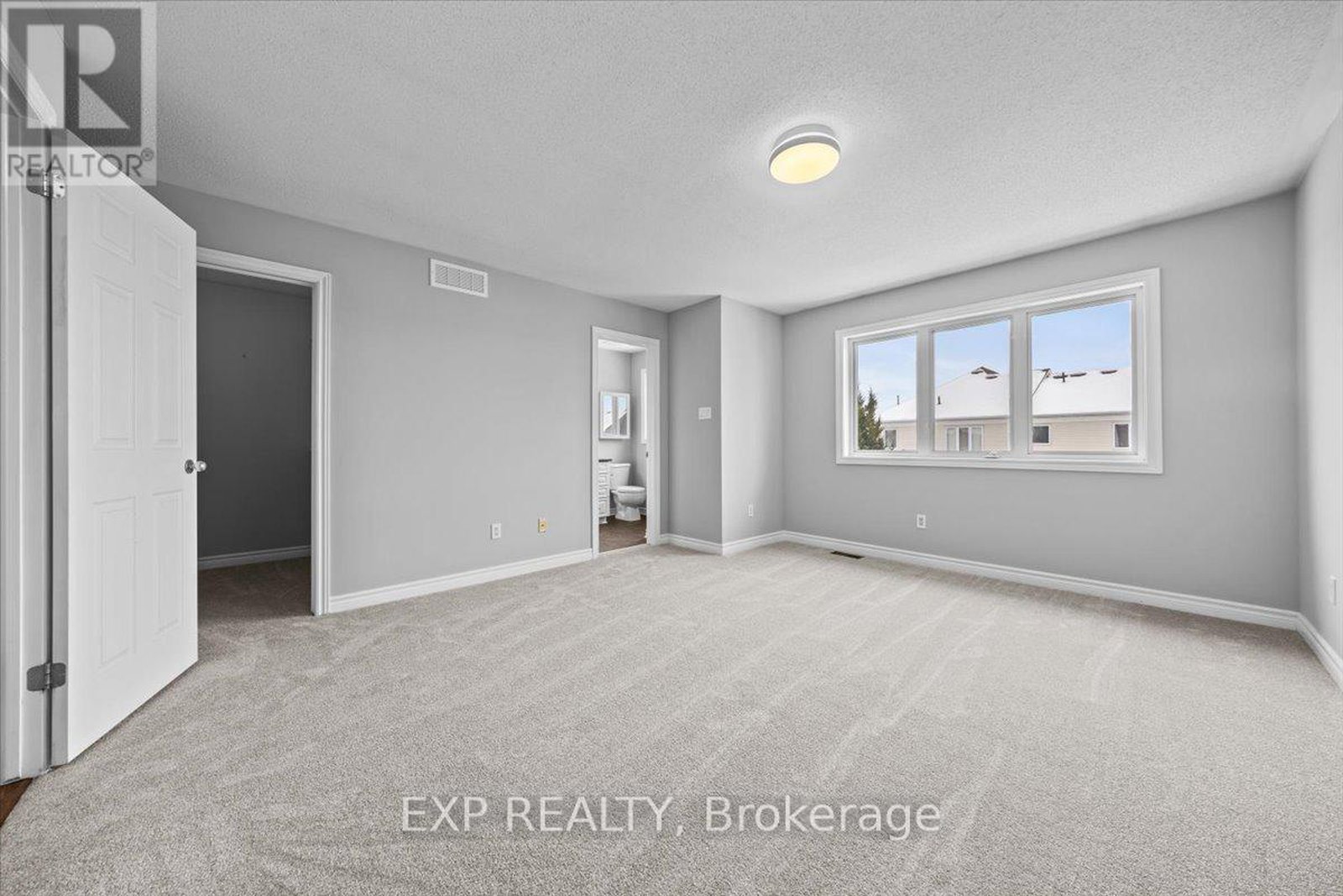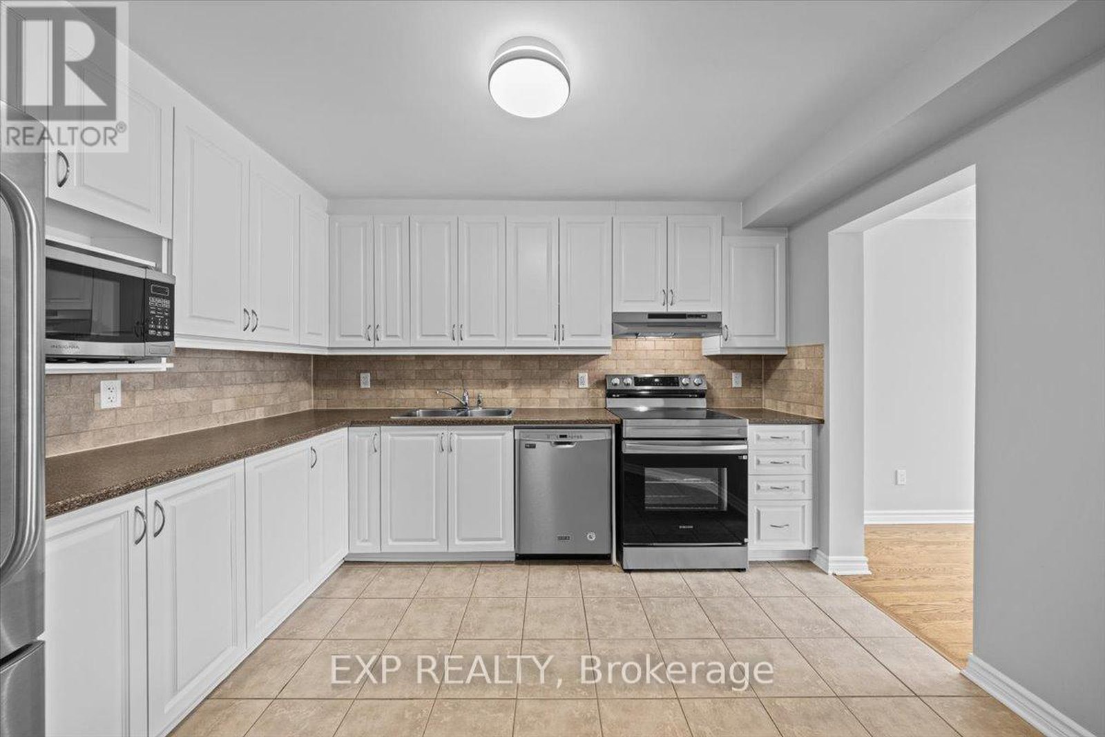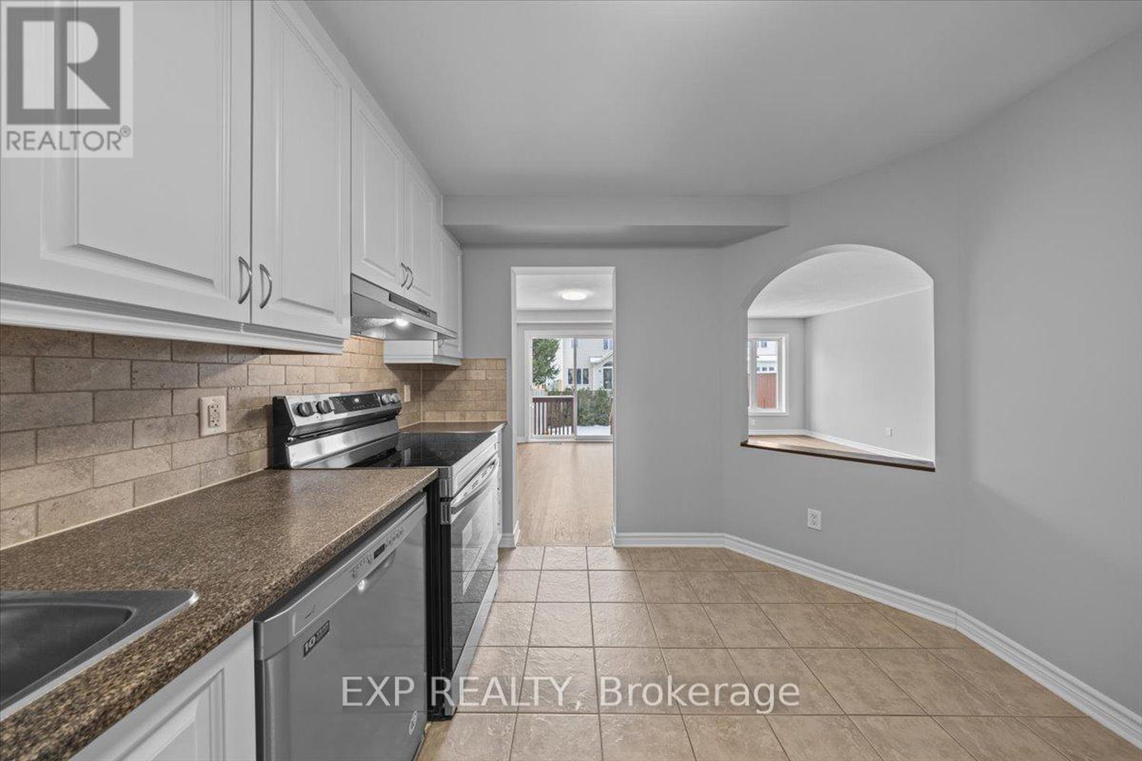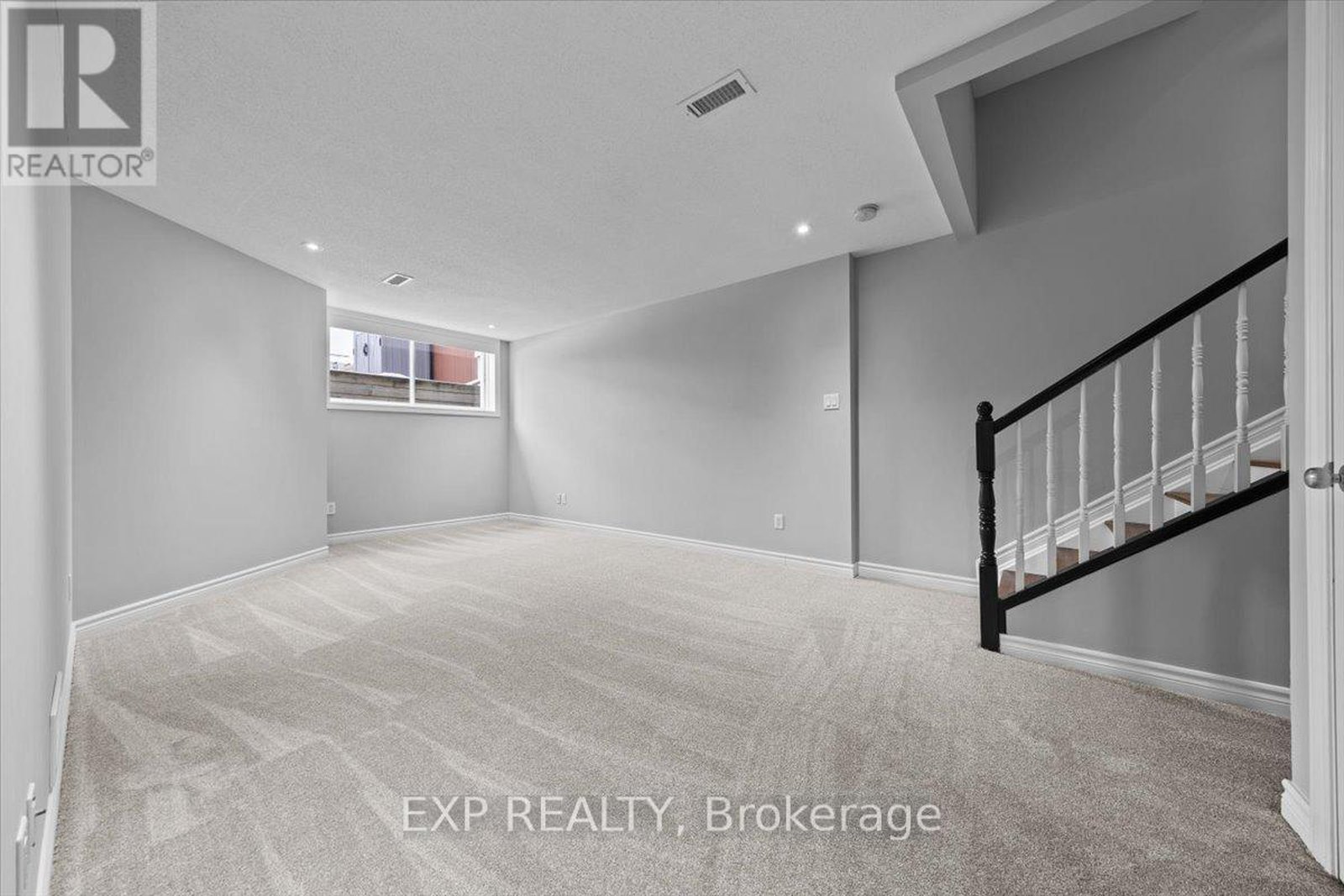 Welcome to this beautifully maintained 3 bedroom, 2.5 bathroom brick townhouse featuring a single garage and a bright, finished basement with large storage area. Beautifully refinished hardwood floors and staircase in 2025. The spacious kitchen offers plenty of counter space and cabinetry-perfect for family meals and entertaining. The open-concept living and dining area includes a cozy gas fireplace and a patio door leading to a fully fenced, sunny west-facing backyard ideal for relaxing or hosting summer barbecues. Upstairs, the primary bedroom boasts a walk-in closet and a private ensuite bathroom complete with a soaker tub and separates shower. The lower level features a welcoming recreation room with a large window, filling the space with natural light-ideal for a home office, gym, or play area. Recent updates include a new roof, fresh paint, and new carpeting, making this home move-in ready. Conveniently located close to schools, parks, shopping, and transit, this townhouse offers comfort, style, and functionality for today's modern living.