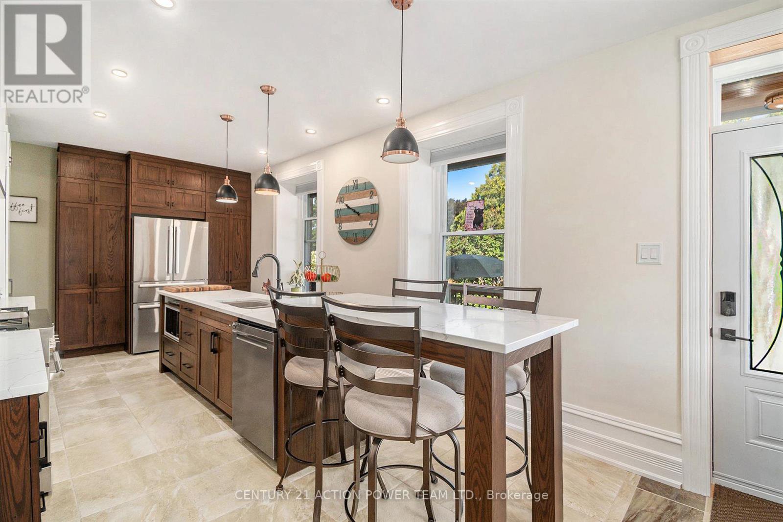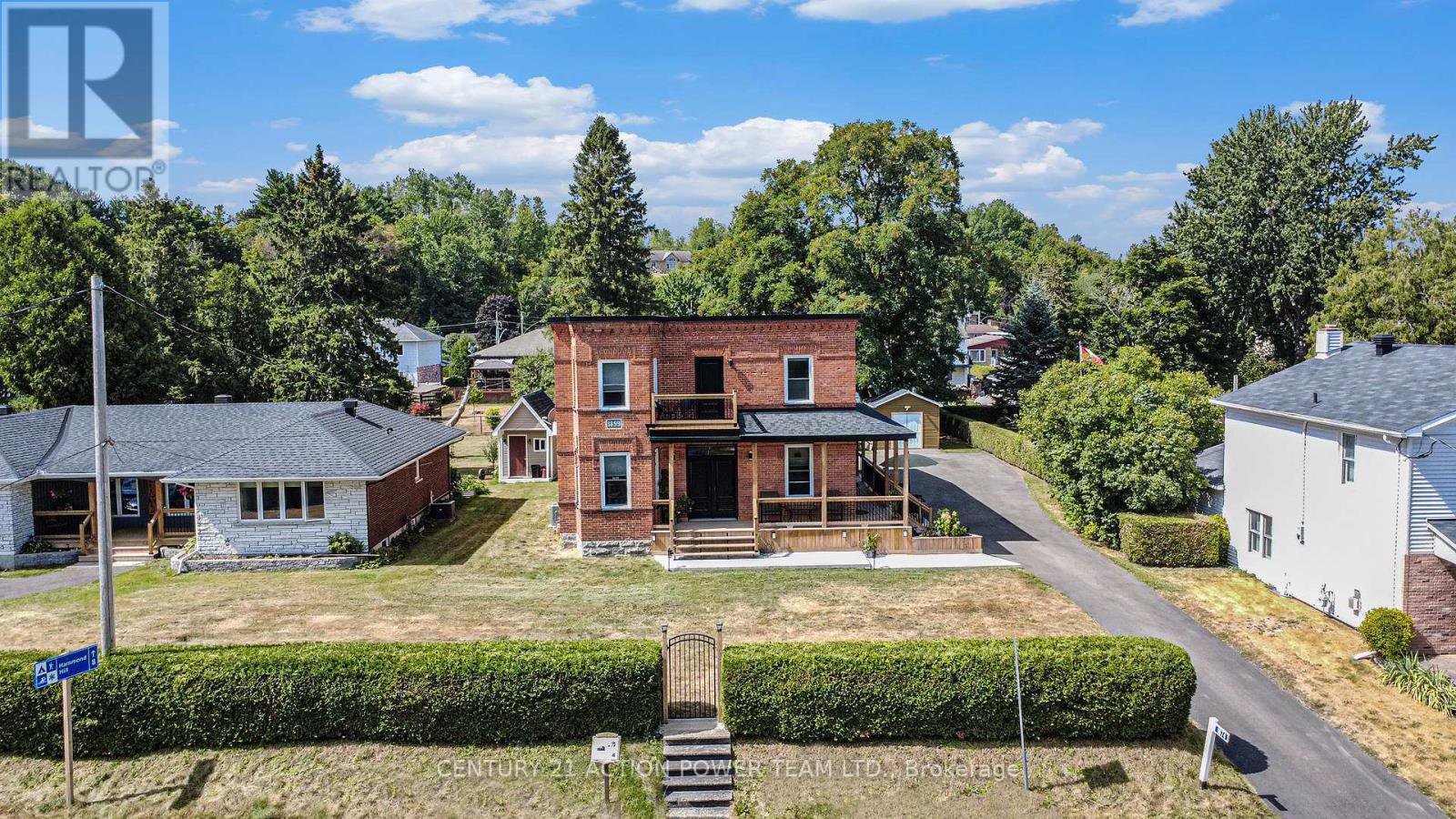 This property is considered a local historic site, given its architecture. With many years of love and care for this home, the present owner has improved and upgraded this home with love, & with quality materials, and nothing was spared for you to keep enjoying this wonderful home. Wood flrs, oak all over, ceramic in kitchen & baths, 12 1/8 inches high baseboards all real wood at a cost of $20K, 9' high ceilings, Kitchen brown cabinet oak/granite counter top, white high gloss melamine, coffee bar with mini sink and mini fridge, Range is Jenn Air with middle griddle, Bosh double fridge. Main flr 2-pc bath with laundry, vanity with limestone countertop and ceramic flr. access to a newly built garage with a loft perfect for the man cave or family playroom, or added living space with an extra-wide staircase. The upper ensuite bathrm offers granite on the walls, porcelain on the flr and in the shower. The main upper 4-pc bathrm with a soaker tub and a marble countertop single sink. All bedrms have oak flrs in a special design. The primary bedrm offers his & hers closet, access to a beautiful ensuite which offers double vanity w granite countertop, bidet toilet that has dual water temperature, heated seat and night light that changes colors the shower is 3' x 5' in ceramic tiles and glass drs, large hanging mirror on wall Incl, and further gives access to your private balcony to rest and read your special book. List of work done as follows: Modified Bitumen Roofing 2024 with a 20-year transferable warranty, Paved driveway 2024, Garage/loft 2025, Furnace & HWT & A/C 2018, Insulation attic 2022, Electrical 2020-2021, 3-faced gas fireplace 2021 between dining rm & living rm. Gas BBQ line 2023, Kitchen 2021, Plumbing PEX 2018-2022, basement blown insulation & drywall 2024, Doors 2022, Walkway around veranda 2023-2024, shed 12' x 12'. Never be out of power ever again with this Generac generator will keep you warm or cool w/everything working. Seller will entertain all offers