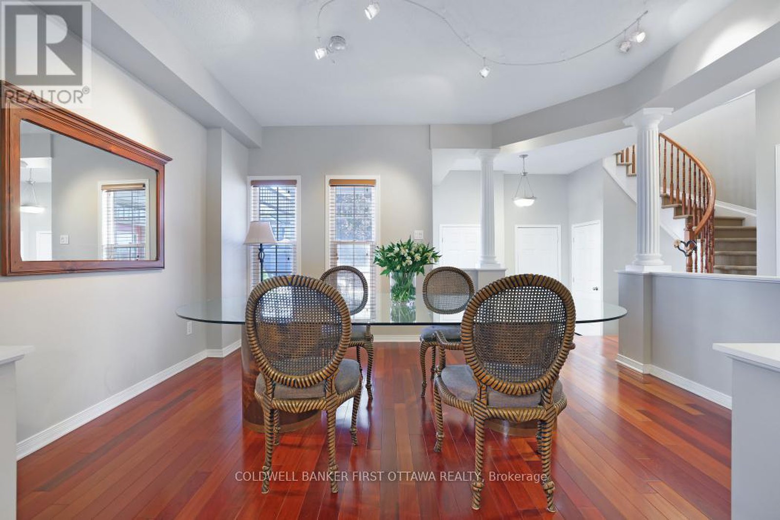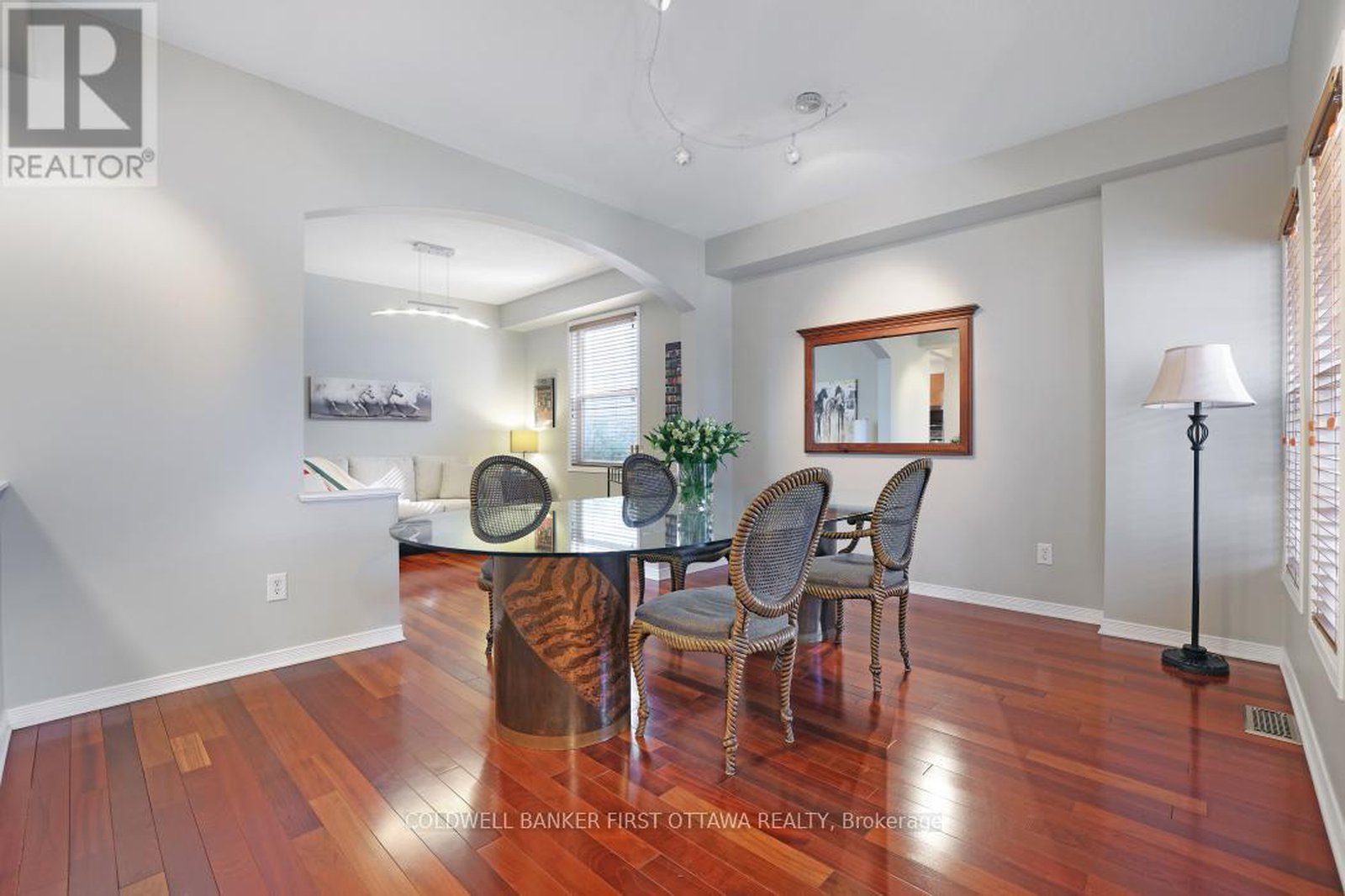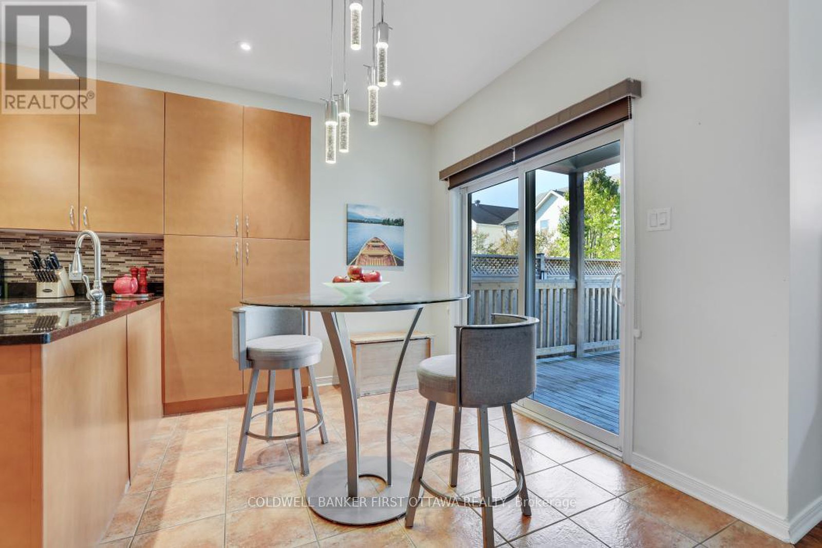 FANTASTIC value for this great home, situated in the desirable South March community, steps from Kanata North's bustling hi-tech hub!!! This JUST-under-2000 sq. ft. two-storey home blends style, comfort, and thoughtful design. The main floor features 9 ft. ceilings and hardwood throughout, with hardwood continuing across the entire second floor and carpeting only on the stairs. The bright eat-in kitchen offers generous cabinetry with convenient pull-out drawers and opens to a deck overlooking the fully fenced, low-maintenance backyard. The homeowners have reimagined the traditional living and dining spaces, creating a warm and inviting entertainment area-lounge in the new living room before sitting down to dinner in the adjacent dining space, a layout that enhances both flow and function. The family room adds additional charm with its vaulted ceiling and slate-accented gas fireplace. Upstairs, the massive primary suite offers a spacious walk-in closet and an upgraded bathroom for a true retreat. The second bedroom enjoys access to a private patio, while the third features its own striking vaulted ceiling. With a double-car garage and inside entry, this home delivers comfort, convenience, and character in one of Kanata's most sought-after neighbourhoods.