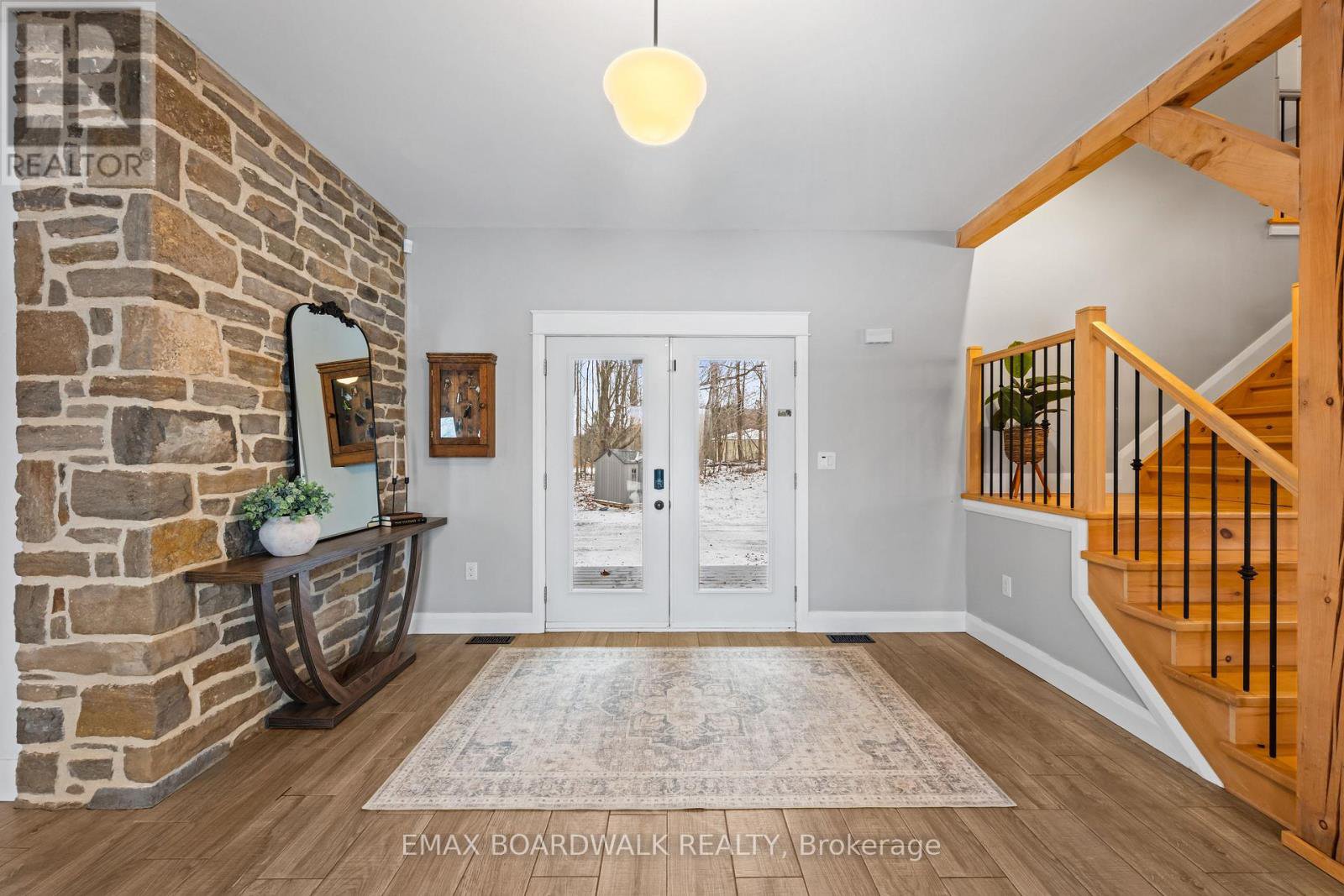 Set amid 41 picturesque acres of rolling pasture and mature trees, this beautifully restored 1848 stone home is a rare offering that seamlessly blends historic charm with refined modern living. Lovingly built using original stone & completed in 2018, the home showcases timeless craftsmanship and a warm, inviting atmosphere that is truly one of a kind.The land offers privacy, beauty, and versatility-ideal for hobby farming, equestrian use, recreation, or simply enjoying the serenity of nature. Remarkably convenient, with easy access to Highways 401 and 416 and an approximate 50-minute commute to the Kanata Tech Park, making this an exceptional option for those seeking country living without sacrificing connectivity.Spacious farmhouse kitchen, complete with a walk-in pantry and sweeping views of the surrounding countryside.Septic system (2015, cert on file), drilled well (2016), forced air furnace (2017), central air (2017), Jøtul wood stove (2020, WETT certified). The interior features vaulted ceilings, exposed beams, hemlock flooring, recessed windows & metal roof.Offering 5 bedrooms and 3 bathrooms, including a generous primary suite with a 5-piece ensuite and soaker tub, upper-level laundry, and a finished basement providing flexible additional living space.An impressive 60' x 40' barn/garage built in 2023, designed for exceptional versatility. Features a poured concrete foundation, metal roof, insulated doors, and a 200-amp electrical panel, it is currently configured to accommodate up to 7 vehicles, with endless potential for workshop or farm use.Rich in character, offering historic elegance, modern comfort, expansive land, and outstanding commuter access. A rare opportunity to own a standout country estate that is as practical as it is beautiful.