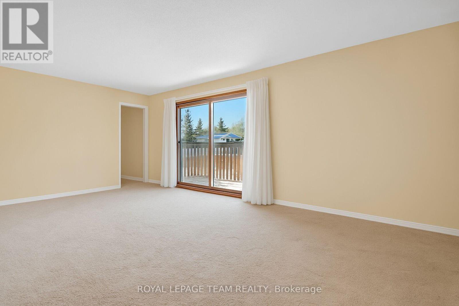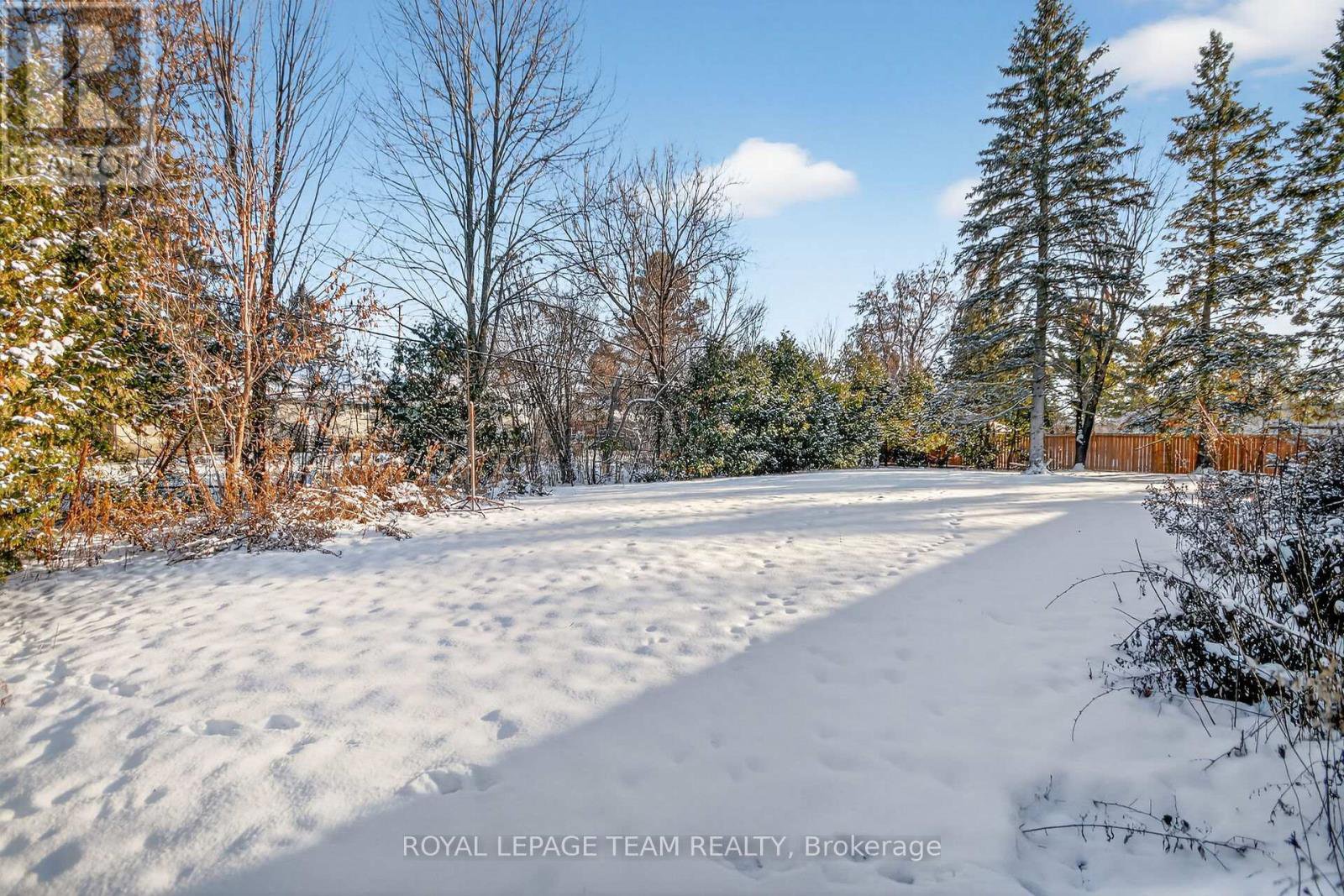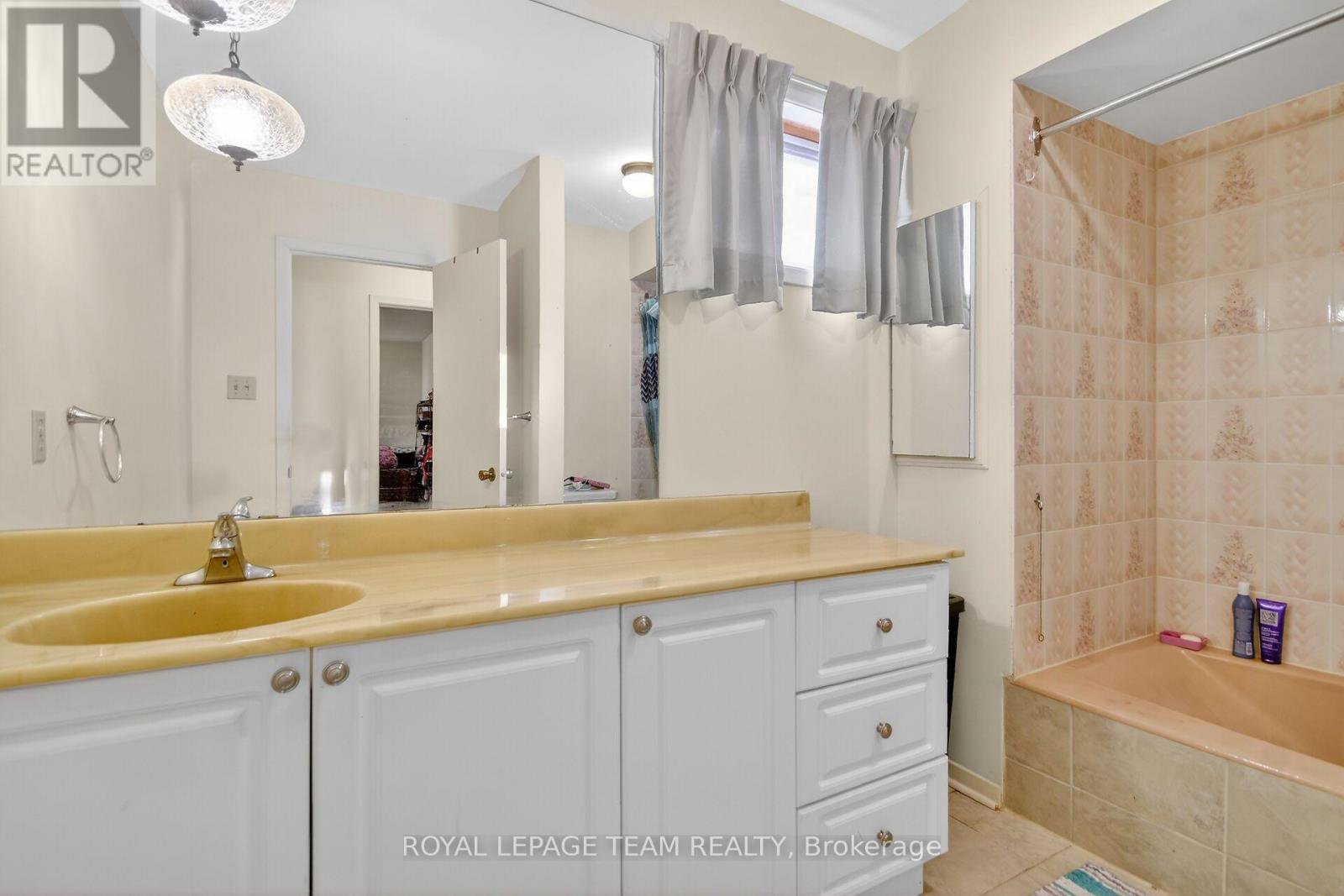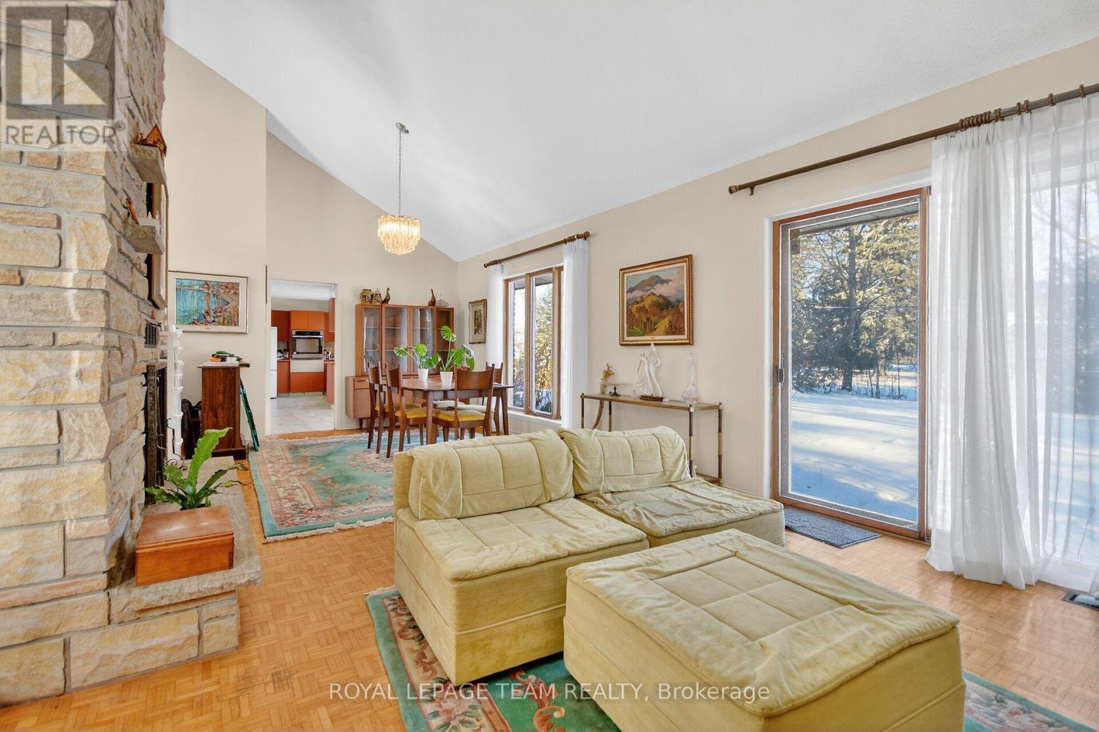 Stop the car! Fabulous opportunity to make this mid-century modern style home your dream home in a highly sought after neighbourhood of Honey Gables! Great bones to work with, over 2500 sq ft ... huge inviting entrance, vaulted ceilings in massive living room, sunken eat-in kitchen and dining room plus den with a dramatic 2 sided wood burning stone fireplace ... huge windows for fantastic natural light. Main floor office, powder room and laundry finish this level. A california style staircase takes you to the upper level. 3 bedrooms, a bonus sun room off one of the bedrooms and a balcony off the primary bedroom overlooking the street. Parking is not an issue with a 2 car garage and 4 more spaces. Massive yard for the family completes this picture. Walk a half block to Honey Gables Park sitting along the Rideau River. Note: Hydro panels on roof, infrastructure on exterior garage wall.