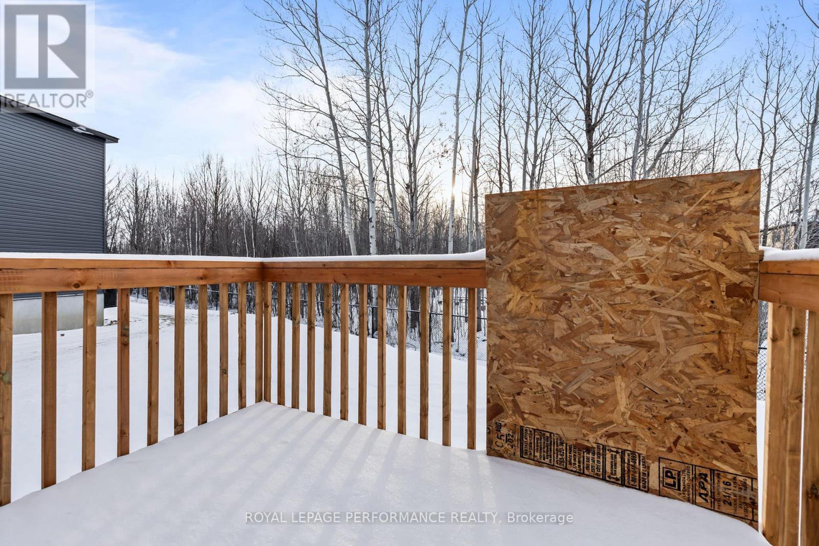IMMEDIATE OCCUPANCY for this stunning brand-new 4-bedroom, 3-bathroom home! Welcome to 10 Académie St in Embrun, ideally located in a mature and highly sought-after community built by EQ Homes. From its modern curb appeal and wide covered porch to parking for four vehicles and a single-car garage, this property impresses from the moment you arrive - and the bonus of no rear neighbours, backing onto the tranquil forest of Rivière Castor School, offers unmatched privacy. Step inside to a bright, airy, open-concept main floor featuring 9 ft ceilings, hardwood throughout, and a cozy gas fireplace with an upgraded mantel. The layout flows effortlessly into the dining area and the beautifully upgraded kitchen, complete with quartz countertops, a stylish backsplash, a large island, ceiling-height cabinetry, and an upgraded hood fan. Practical touches include a pantry/closet space, a convenient half bath, and direct garage access. Upstairs, you'll find three generously sized bedrooms, a full bathroom, and a spacious primary retreat featuring a walk-in closet and a 4-piece ensuite finished with quartz. A well-situated laundry room completes this functional level. The finished basement expands your living space and includes a rough-in for a future bathroom, offering flexibility for your needs. Additional upgrades include central AC, a fridge waterline, NEST thermostat, and more. Beautifully designed, thoughtfully upgraded, and truly move-in ready - this home delivers comfort, style, and exceptional value in one of Embrun's most desirable neighbourhoods.