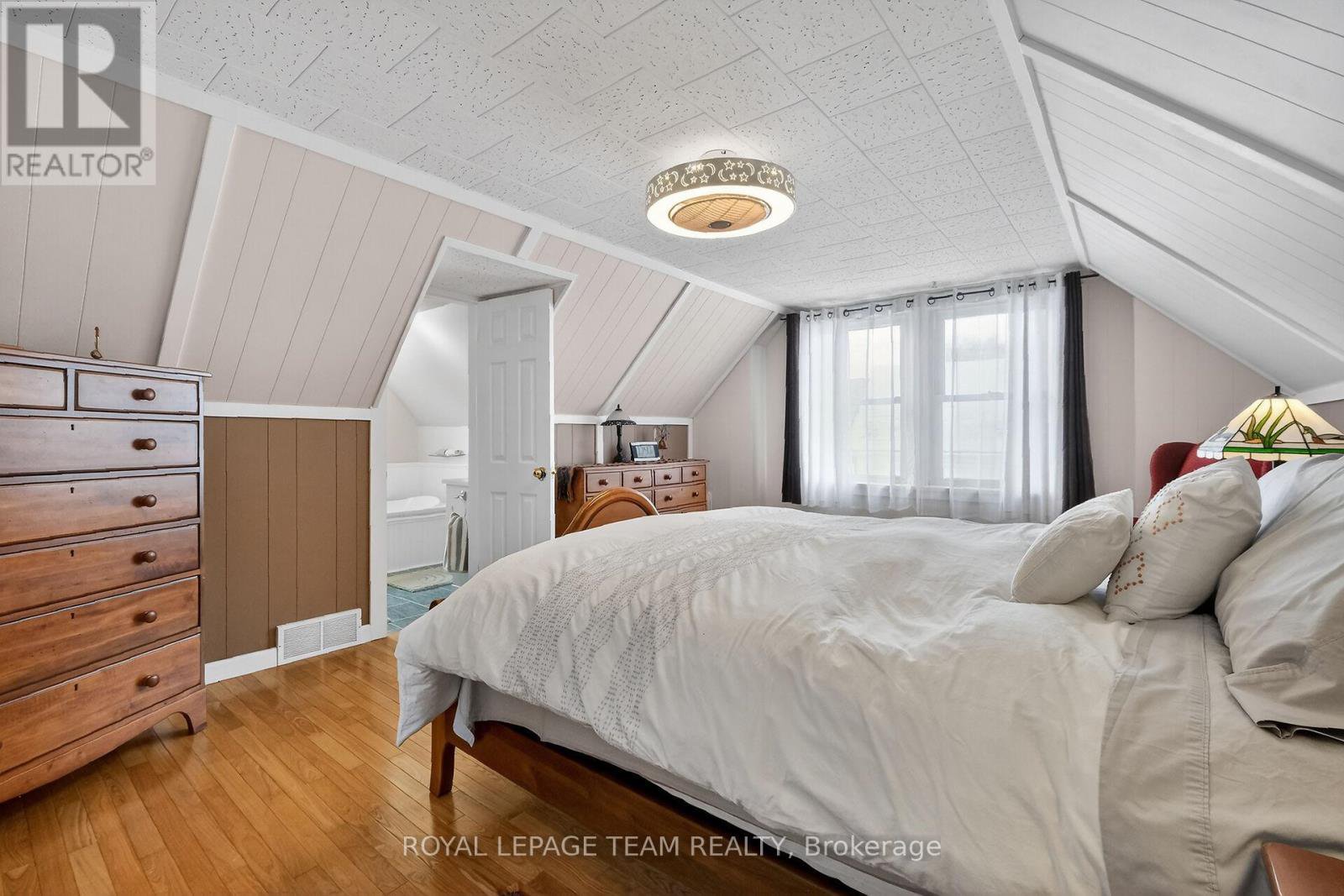 Stop the Car! A charming, light-filled home in the heart of Carleton Place. Nicely updated and painted in a neutral palate. No carpets, enjoy hardwood and tile throughout. This inviting family friendly home has large principle rooms including an eat-in kitchen (updated appliances), a formal dining room and huge living room with stone fireplace and patio doors to a sizeable deck. Updated main floor bath along with 2 bedrooms & a laundry shoot complete this floor. Upstairs is a loft area perfect for a desk and bookshelf, large closet is located at the top of the stairs. Then enter a generous primary bedroom with 3pc ensuite (6' soaker tub!) Head outside to an enormous back yard, completely fenced. The oversized garage boasts extra high garage doors ( 9' plus) a large truck will fit with no issue and a second garage door at the back for added convenience. Some upgrades include Hot Water Tank 2024, Dishwasher Dec '25, Stove, Fridge, Washer (Dec '25) & Dryer; Crawl space spray foam closed cell insulation, some of the eaves.