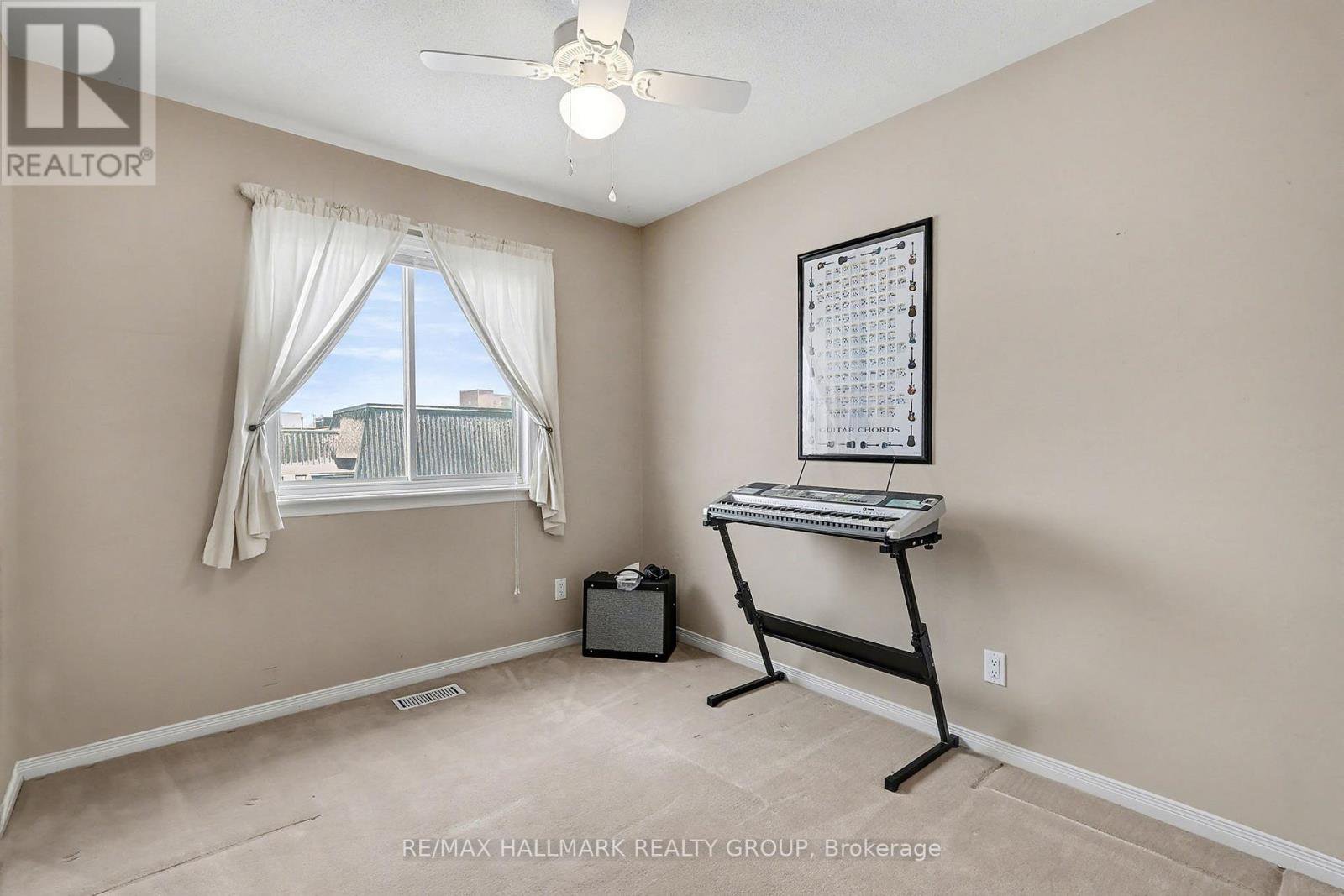 Welcome to this beautifully maintained end-unit townhome tucked away on a quiet, family-friendly street with no rear neighbours. This inviting property offers a wonderful blend of comfort, style, and practicality in the heart of Ottawa's desirable Carson Grove community. Step inside to a bright and inviting main level with hardwood flooring, elegant crown moulding, and a cozy gas fireplace in the living room. The dining area flows naturally from the living space, creating a warm setting for family meals and entertaining. The galley-style kitchen features a charming cut-out window that lets in light and keeps the space connected to the rest of the home. It's equipped with stainless steel appliances, a double sink, ample cabinetry, and a sunny eat-in breakfast area with patio doors leading to the backyard - a perfect spot for morning coffee or casual meals. The fully fenced backyard is a true bonus, offering privacy, a lovely deck, and a gazebo - perfect for outdoor dining, relaxing, or entertaining. The second level includes three comfortable bedrooms, all carpeted for added warmth. The spacious primary bedroom features a walk-in closet and a 4pc. ensuite, while the two additional bedrooms are served by a well-appointed full bathroom. A finished lower level extends your living space with a cozy recreation room featuring laminate flooring - ideal for a family room, home office, or play area. You'll also find a separate utility/laundry room and an additional storage room, offering excellent practicality. Additional features include a single car garage with inside entry and parking for two vehicles in the driveway, along with a convenient main floor powder room. Located close to parks, schools, transit, shopping, and recreational amenities, this home offers the best of peaceful suburban living with everyday convenience just minutes away.