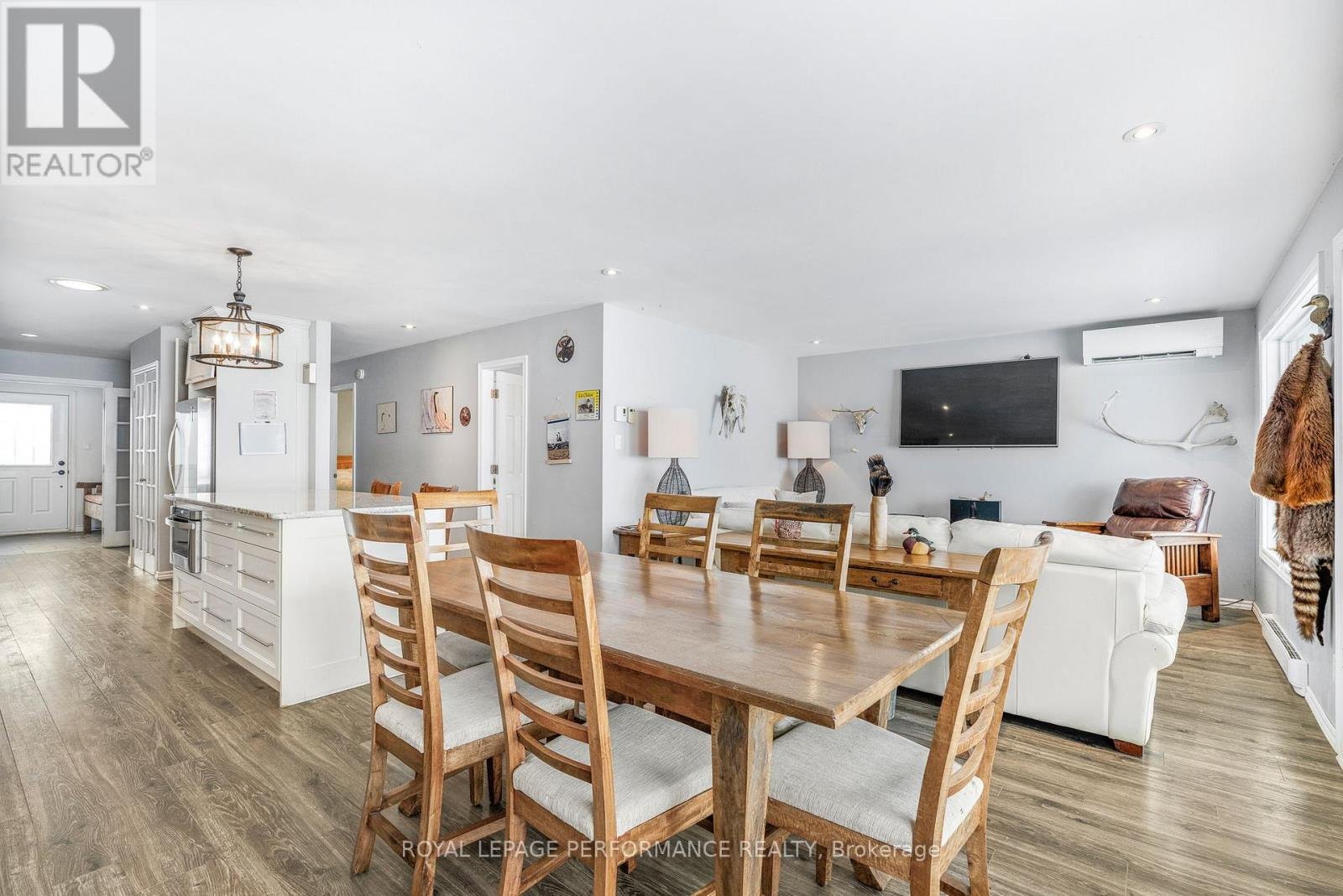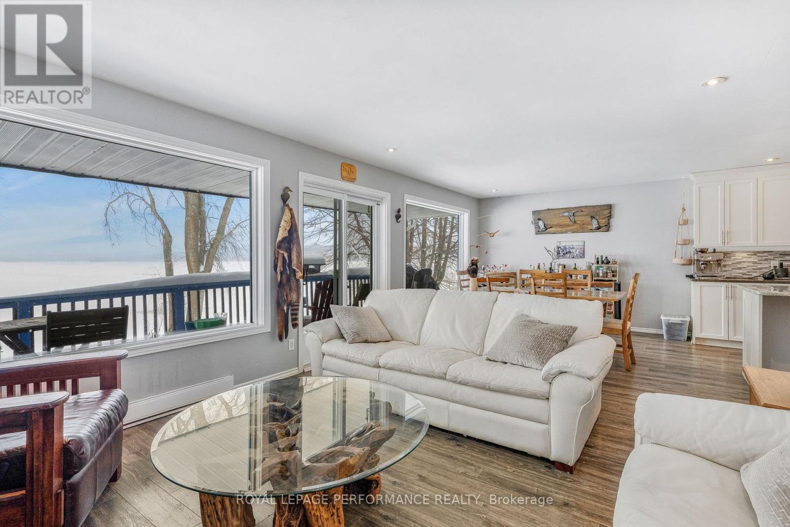 WATERFRONT playground all year round with unreal sunsets.1+2 beds, 1+1 baths. Beautifully updated in 2019 ( roof , windows, garage door, entry doors, basement flooring, kitchen island, and some cabinets) this home offers unreal sunsets and fuzzy feelings with 1st row seats to every changing season. It is welcoming the moment you step inside. Enclosed mud room leads to a well designed open concept layout. Featuring a gourmet kitchen, center island with granite lunch counter, pantry , gas cookstove and built in microwave, SS dishwasher. Bright an airy open concept dining and living room. Patio doors invite you to a covered deck where you can unwind and watch the Ottawa river 's scenery. The main floor primary bedroom offers a walk in closet and a cheater ensuite with a soaker tub. The fully finished ground level, has a perfect space for easy entertaining with it's own bar and walk out patio to a 2nd covered porch. Boasting a 2nd primary bed with cheater ensuite. 3rd bedroom and a 4th room is a flex space and large laundry area . This lower level is Ideal for children, guests or a multi - generational living. 2024- 2025 updates include dog crate entry to garage, new propane tank, new gas heating system in the attached garage, a new outdoor staircase to access backyard directly from 2nd level deck, slope emprovement and additional 3rd covered outdoor space where I imagine a state of the art outdoor culinary haven would find, your grill, smoker, pizza oven and griddle. Dock your boat at home, fish, snowmobile too! Slanted descent to the waterfront.