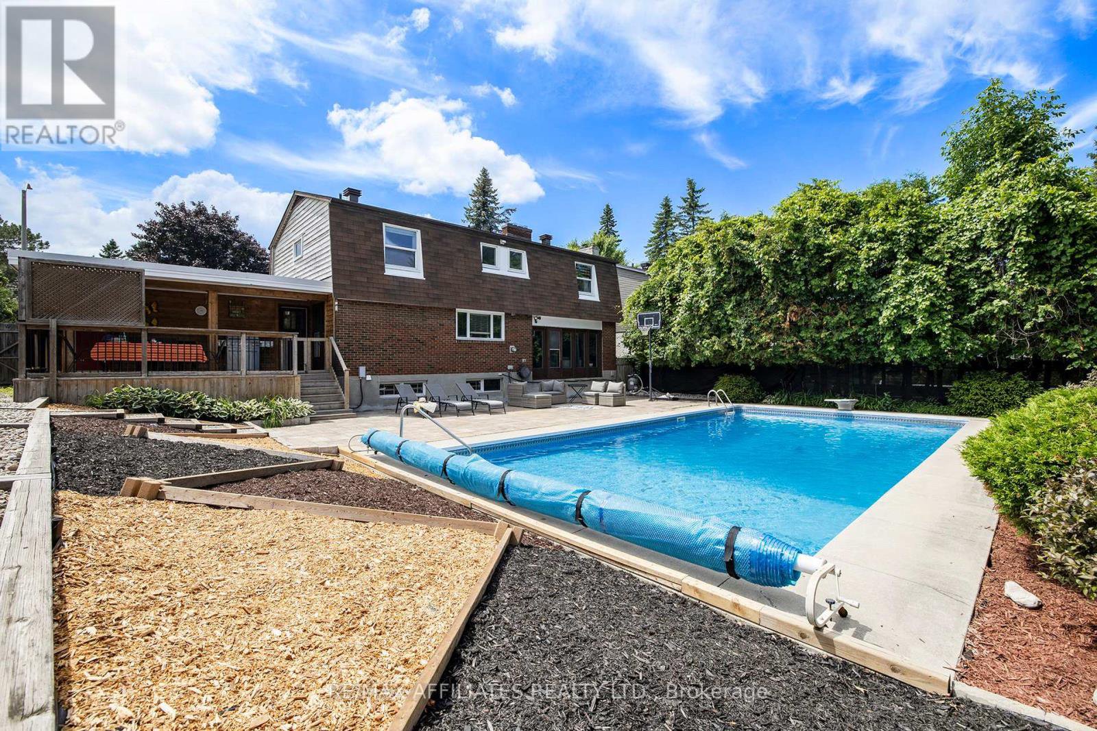 A MUST SEE! Beautiful 4 bedroom home located on a tree-lined crescent in a quiet, family friendly neighbourhood! Pride of ownership prevails in this stunning home. The home features tons of natural light and an excellent living space with hardwood floors on the main and top floor. Spacious kitchen with lots of counter and cabinet room, and a full sized pantry. All bedrooms are generously sized. Master bedroom has a walk-in closet & full ensuite bathroom with a stand-up shower. Large fully finished basement with rec room, and playroom. Back facing the Okanogan park with a large deck & end-to-end interlocked patio, great for hosting family BBQs! Enjoy summer to the fullest with your very own in-ground pool perfect for relaxing and entertaining. Whether you're hosting weekend BBQs or enjoying a quiet evening swim, this backyard pool offers the perfect escape from everyday life. Within walking distance of bike paths, trails, schools, transit, the Queensway Carleton Hospital. Don't miss out on this opportunity and book your showing today!