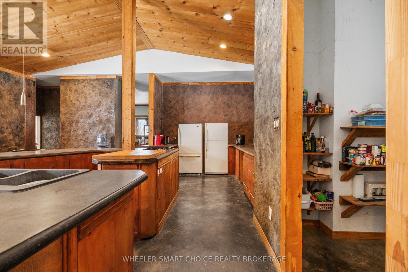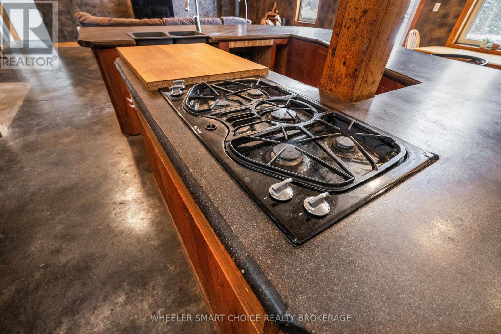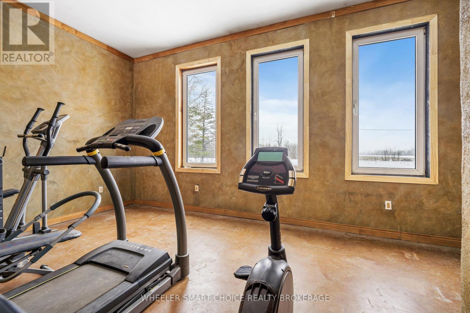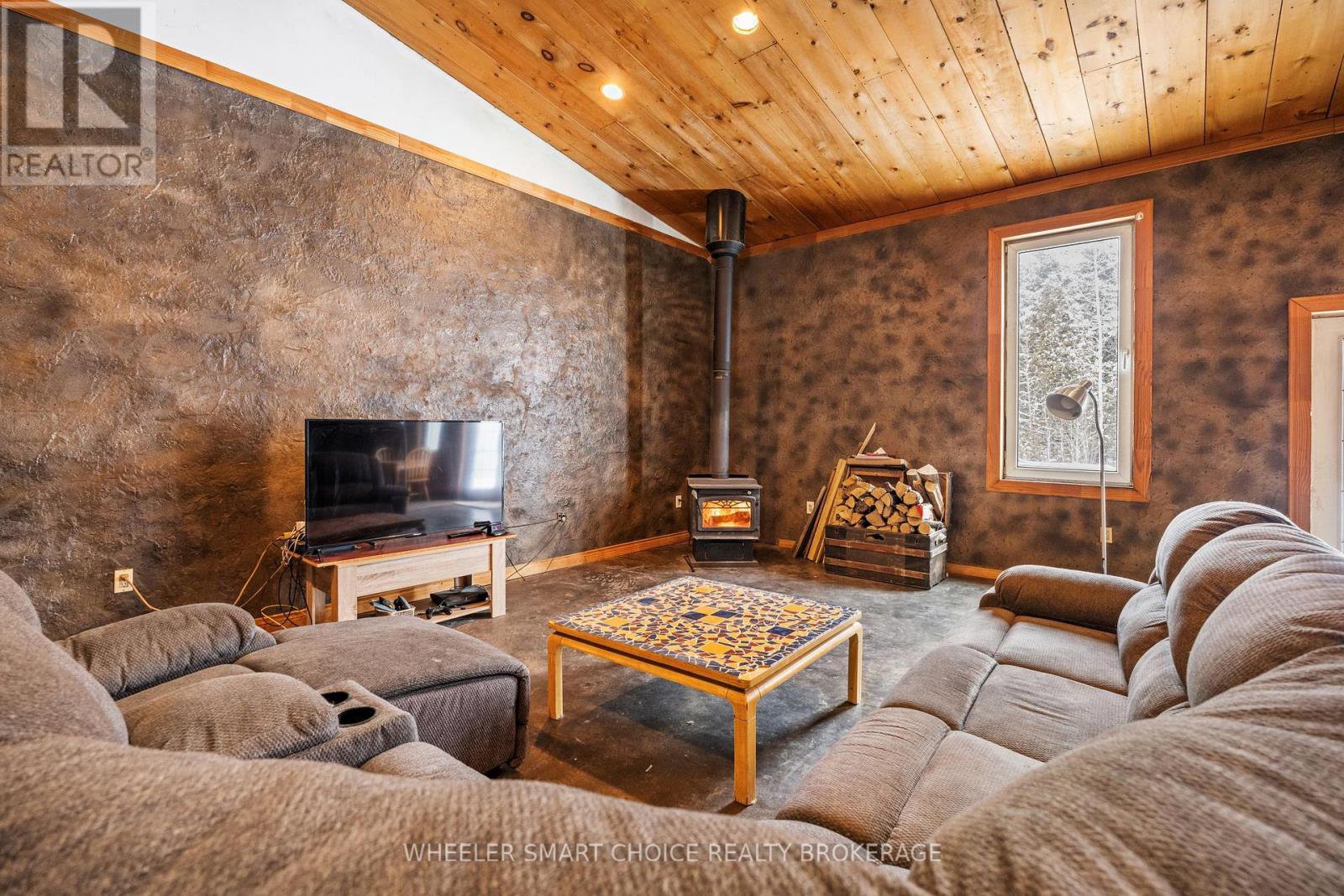 Unique rural ranch-style bungalow complete with a wooded area at the back, just under 2 acres. Modest from the curb but spectacular inside - this artisinally crafted home-built by the owners-features insulated concrete form (ICF) construction inside and out, delivering a solid R-50 envelope for exceptional comfort and efficiency. You will be wowed as your step into the expansive main room and immediately feel the scale and thoughtful detailing: soaring sightlines, natural textures, wooden cathedral ceiling and an open layout perfect for everyday living and entertaining. Acid-rubbed, textured concrete walls create a warm, pueblo-inspired atmosphere, while poured terracotta-tone concrete floors lend an earthy, quiet, and durable foundation to the living spaces.The home offers four bedrooms, a main bathroom, and a large, front-facing exercise/fitness room off the foyer - ideal for a home gym, studio, or flexible office space.The master bedroom is a work in progress but poised to become an exceptional retreat: large and bright with a patio door to the backyard, rough-in plumbing for a corner shower, tub and double sink, and a large walk-in closet/bonus area - excellent for a dressing room or private office.Set on a generously sized lot with mature trees in the back and room for outdoor living or future landscaping projects, this unique bungalow blends modern performance with artisanal character. Perfect for buyers seeking a quiet, energy-efficient home with distinctive architectural charm and plenty of indoor-outdoor potential. Located near Winchester-a historic village within the larger township of North Dundas, about 50 km south of Ottawa, known for its agricultural roots and charming small-town feel and offering a mix of quiet country life with nearby small town conveniences. Schedule a showing to experience the scale and craftsmanship of this unique home.