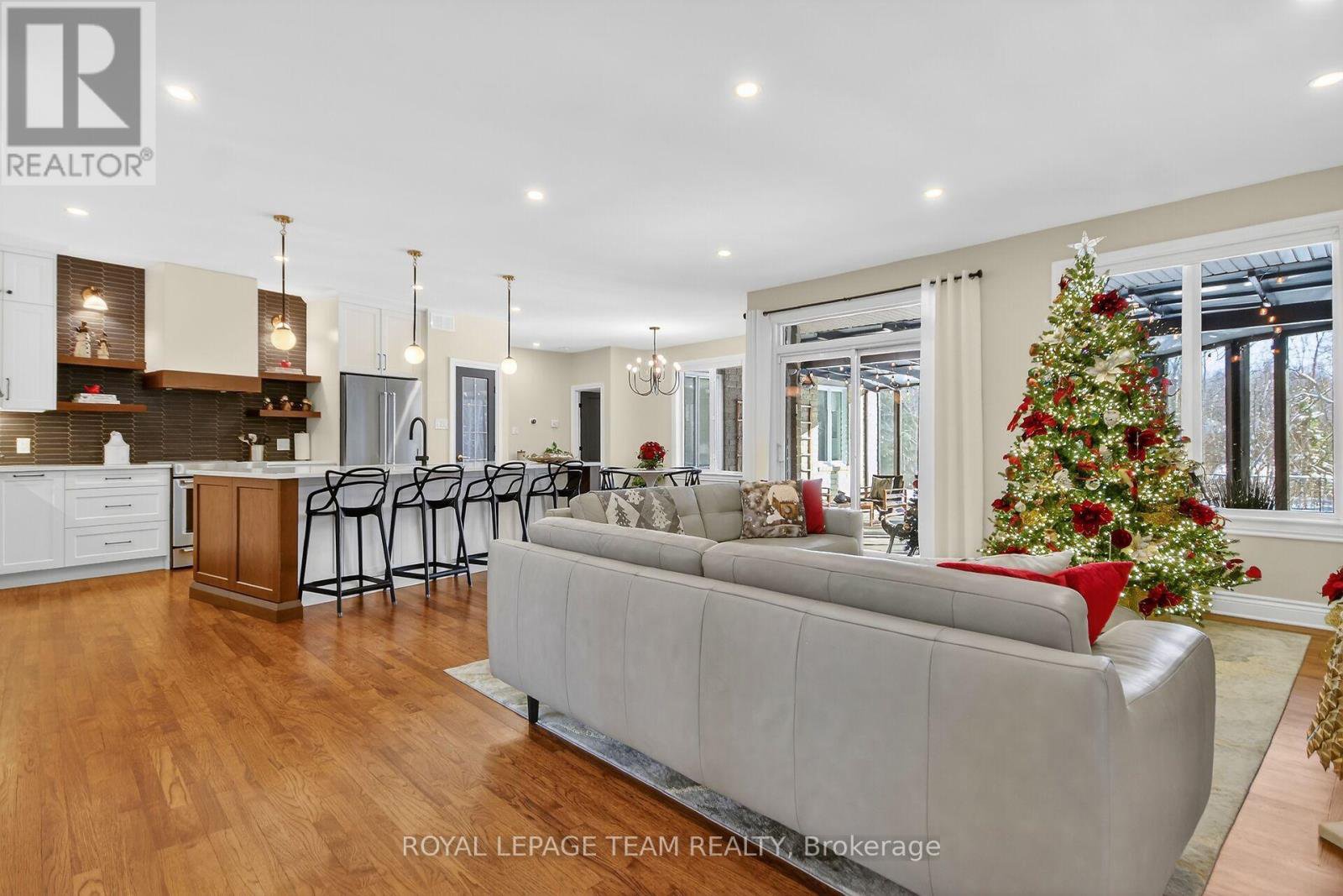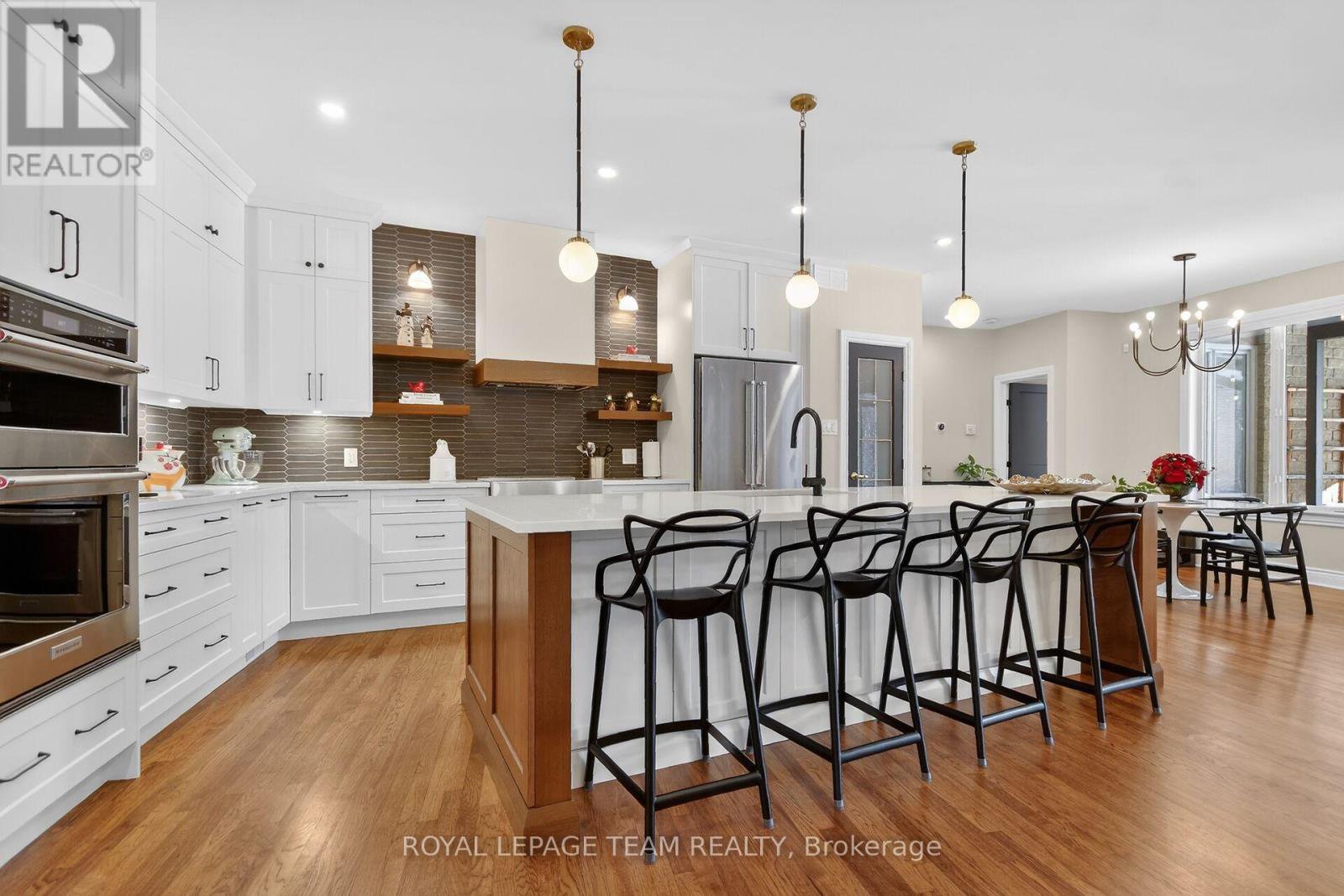 Situated in Orchard View Estates on a private 1.4 acre lot surrounded by mature trees, beautiful hardscaping, manicured perennials. This stunning custom home offers timeless design, high-end finishes, & serene outdoor living. The great room features a gas fireplace, wet bar and built-in cabinetry w/soapstone counters, beverage fridge, ice maker & automated blinds. Gourmet kitchen with walnut accents, quartz counters, stainless appliances & oversized island. Main floor includes a private office and formal dining room. Luxurious primary suite with gas fireplace, custom California closet, & spa-like ensuite with heated floors and towel rack. Private in-law suite with ensuite bath, easily converted back to 2 bedrooms. Extremely large screened in porch built in 2023 offers a delightful gathering place for your family. Fully fenced area for children or animals to enjoy. Finished lower level includes family room, games/exercise area, bedroom, full bath, laundry with heated floors, and kitchenette. Updates: furnace 2023, Air Conditioning 2023, Generac whole home generator 2023, dual sump pumps 2024, water treatment 2024, Oversized 3-car garage. 200 amp service. A rare blend of privacy, elegance, & functionality.