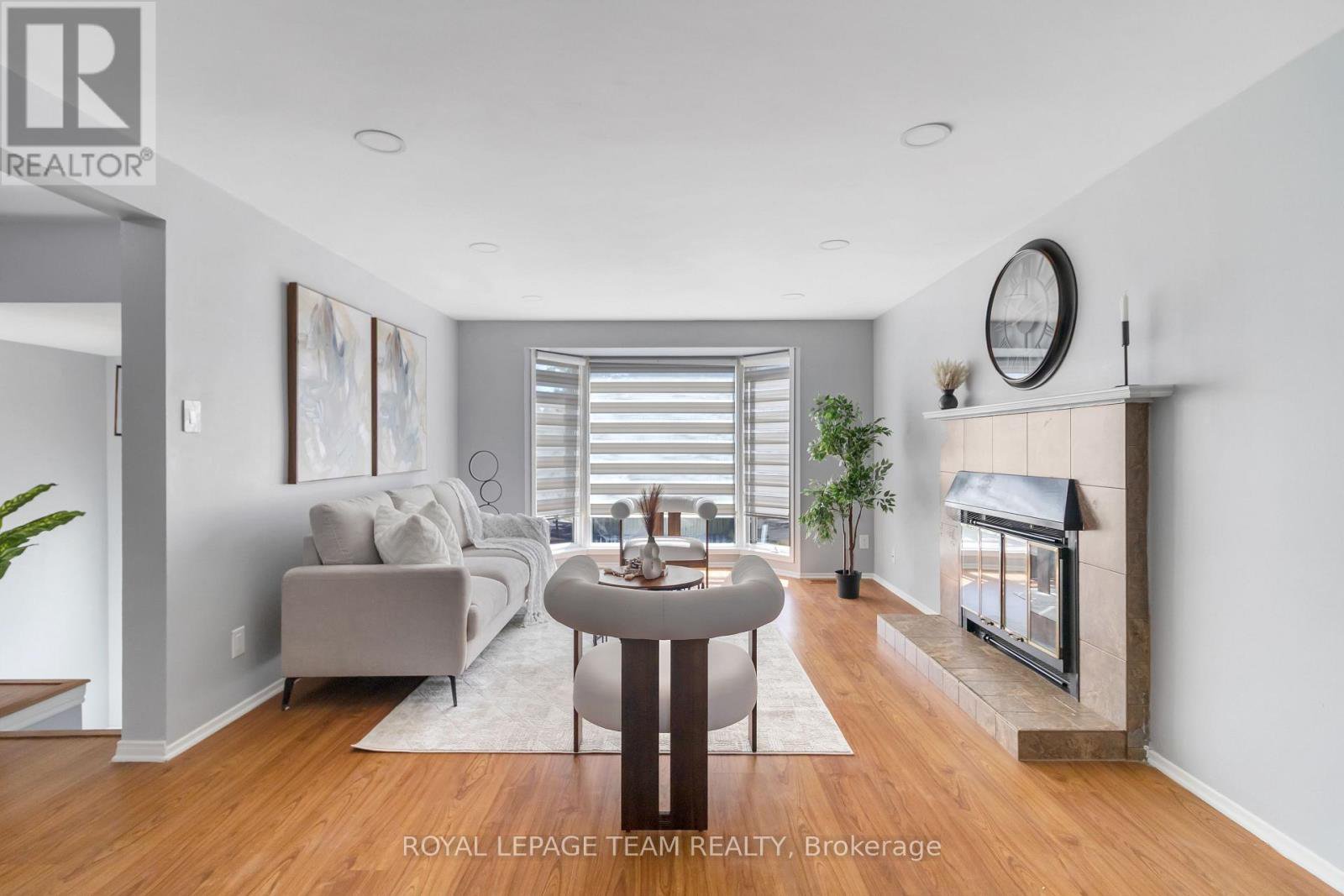 This bright and stylishly updated detached home in desirable Leslie Park offers 3 bedrooms plus a basement bedroom or office and 3 baths, with exceptional privacy and no rear neighbours. The spacious foyer with Calcutta ceramic tiles leads up to a large living room with a cozy fireplace, open to the dining area and a kitchen featuring new ceramic tiles, pantry, and a powder room. Upstairs, the primary bedroom includes a walk-in closet and 3-piece ensuite, along with two additional bedrooms and a main full bath. All bathrooms have been redesigned with new vanities and toilets. The finished basement provides a fourth bedroom or office, laundry room, and organized storage. With a drive-down driveway, elevated main and upper levels filled with natural light, and a private fenced backyard with deck and gazebo on a corner lot, this home also includes a newer furnace and A/C (2017), a new garage door opener, and an attached garage with inside entry in a prime location near Baseline Road, transit, shopping, schools, and parks. The property taxes shown are estimates from GeoWarehouse. Some photos have been virtually staged.