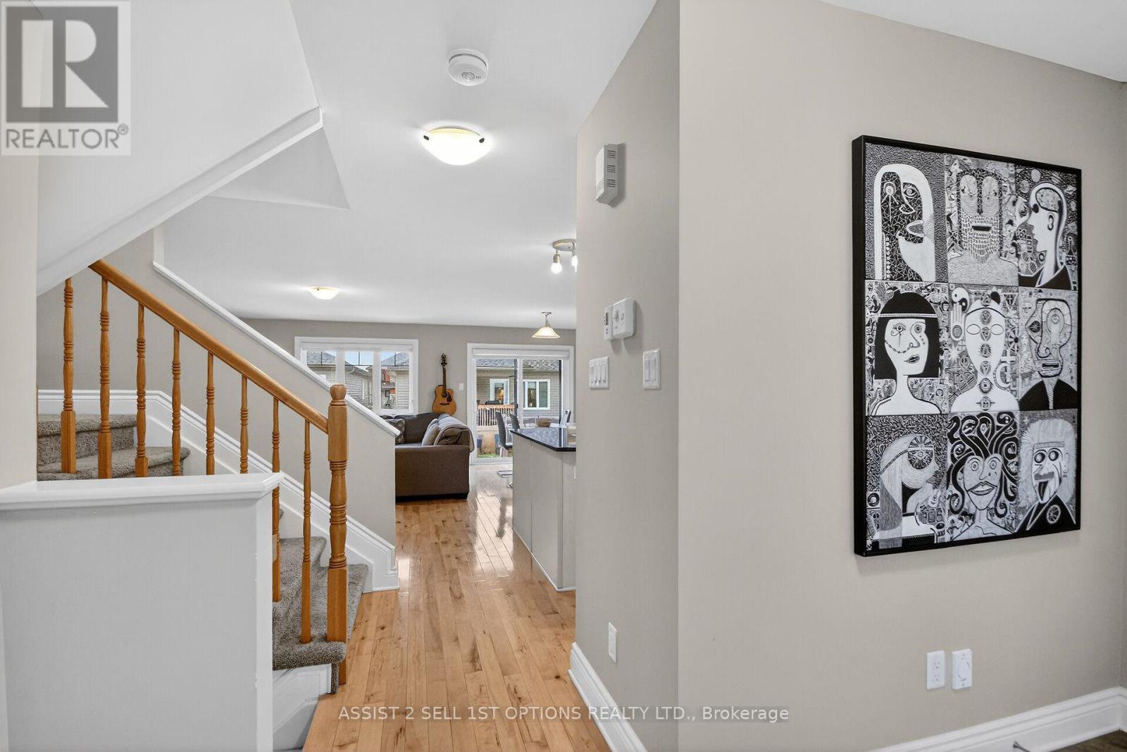 Welcome to 355 Twilight Ave in the sought-after Sunset Flats area of the Town of Russell-an exceptional END -unit townhome widened by 4 ft. and offering nearly 1,400 sq ft on the main level plus a finished basement . This bright 3-bedroom home features a welcoming foyer with ceramic floors and double closet, a modern kitchen with granite countertops, crown moulding above cabinets, stainless steel appliances, and hardwood flooring throughout the main level. The living and dining areas are filled with natural light from large, bright windows. The spacious primary bedroom with two closets and well-sized secondary bedrooms are complemented by a main bathroom with double sinks. The finished basement offers a large rec room and full bath, plus a unique separate door providing excellent rental or in-law suite potential. Close to parks, schools, shopping, trails, and community amenities, with easy access to downtown Ottawa.