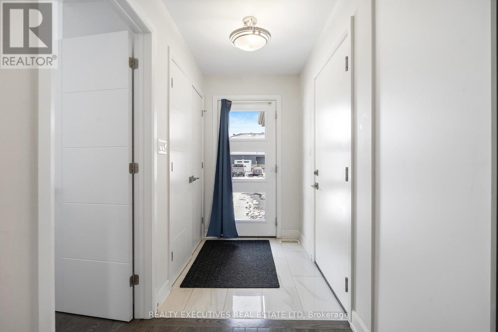 Welcome to 460 Arora Crescent-A Modern, Move-In Ready Bungalow in Winchester Meadows! Discover comfort, style, and convenience in this beautifully designed 2021 semi-detached bungalow by Moderna Homes, located in the highly sought-after, family-friendly Winchester Meadows community. End unit provides windows and natural light from the west! Step inside to a bright, open-concept layout enhanced by 9-foot ceilings, hardwood flooring, and plenty of natural light. The modern kitchen features a breakfast-bar island, stainless steel appliances, and a natural gas stove, flowing effortlessly into the dining and living areas-perfect for everyday living or hosting family and friends. This home offers 2 bedrooms and a full bathroom on the main floor plus a full bathroom in the basement. The partially finished lower level is a major bonus, complete with a 3-piece bathroom, and additional versatile space for a family room, home gym, additional bedroom or extra storage. Step outside to a fenced backyard with no rear neighbours, offering peaceful views of the ravine and creek-your own private retreat. An attached 1-car garage with interior access adds everyday convenience. Generlink provides peace of mind with easy connection to a Generator. Close to parks, schools, shopping, and all the amenities Winchester has to offer, this move-in ready bungalow delivers modern living in a quiet, serene setting. A stylish, low-maintenance home in a desirable neighbourhood!