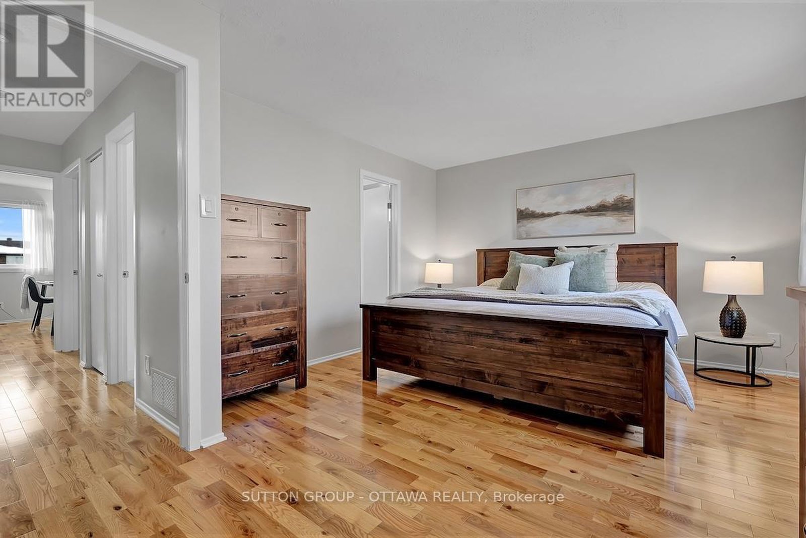 Welcome to a warm and inviting family home in one of Orleans' most convenient and well-connected neighbourhoods. This beautifully maintained property offers a bright layout, great natural light, and a classic floor plan that works for real-day-to-day to day living. The main floor features sun-filled hardwood floors, a spacious living room with a wood-burning fireplace, a comfortable dining area, and an eat-in kitchen with plenty of cabinet space and direct access to the backyard. A convenient powder room completes this level, adding function and comfort for busy households. Upstairs, the home offers three generous bedrooms and a fully renovated main bathroom with elegant tile, a wide modern vanity, and a glass-enclosed tub and shower. The primary bedroom enjoys direct access to the bath, creating a semi-en-suite feel. The finished lower level adds even more usable space with a bright rec room and excellent storage options. It is ideal for a playroom, media area, home gym, or office setup. The backyard is fully fenced and private, perfect for children, pets, and relaxed outdoor living.l with newly laid patio stones .This location is hard to beat. You are minutes from the coming LRT extension, close to parks, shopping, and a vibrant blend of French and English culture. Families will love the access to some of Ottawa's best French schools, along with convenient transit and nearby amenities. This home delivers comfort, value, and room to grow. It is move-in ready and full of potential for your personal touch. Welcome home. Shingles 2013, Windows recent but not sure about the date. Hot water tank 2017. Furnace 2005.