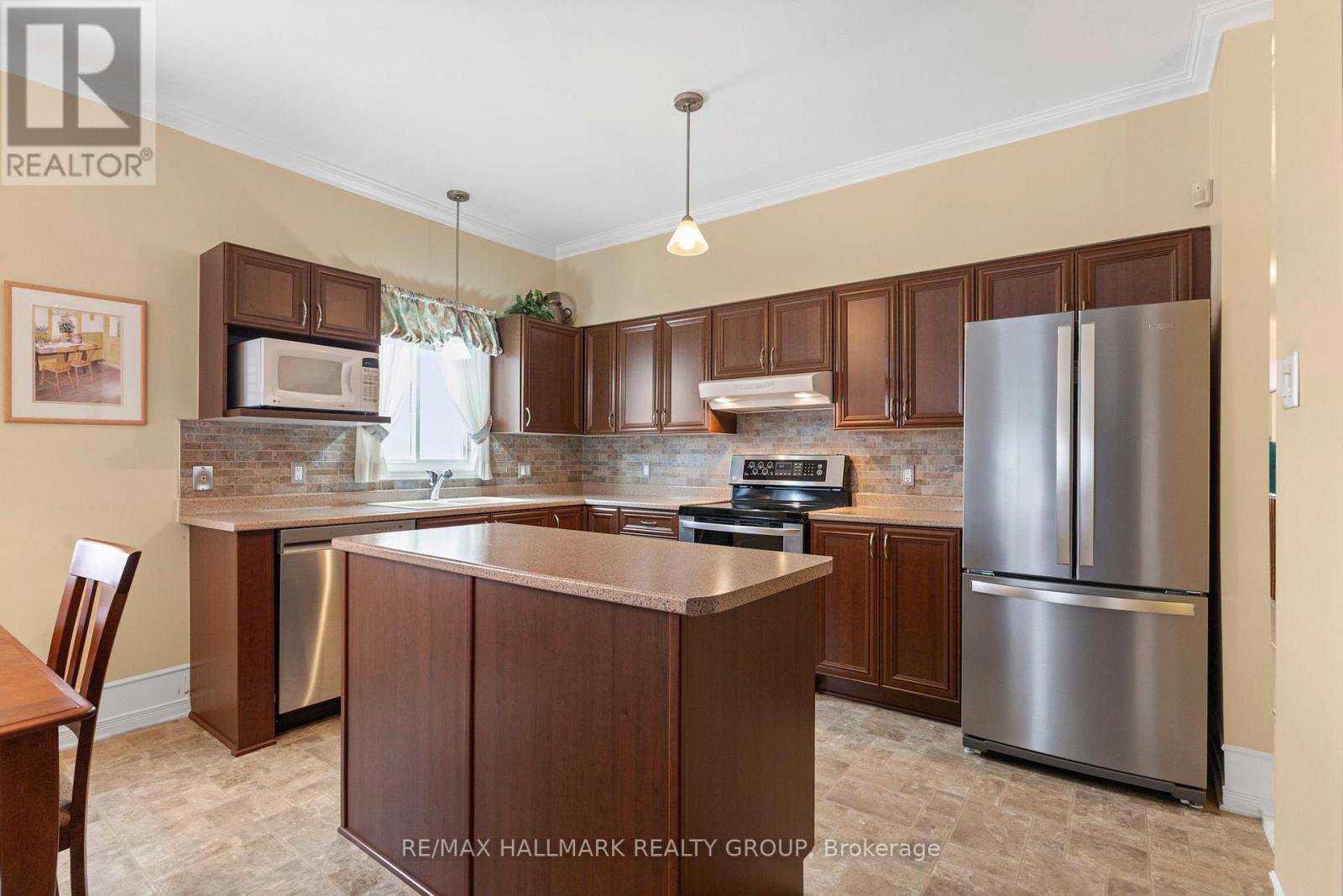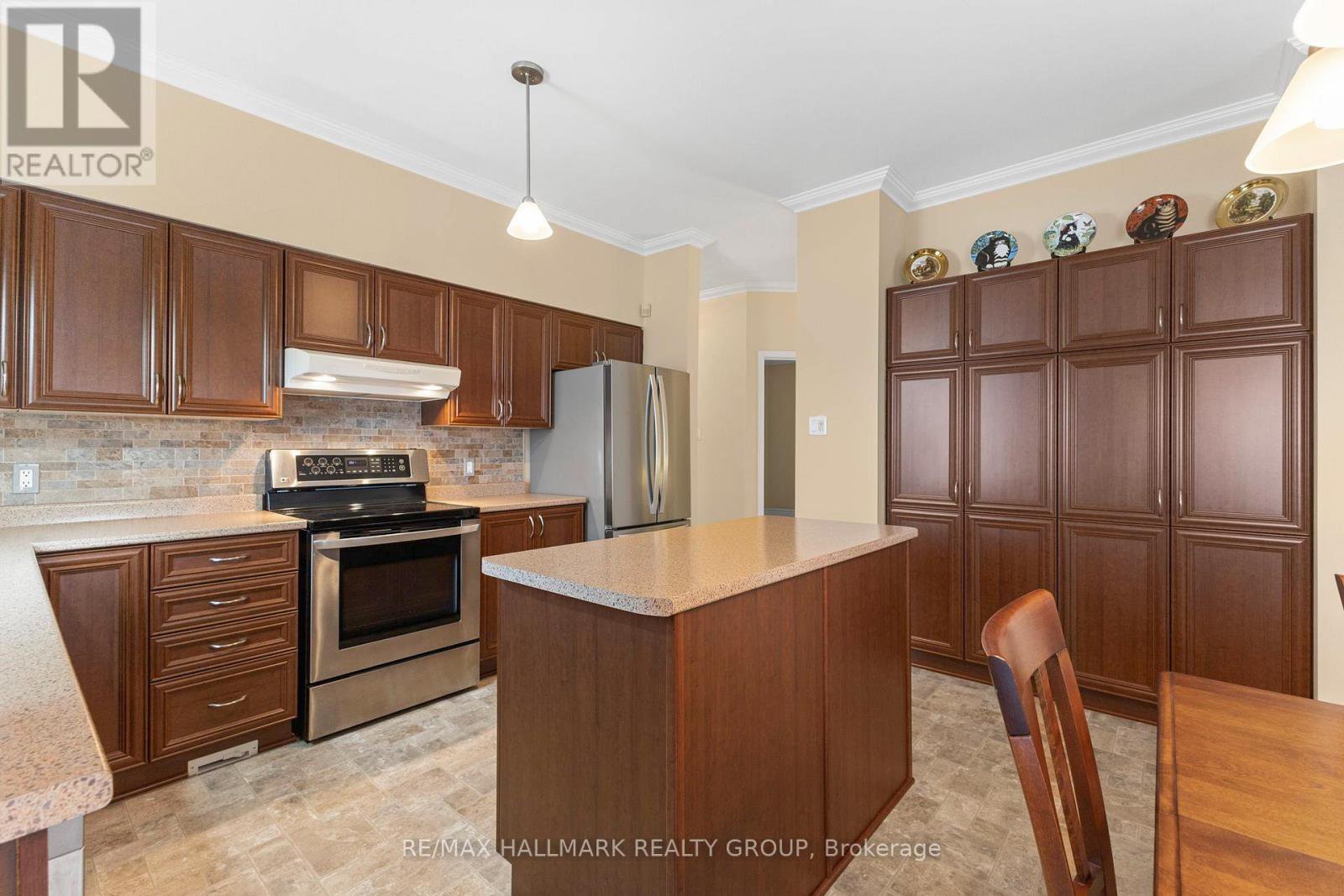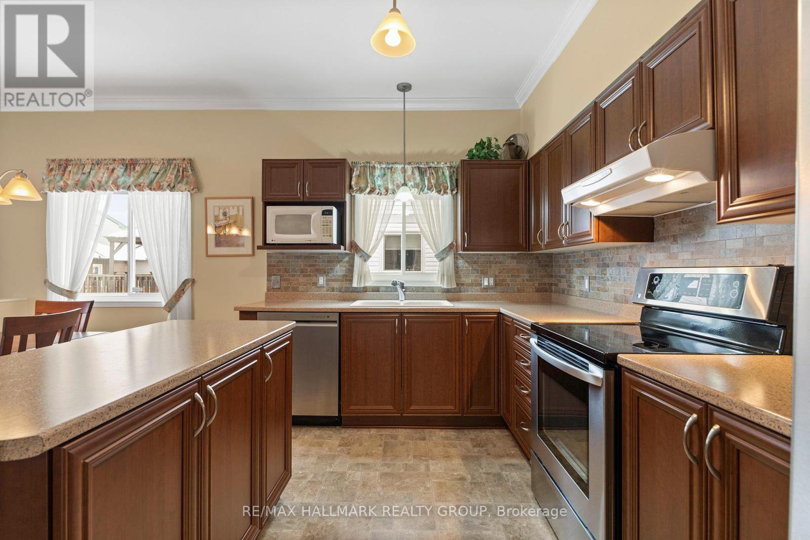 Tucked away on a quiet crescent in the highly sought-after community of Chapel Hill, this very lightly lived-in bungalow offers a rare combination of comfort, privacy, and turnkey living. The crescent itself is surrounded by mature wooded space, creating a peaceful setting with minimal through traffic and a strong sense of privacy throughout the street. Proudly owned and meticulously maintained by the original owners, the home is exceptionally clean and move-in ready. The main floor features 9-foot ceilings throughout, abundant natural light, and large windows that create a bright, welcoming atmosphere. The kitchen is both functional and well appointed with quality cabinetry, an extended pantry, and a convenient eat-in area. The family room showcases hardwood flooring, a cozy gas fireplace, and large patio doors that lead to a fiberglass deck, perfect for enjoying the outdoors. A well-placed, well-lit dining room and a sun-filled living room with a large window offer comfortable spaces for entertaining or relaxing, while the inviting foyer includes a built-in closet. Two bedrooms and two full bathrooms complete the main level, along with access to an oversized single-car garage. The lower level is impressively bright thanks to larger windows and offers three versatile flex spaces, including a rec room, TV room, and an additional recreation area, along with a furnace room providing extra storage and a separate full bathroom.A thoughtfully designed and beautifully maintained bungalow in an exceptional Chapel Hill location.