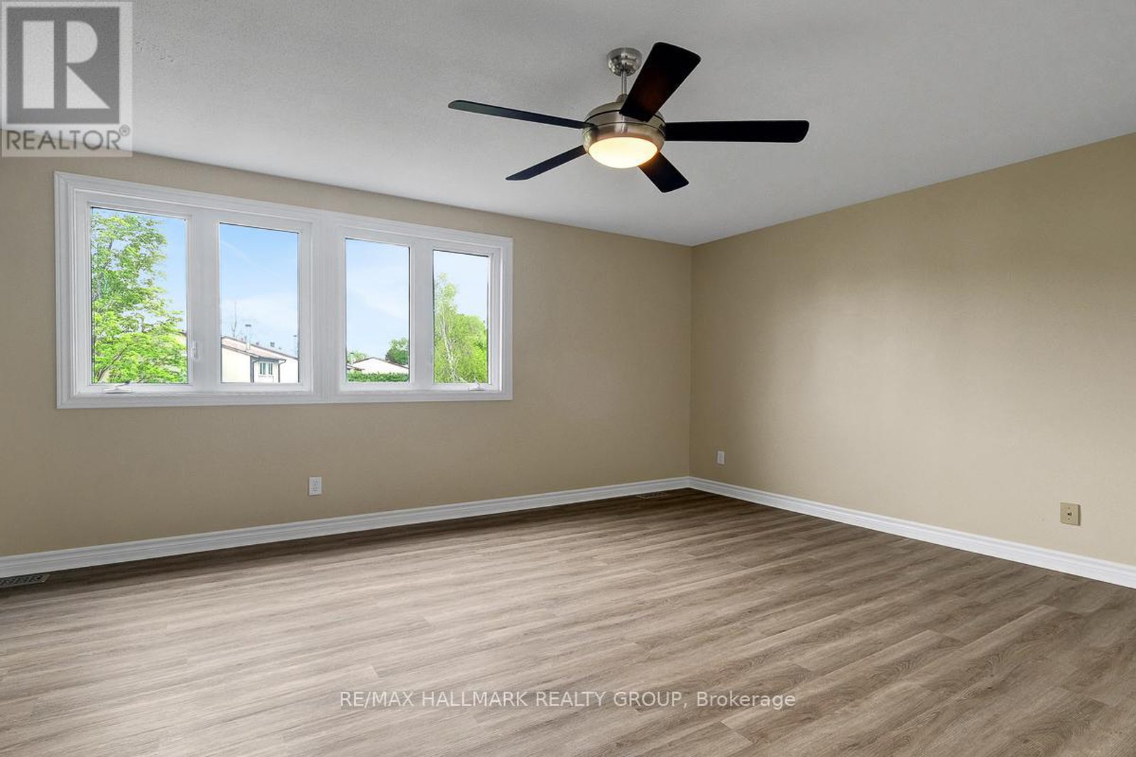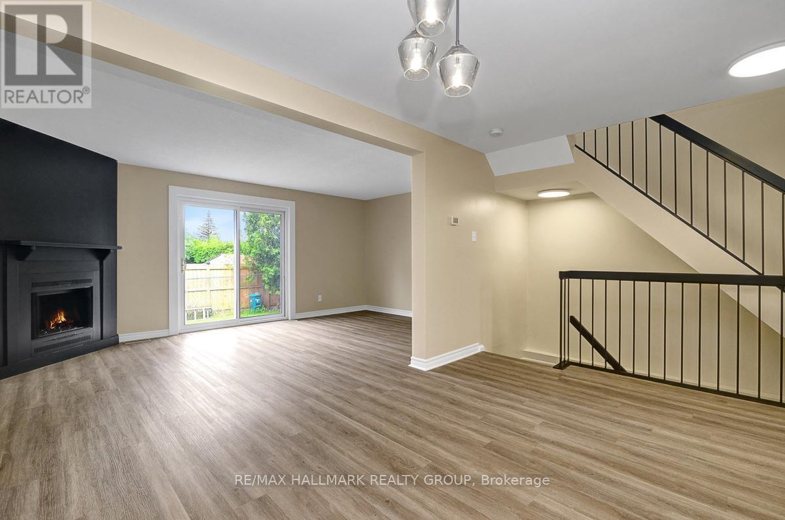 Fantastic opportunity to enter the market for an updated end-unit carriage home. 1701 Lafrance Dr is a 3bed/2bath located on a family-friendly street. Steps to Yves Richer Park with its numerous pathways, this unit will not disappoint. Main level features living room/dining room with all new luxury vinyl plank (LVP) flooring, wood fireplace. Easy access to rear yard. Freshly painted in neutral tones throughout. Kitchen w/ plenty of cabinetry, stainless steel appliances, w/ inside access to garage. Second level with large, south-east-facing primary bedroom with loads of natural light. Wall-to-wall closet space. Updated cheater ensuite. Two other good-sized bedrooms. All new LVP throughout second level. New light fixtures throughout the home. Basement has large rec room with all new LVP, 2pc bathroom and utility/storage room. New carpet on all staircases. Enjoy a good-sized backyard with plenty of room for gardening, playing, and summer entertaining. New front entry door, as well as side-access door to garage. Minutes to all amenities including Ray Friel, Ottawa Public Library, Fallingbrook Shopping and Innes/Tenth Line corridor. Under 3km to highway 174. Under 7mins to Place d'Orléans. Transit at your doorstep. This unit is not to be missed!